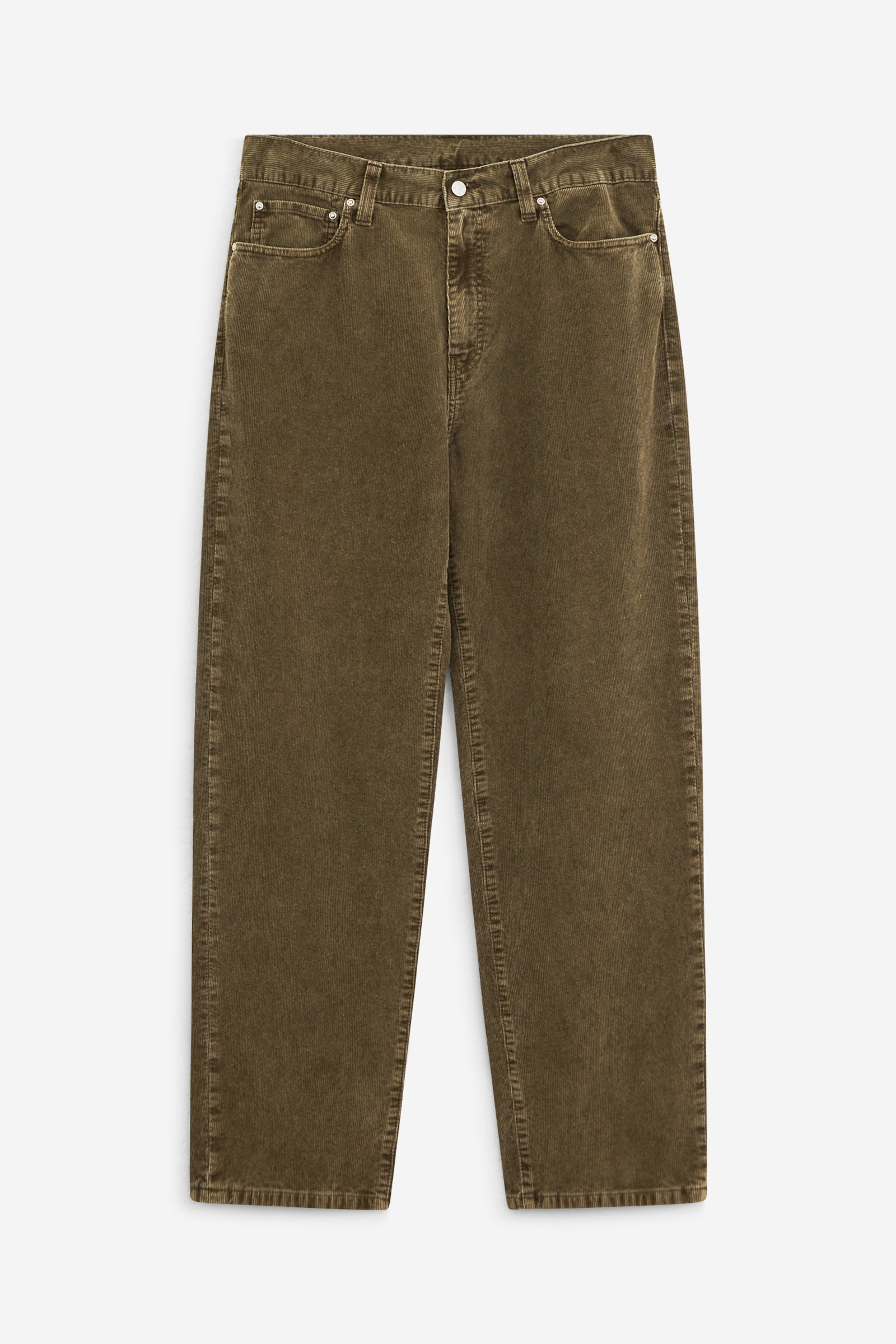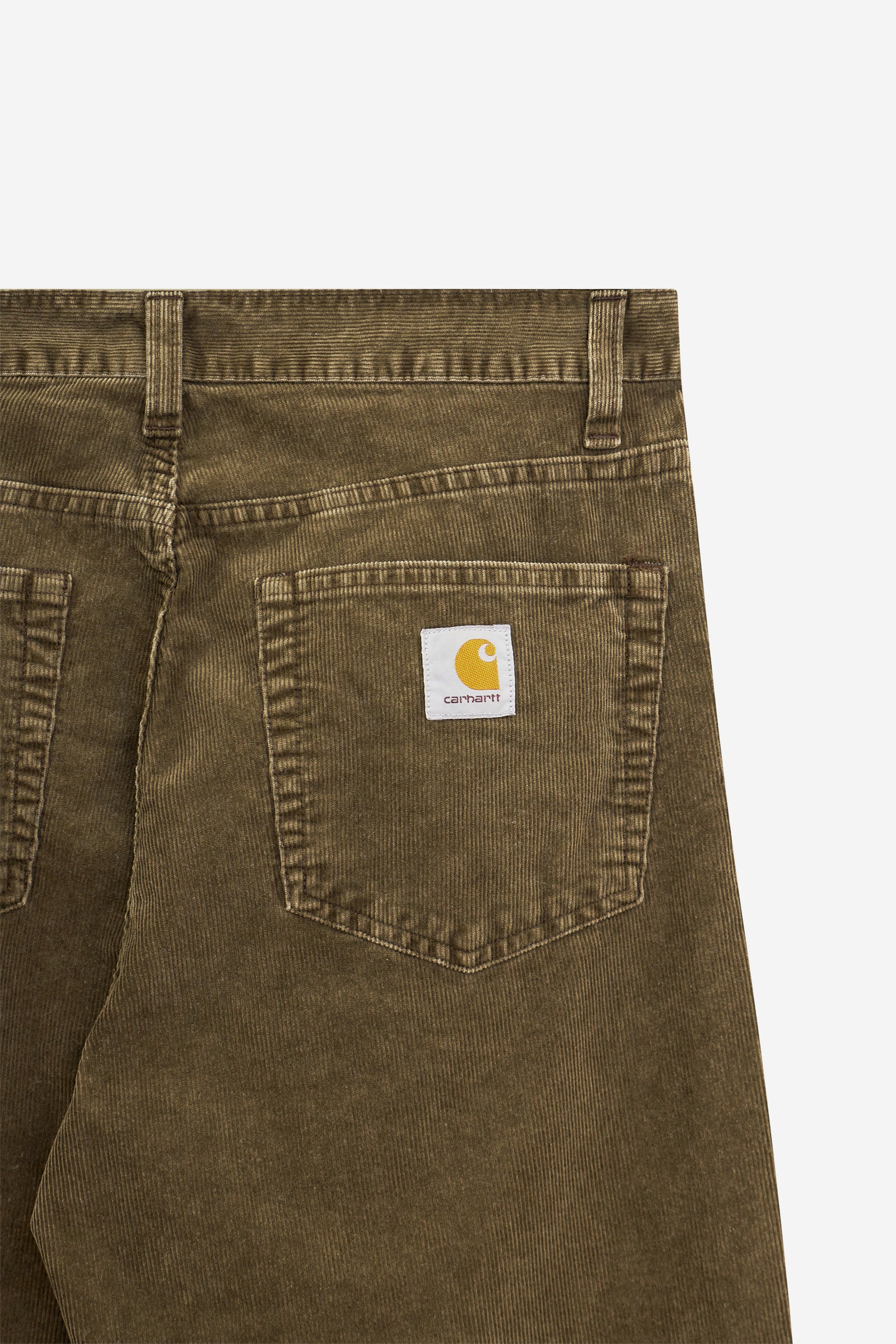Pantalone AARON in Cotone Khaki, passanti in vita, tasche laterali, chiusura a bottone, tasche posteriori, logo sul retro
