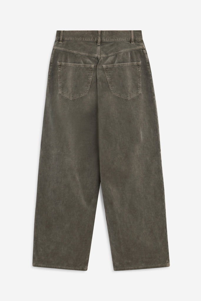 Pantaloni a gamba larga realizzati in velluto a coste di cotone, trattato per garantire una morbidezza unica.
