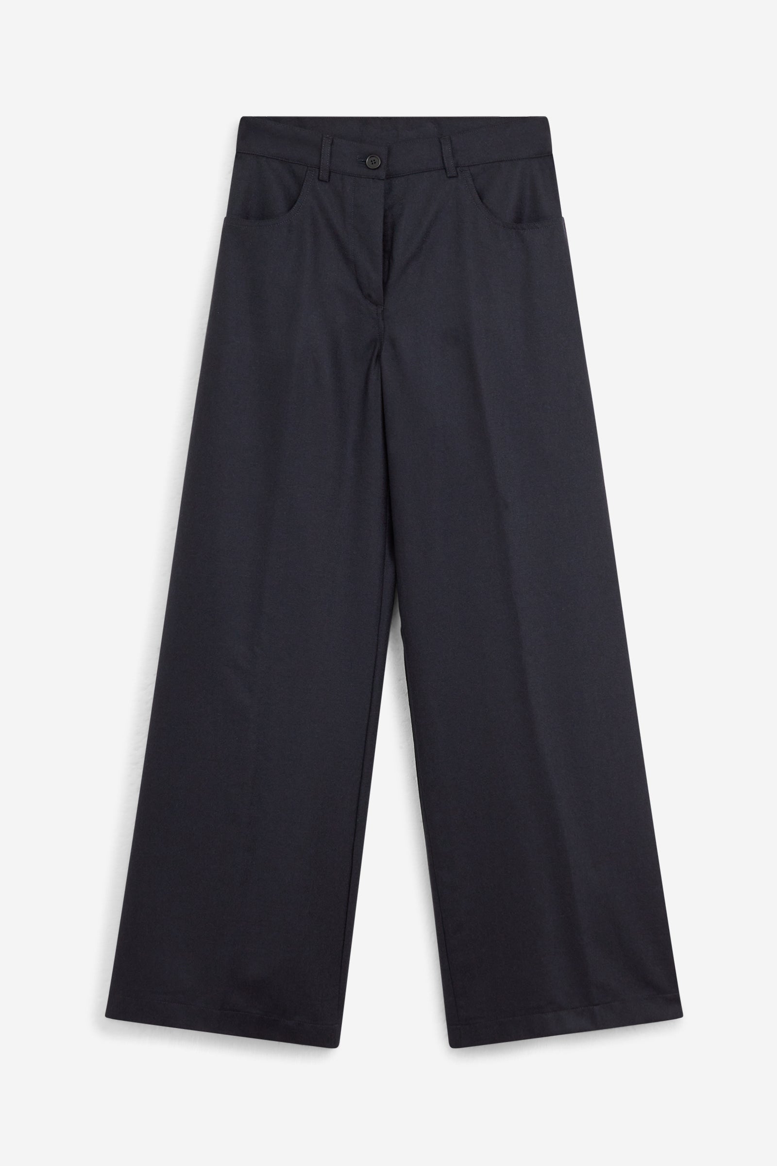 Pantalone realizzato in flanella morbida di misto lana, un tessuto leggero in grado di unire praticità e comfort. Il modello presenta due tasche sia sul davanti, sia sul dietro e una vita regolare con i passanti nel cinturino. Il design a vita alta con gamba leggermente svasata