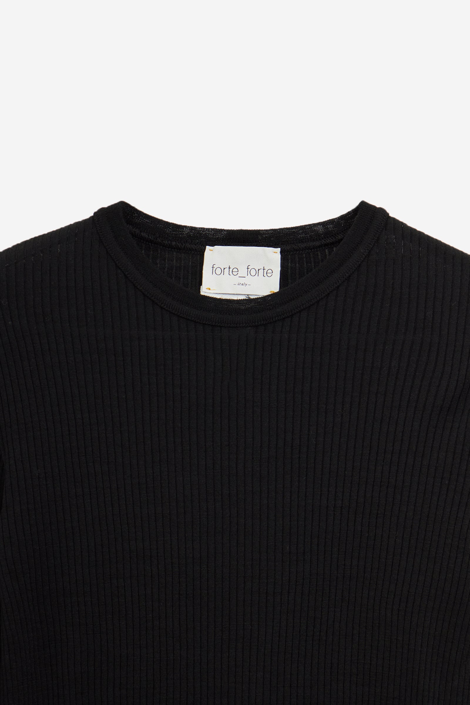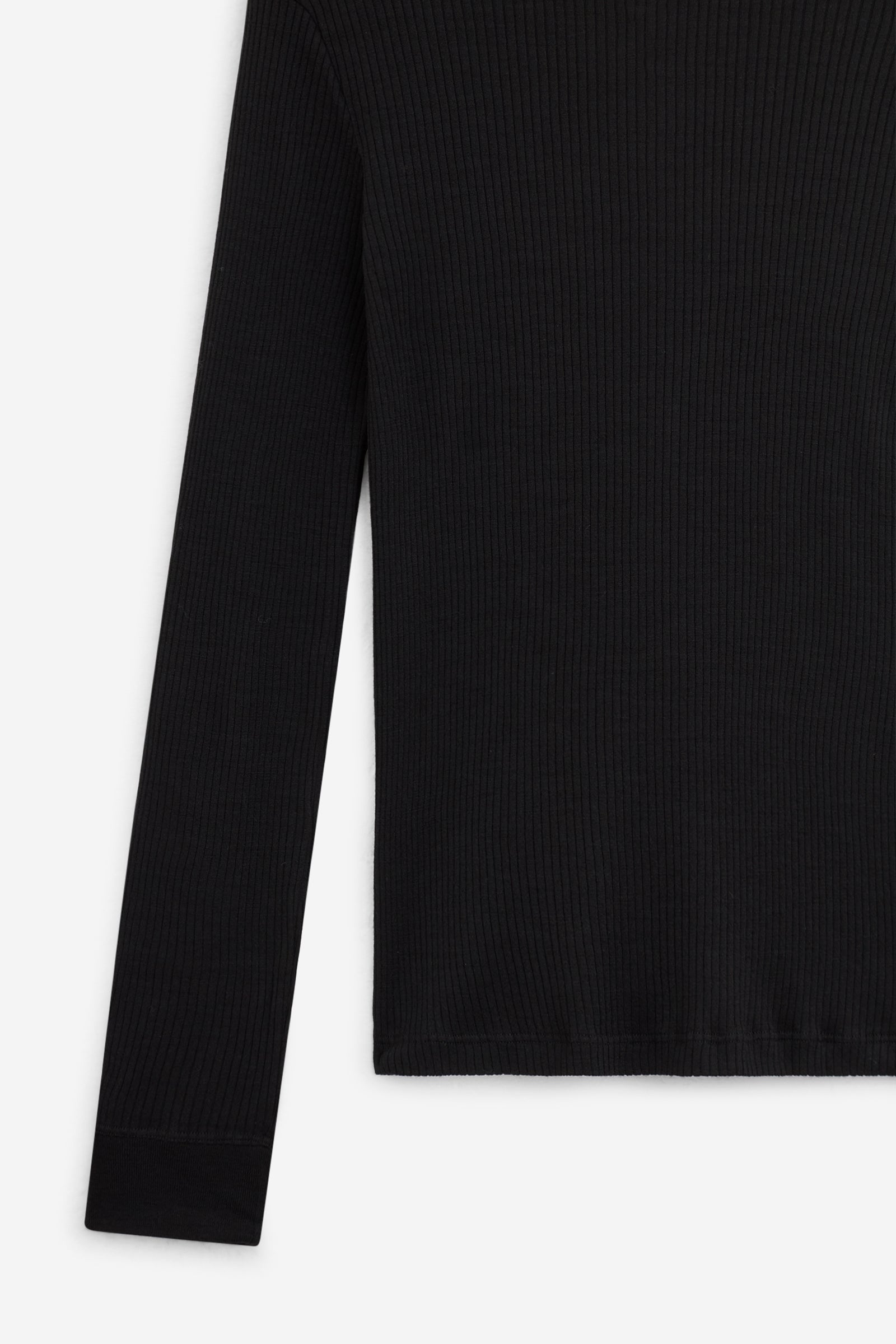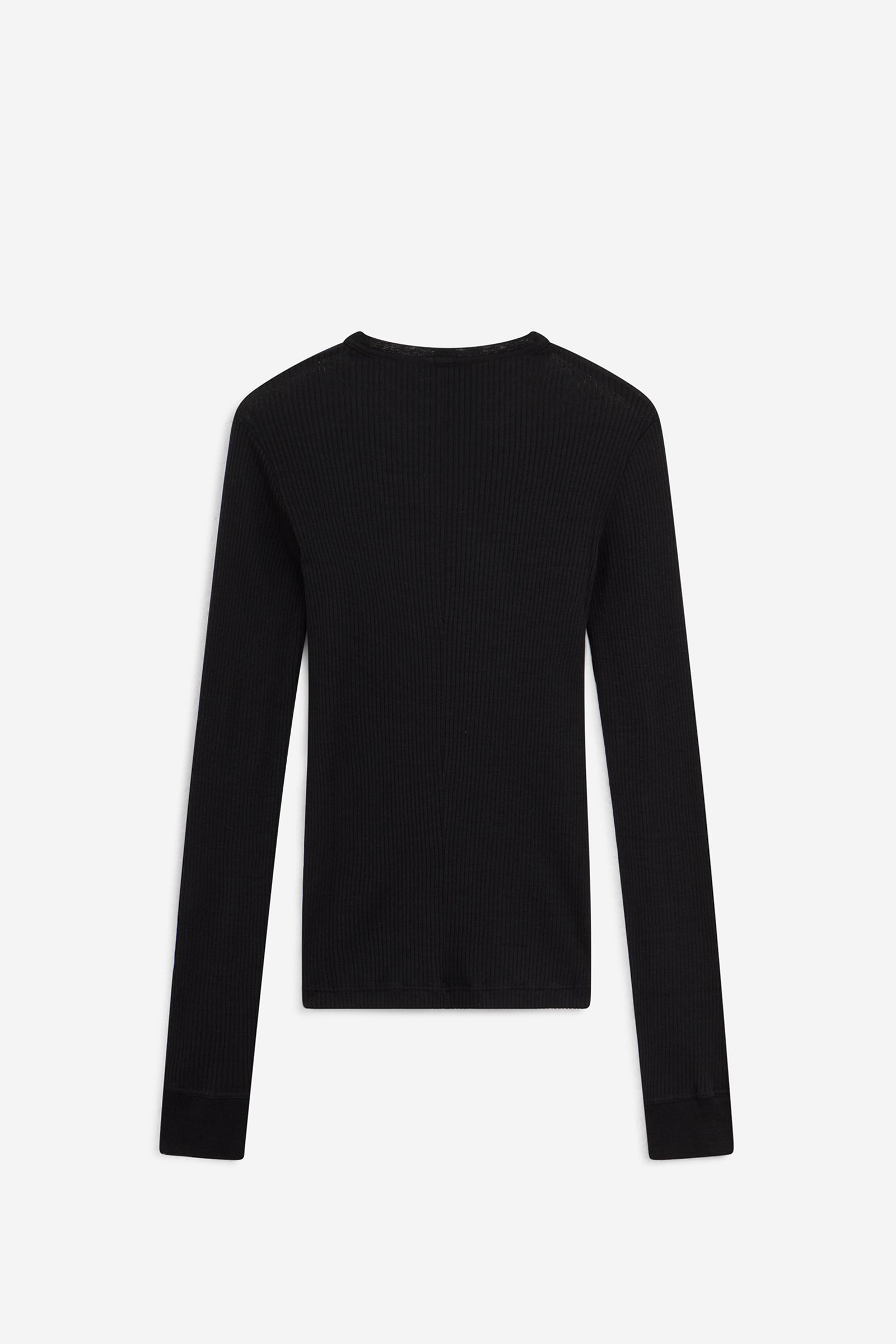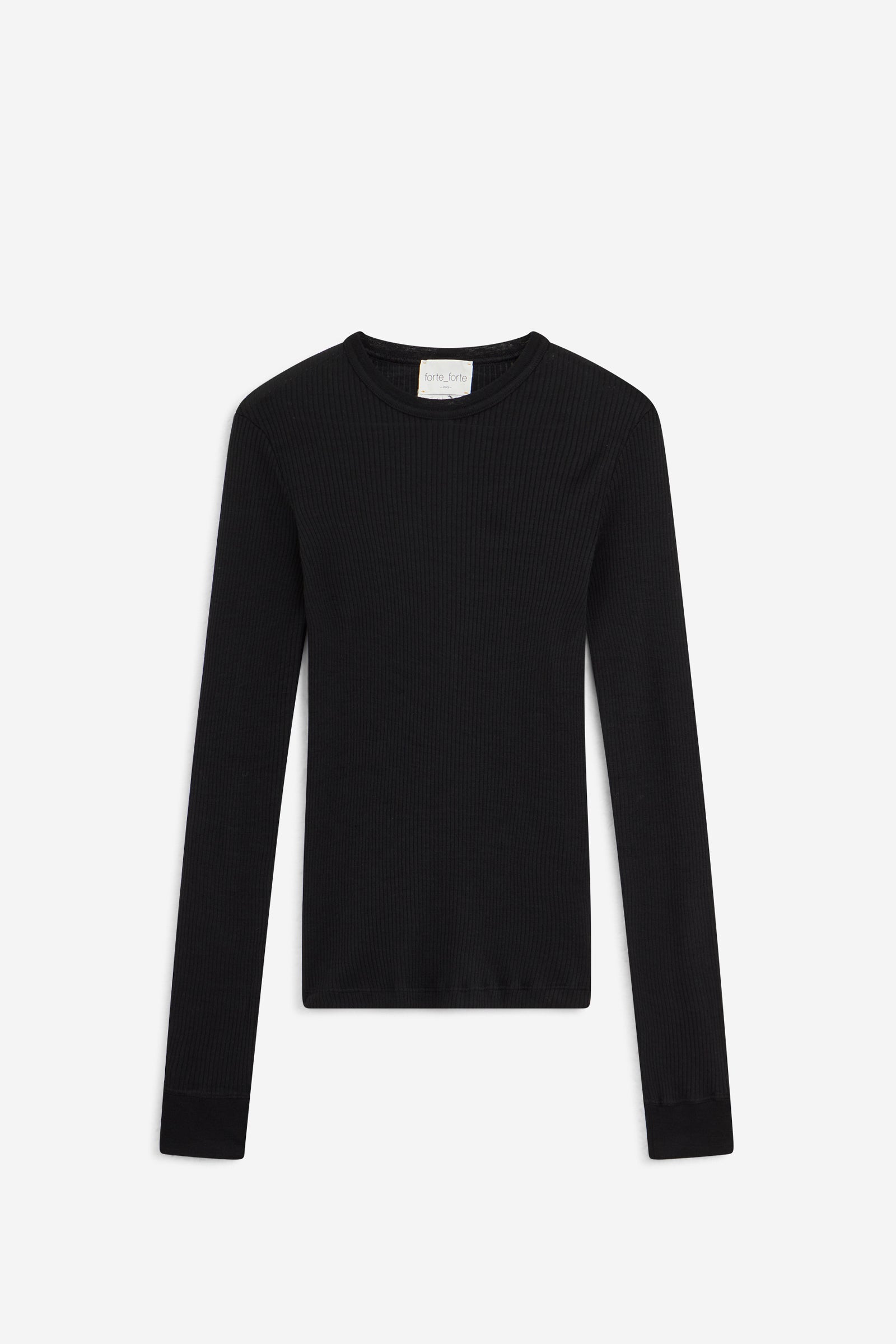 T-shirts a Manica Lunga in Lana Nera, maniche lunghe, orlo dritto, girocollo