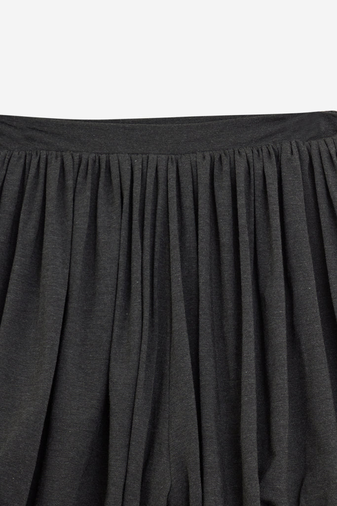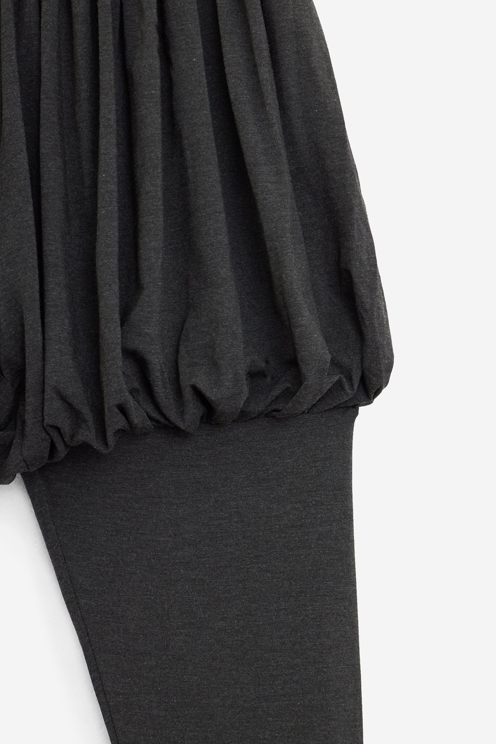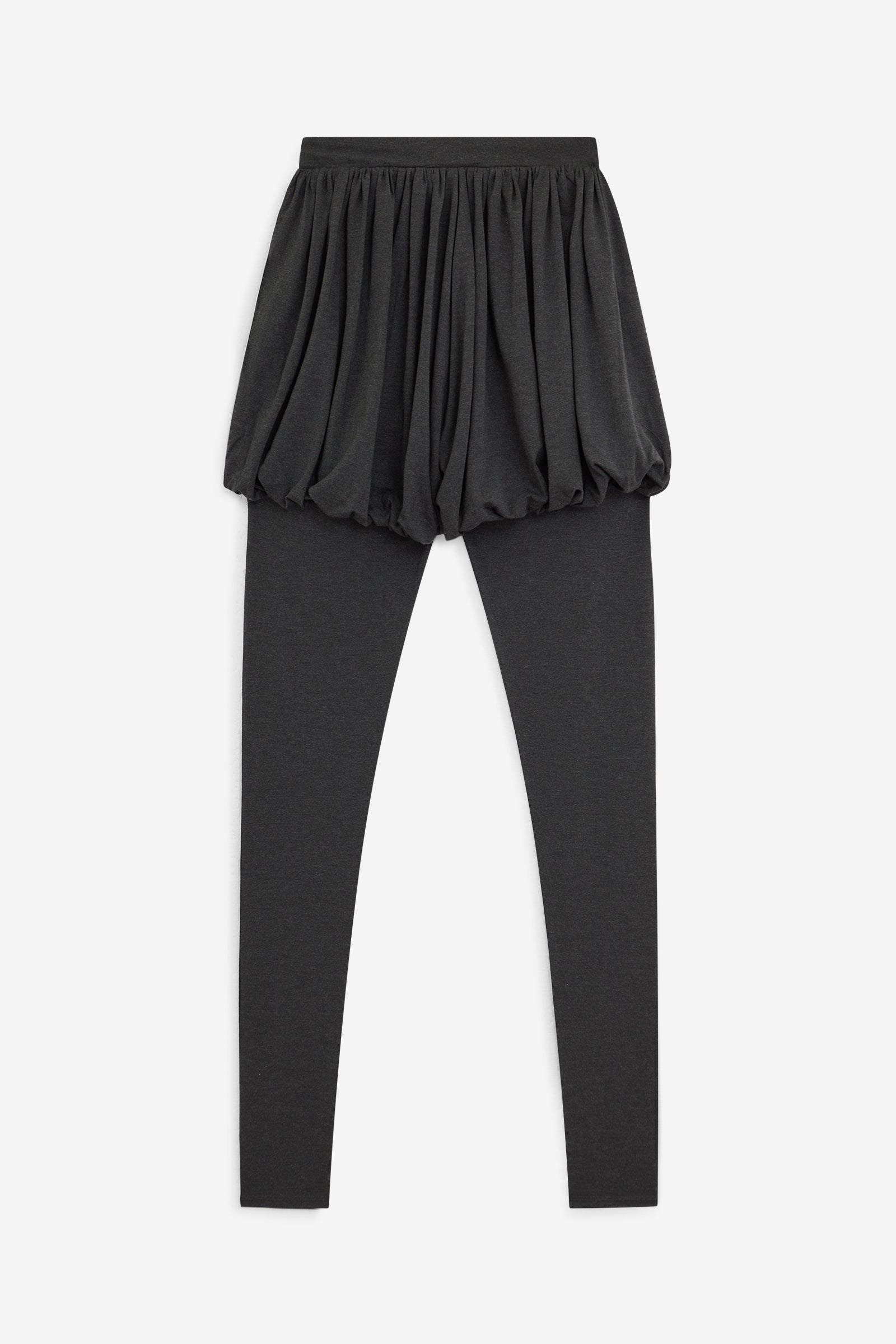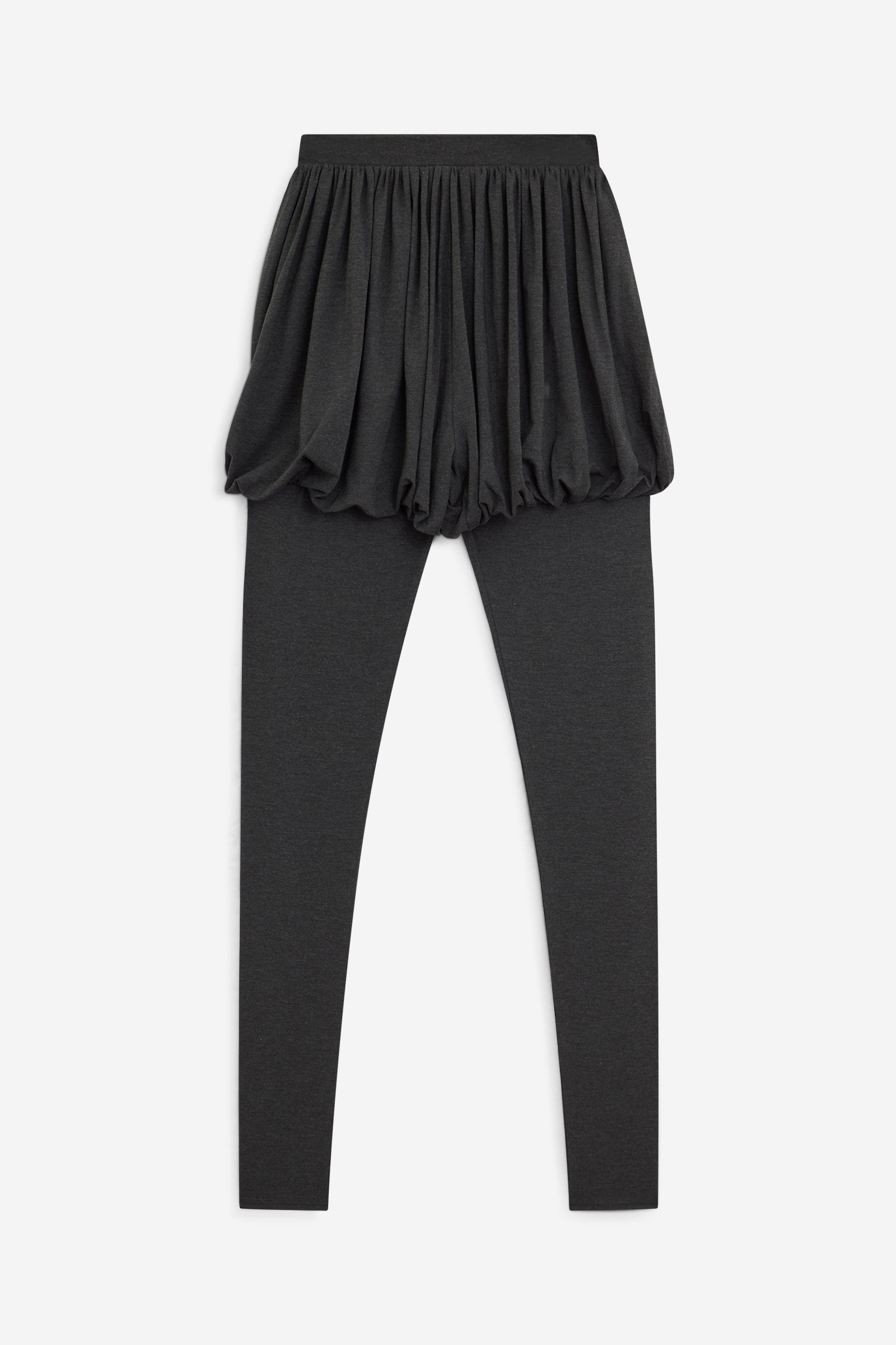 Pantaloni lunghi aderenti con effetto a sbuffo dalla vita alla coscia. Realizzati in micromodal elasticizzato opaco. Il colore è grigio