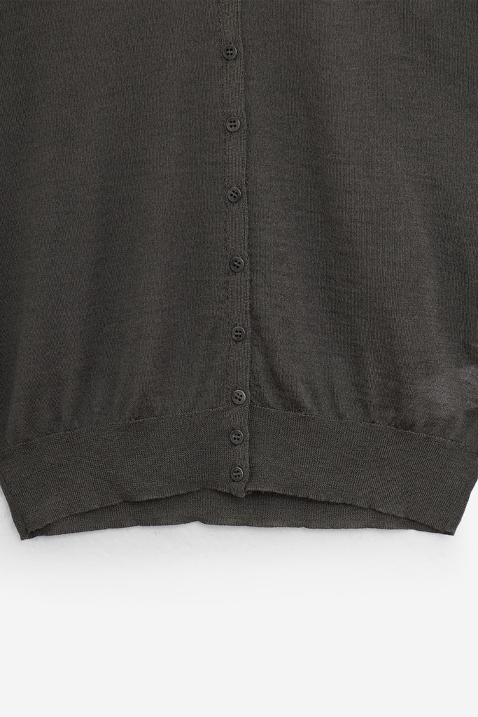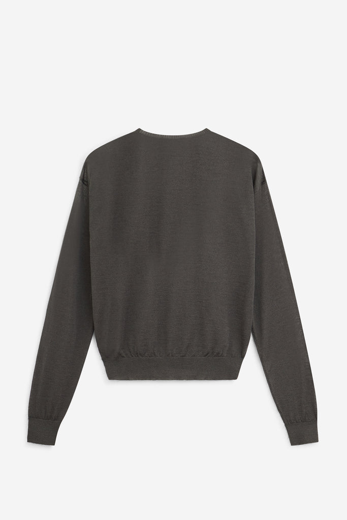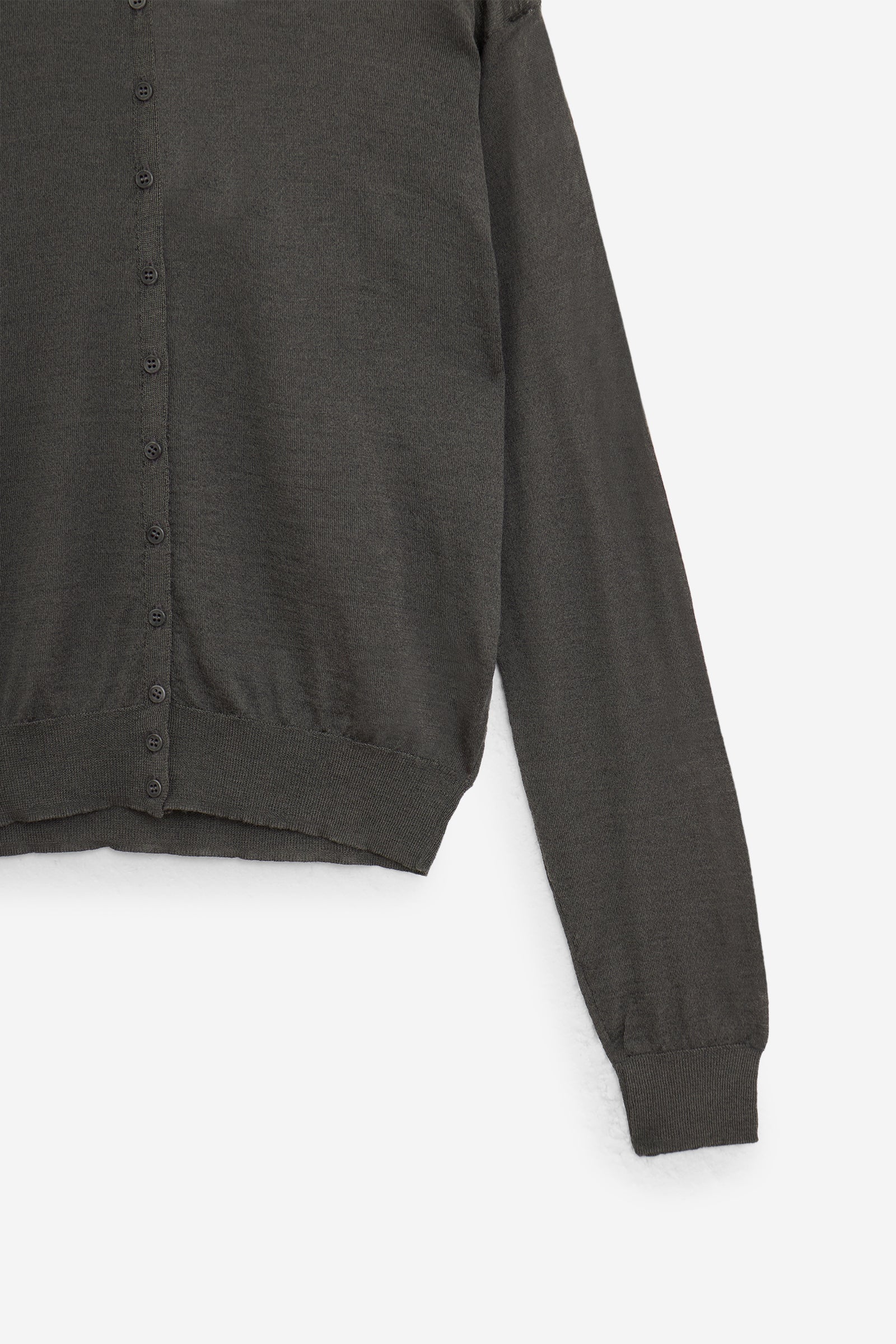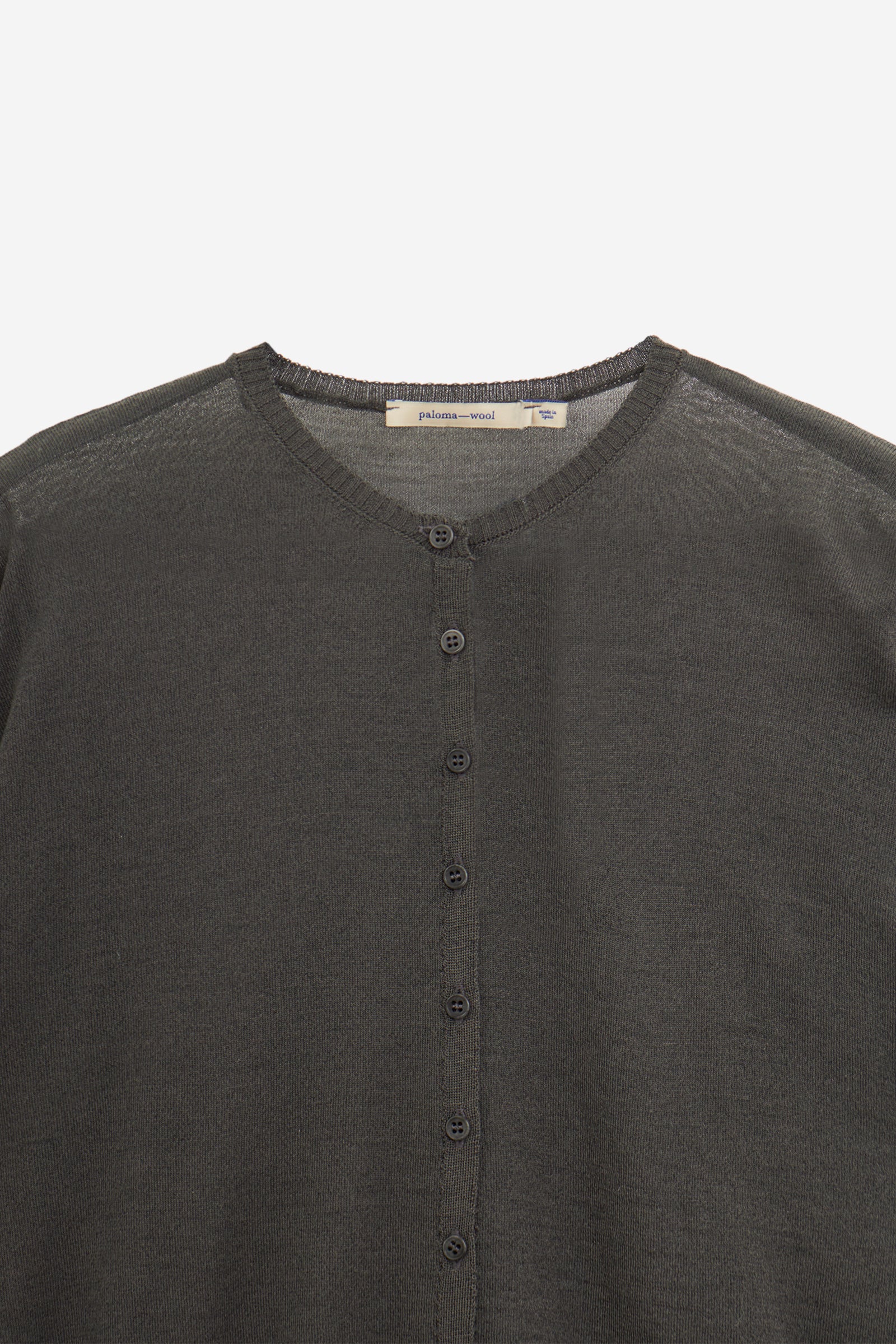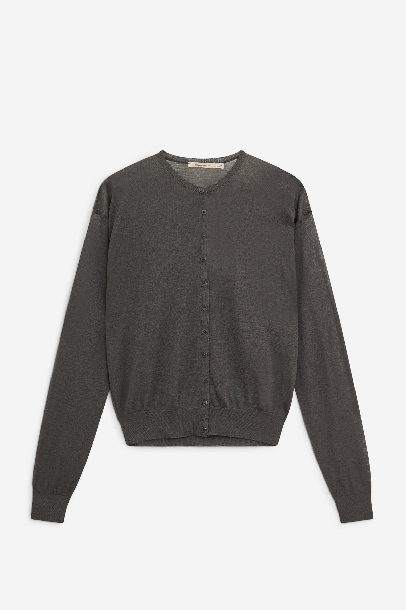 Cardigan delicato e leggermente trasparente, realizzato in maglia calda e leggera, rifinito con bottoni sul davanti e vestibilità regolare. Colore grigio.
