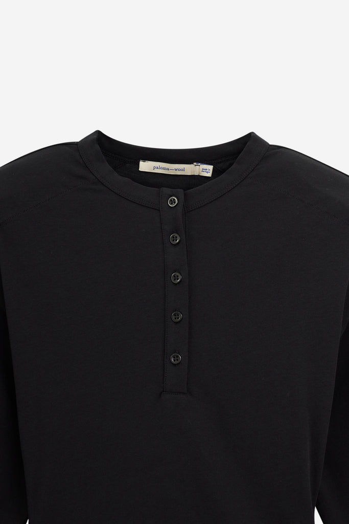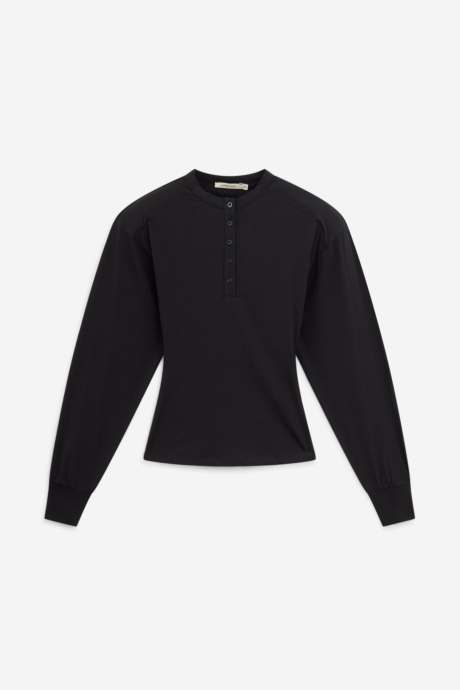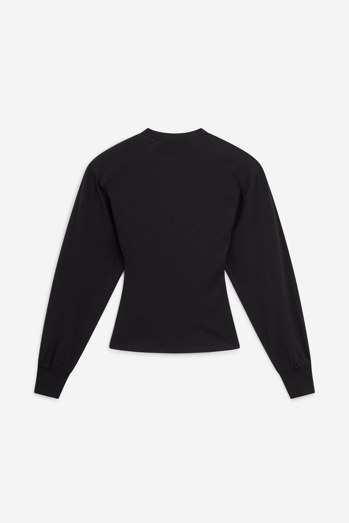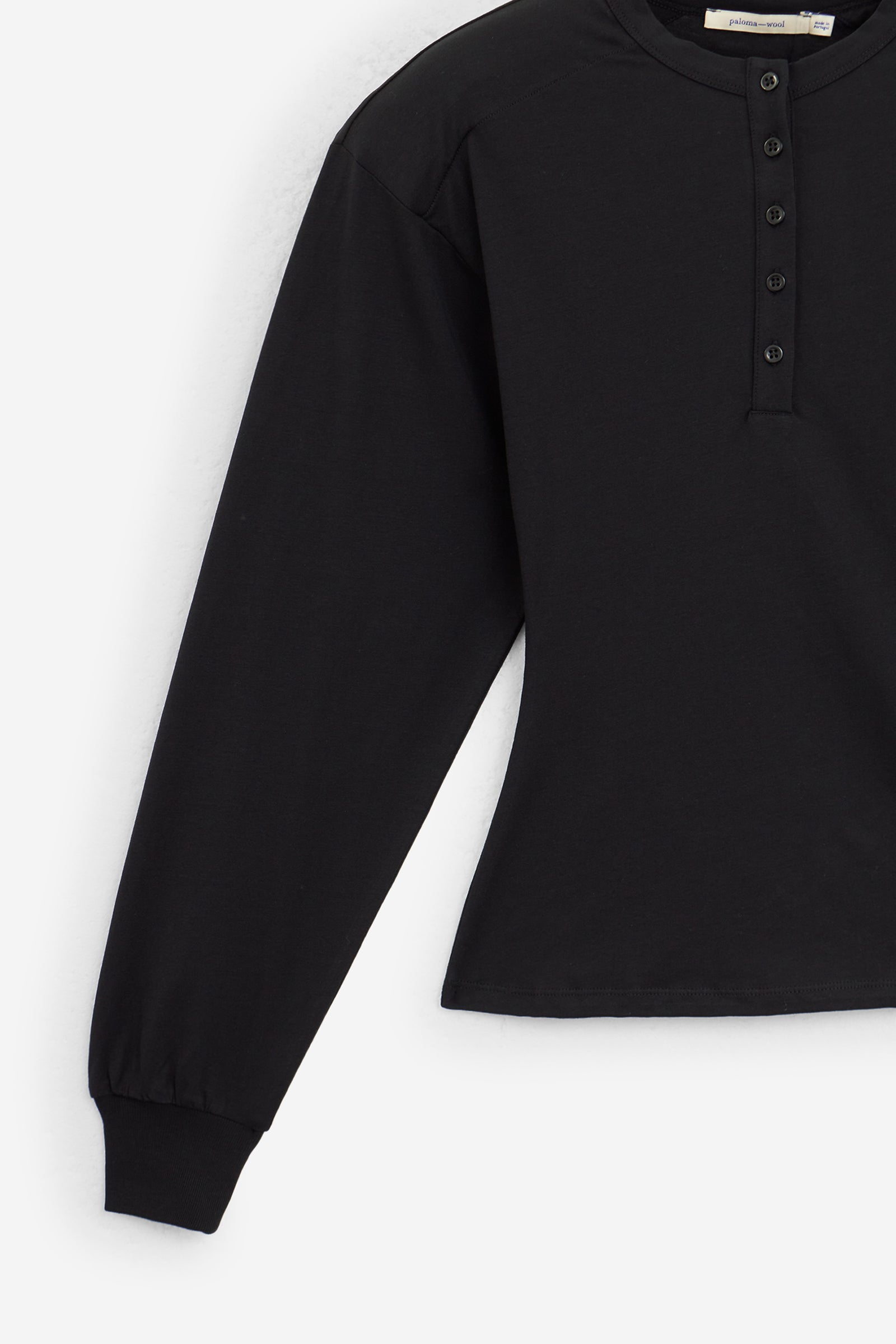 Top con scollo henley e con maniche lunghe con polsini. Realizzato in cotone morbido e leggero, la vestibilità è aderente sul corpo con volume sulle maniche. Le spalline possono essere rimosse per il lavaggio o per modificare il look.