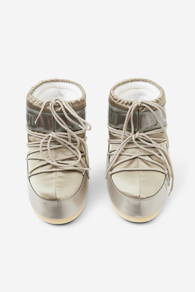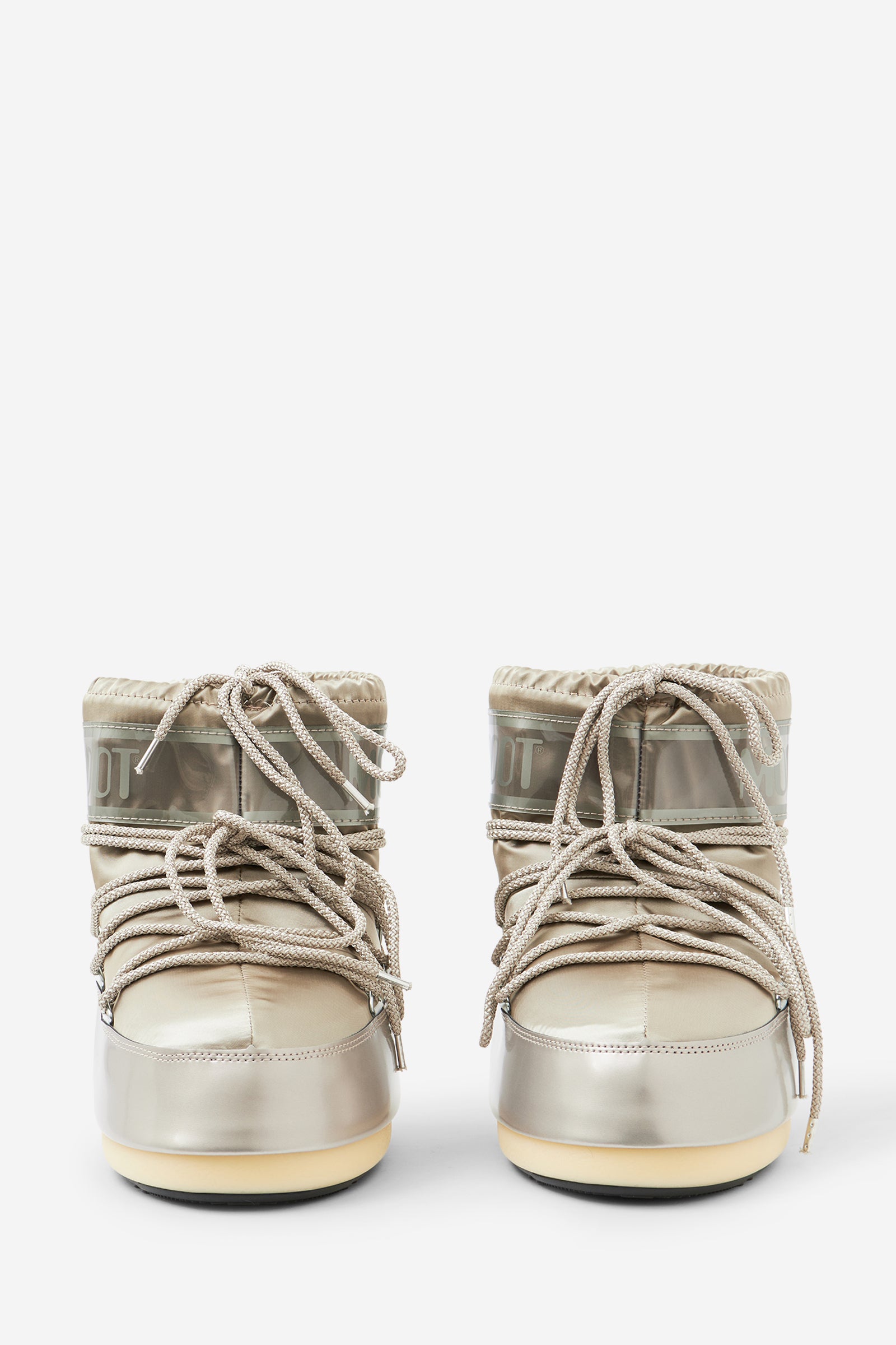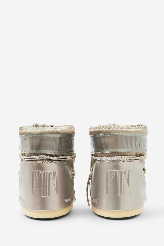 l'Icon Low Glance è realizzato con la stessa tecnologia del modello originale, è dotato di una suola antiscivolo che garantisce la massima presa e di un’imbottitura isolante che tiene il piede caldo e asciutto in ogni condizione climatica. La sua finitura è caratterizzata dal raso color platino