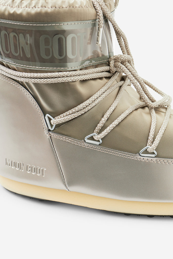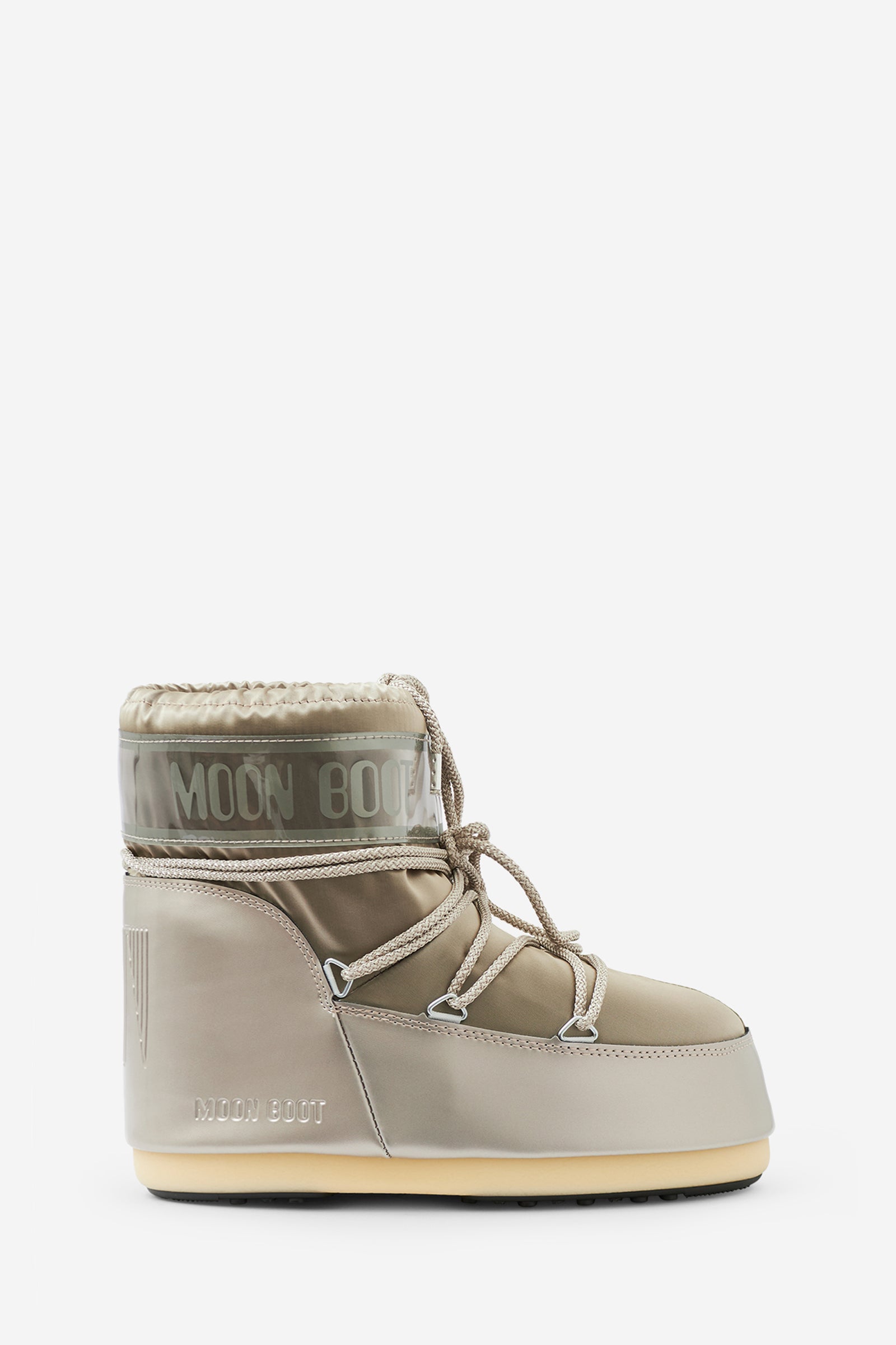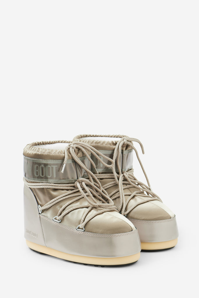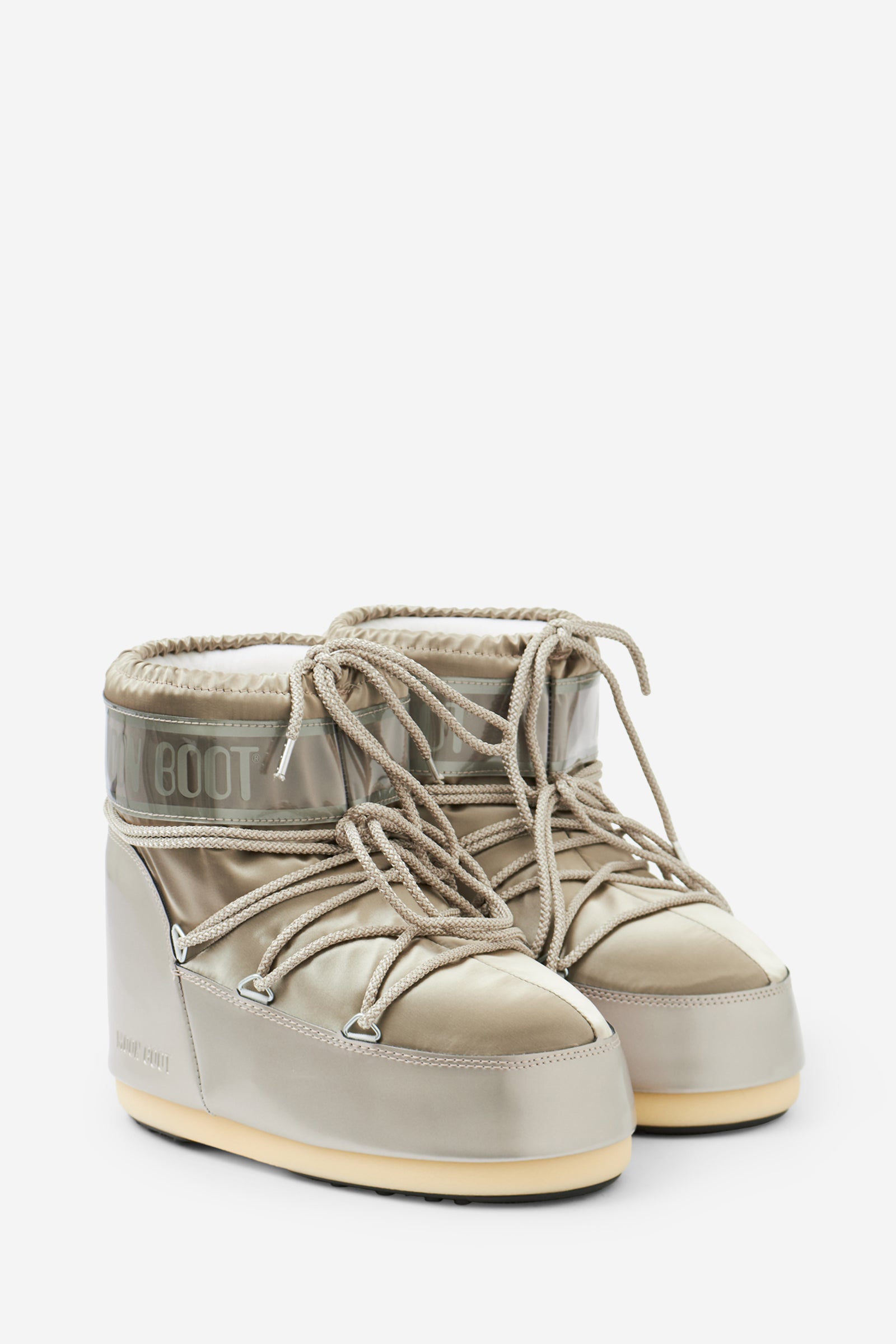 l'Icon Low Glance è realizzato con la stessa tecnologia del modello originale, è dotato di una suola antiscivolo che garantisce la massima presa e di un’imbottitura isolante che tiene il piede caldo e asciutto in ogni condizione climatica. La sua finitura è caratterizzata dal raso color platino