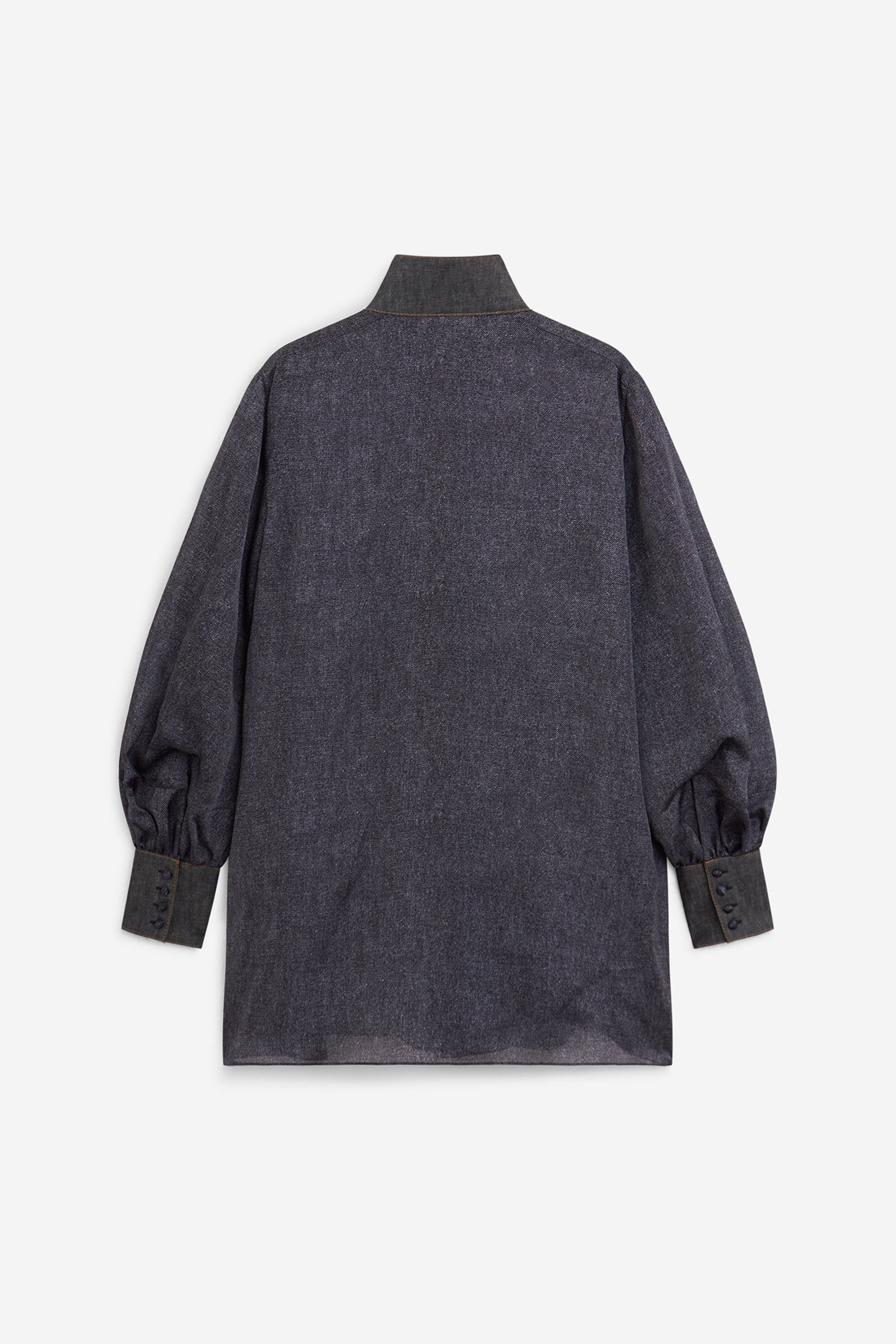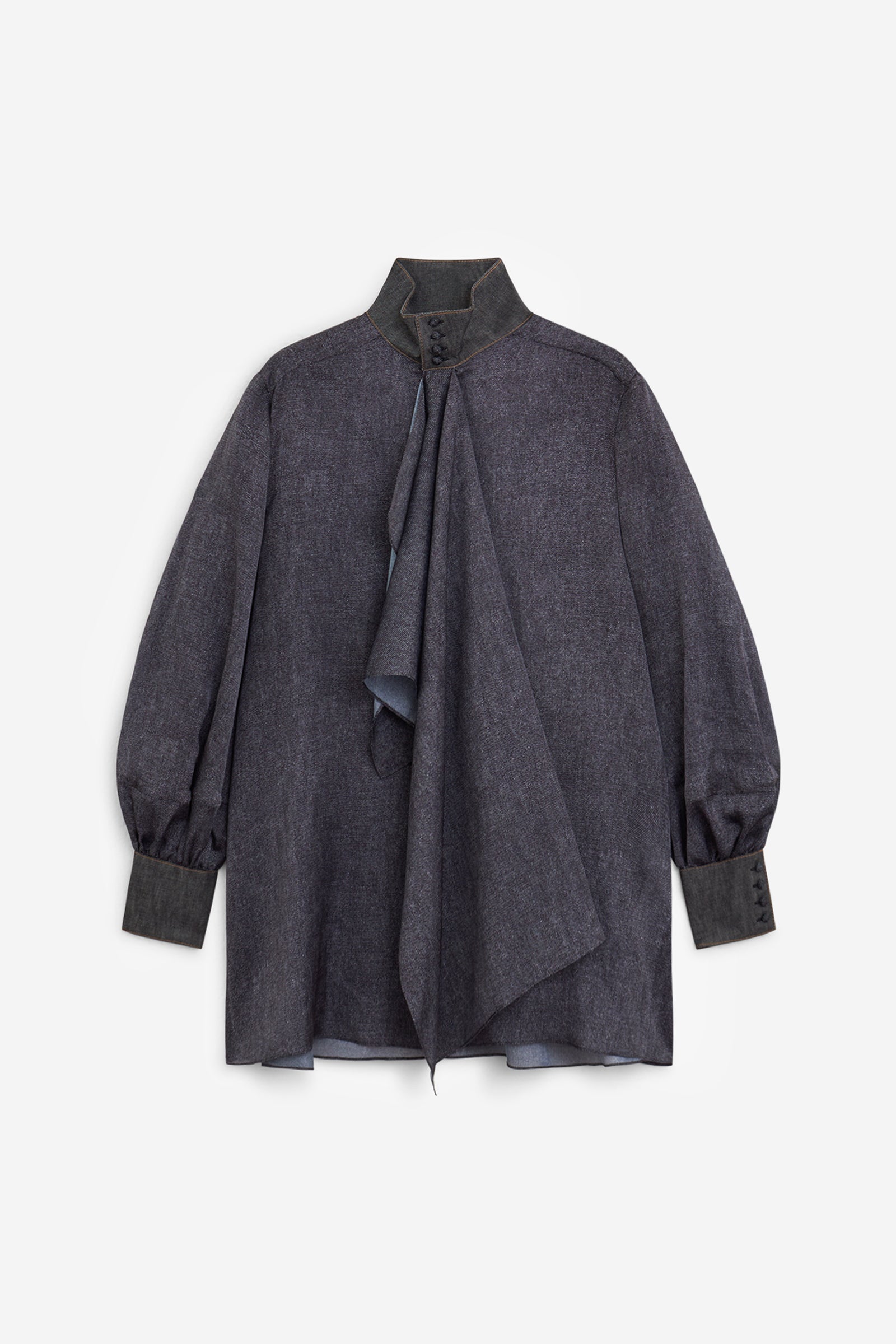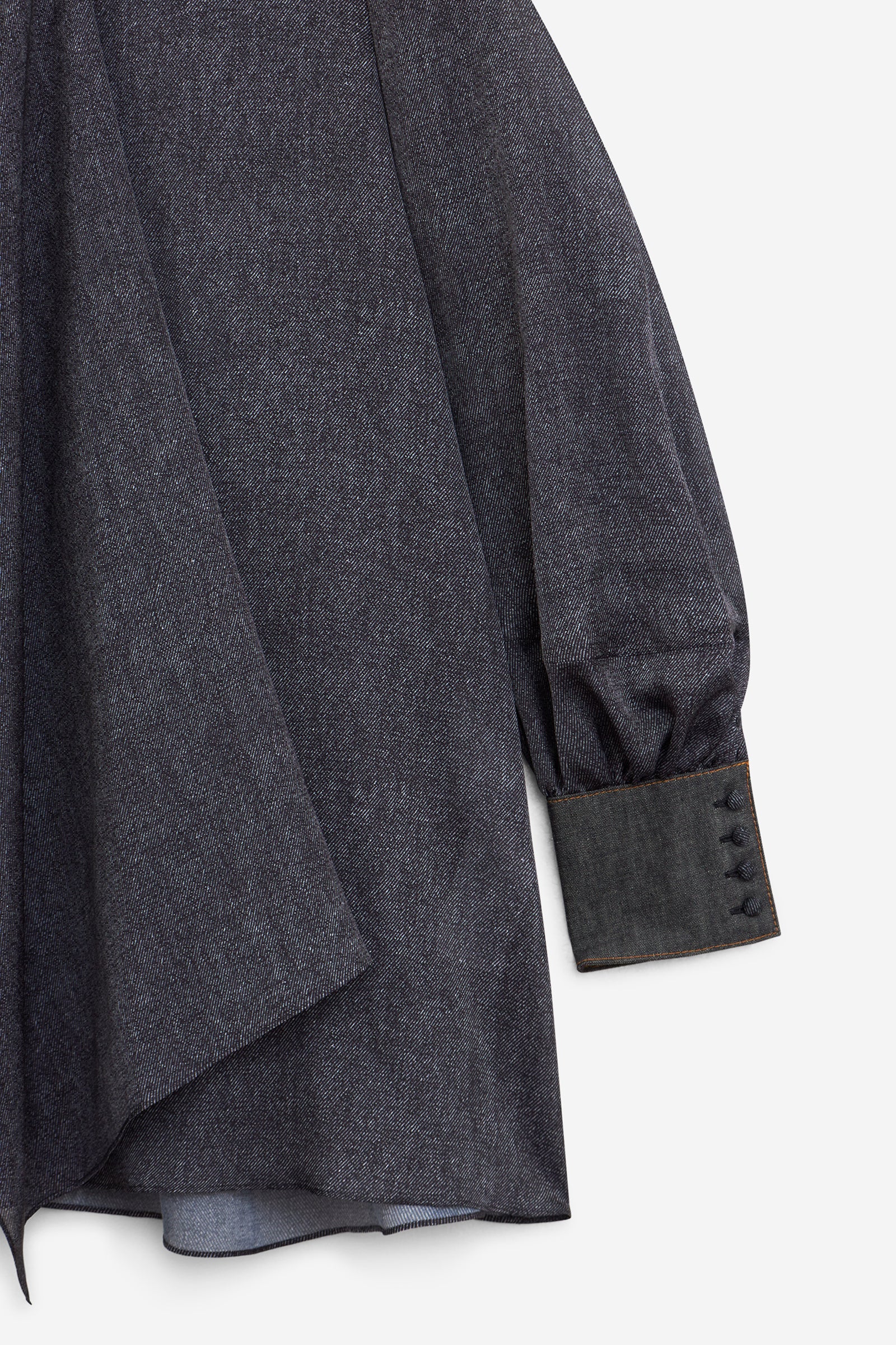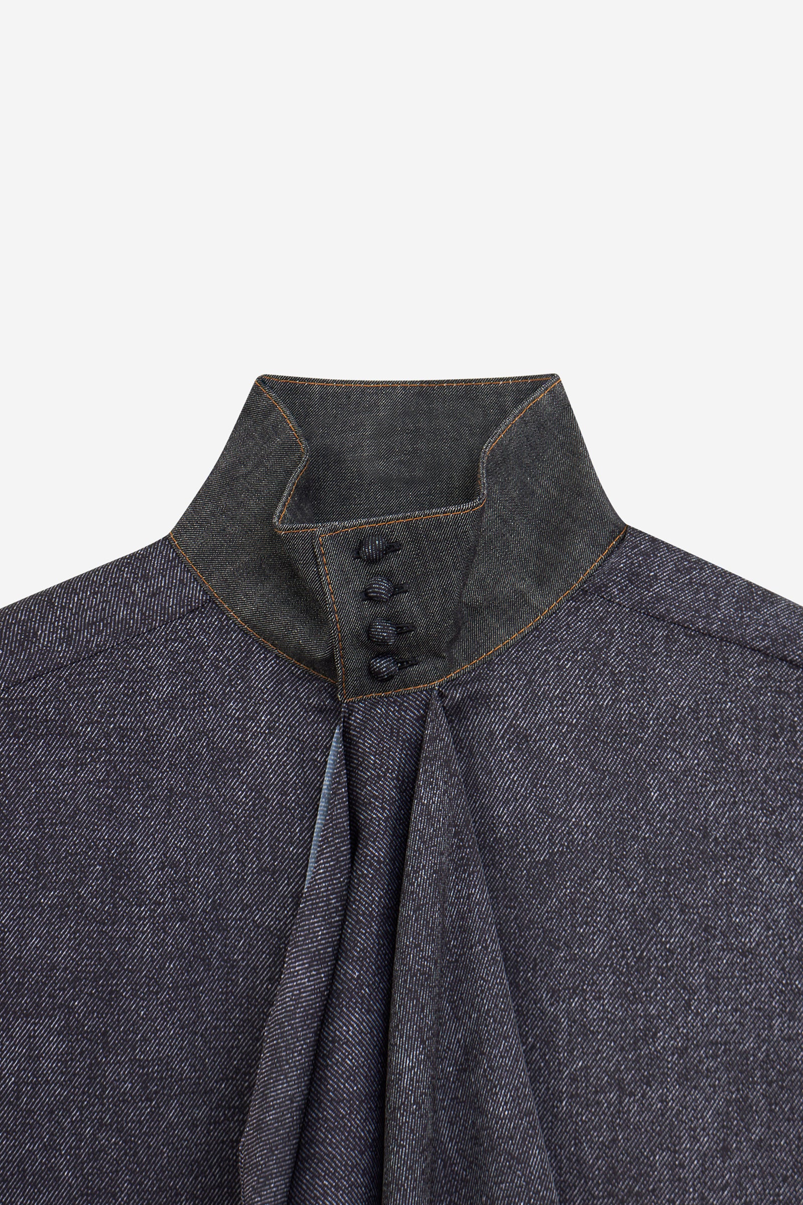 Abito in Poliestere Dark Navy, polsini con bottone, orlo dritto, allacciatura sul collo