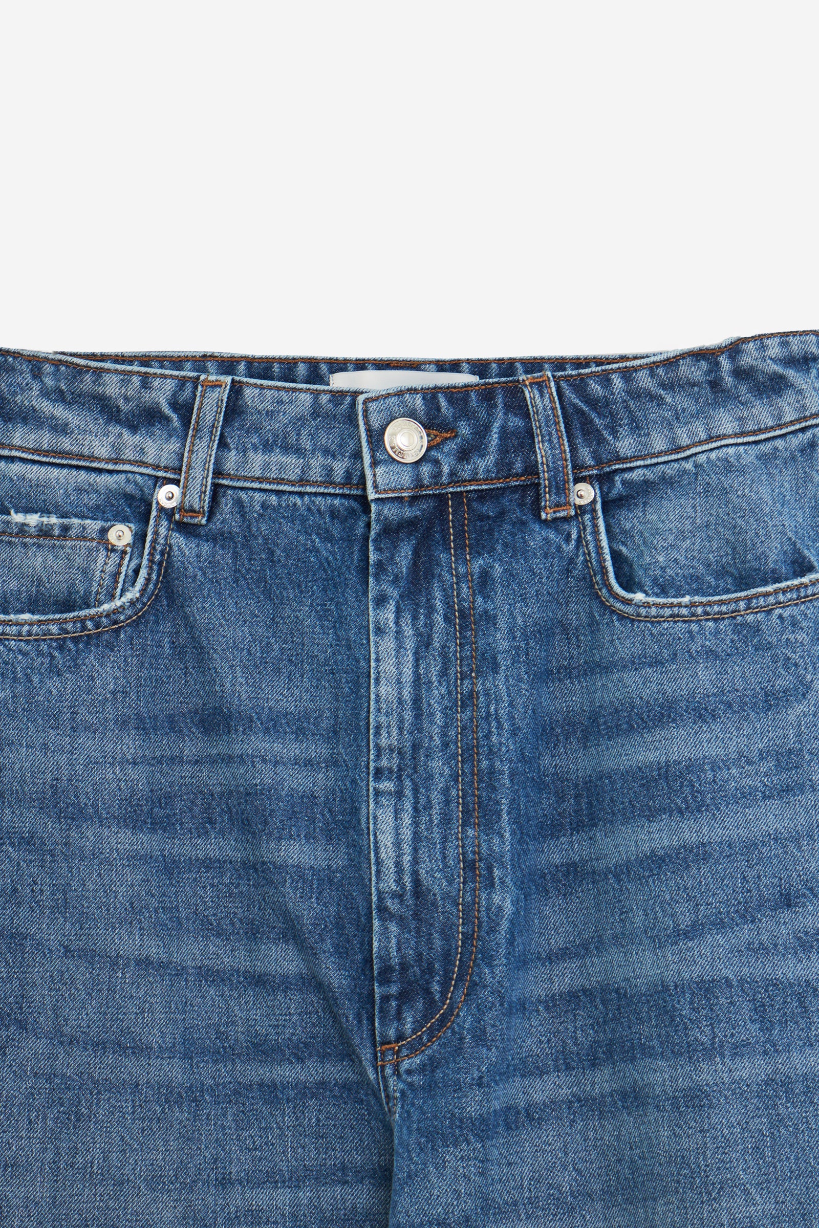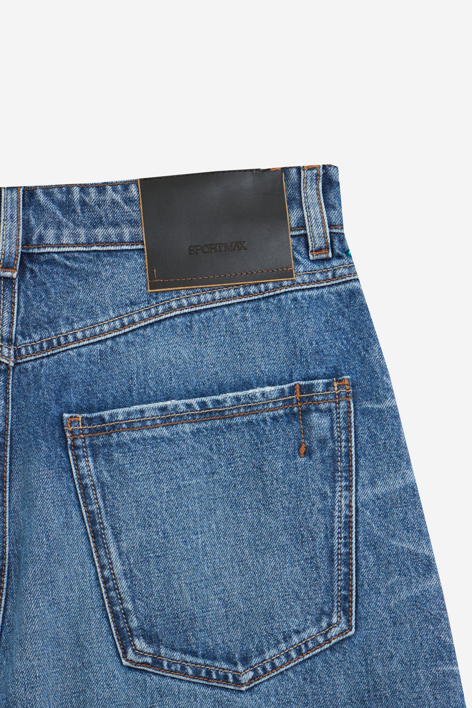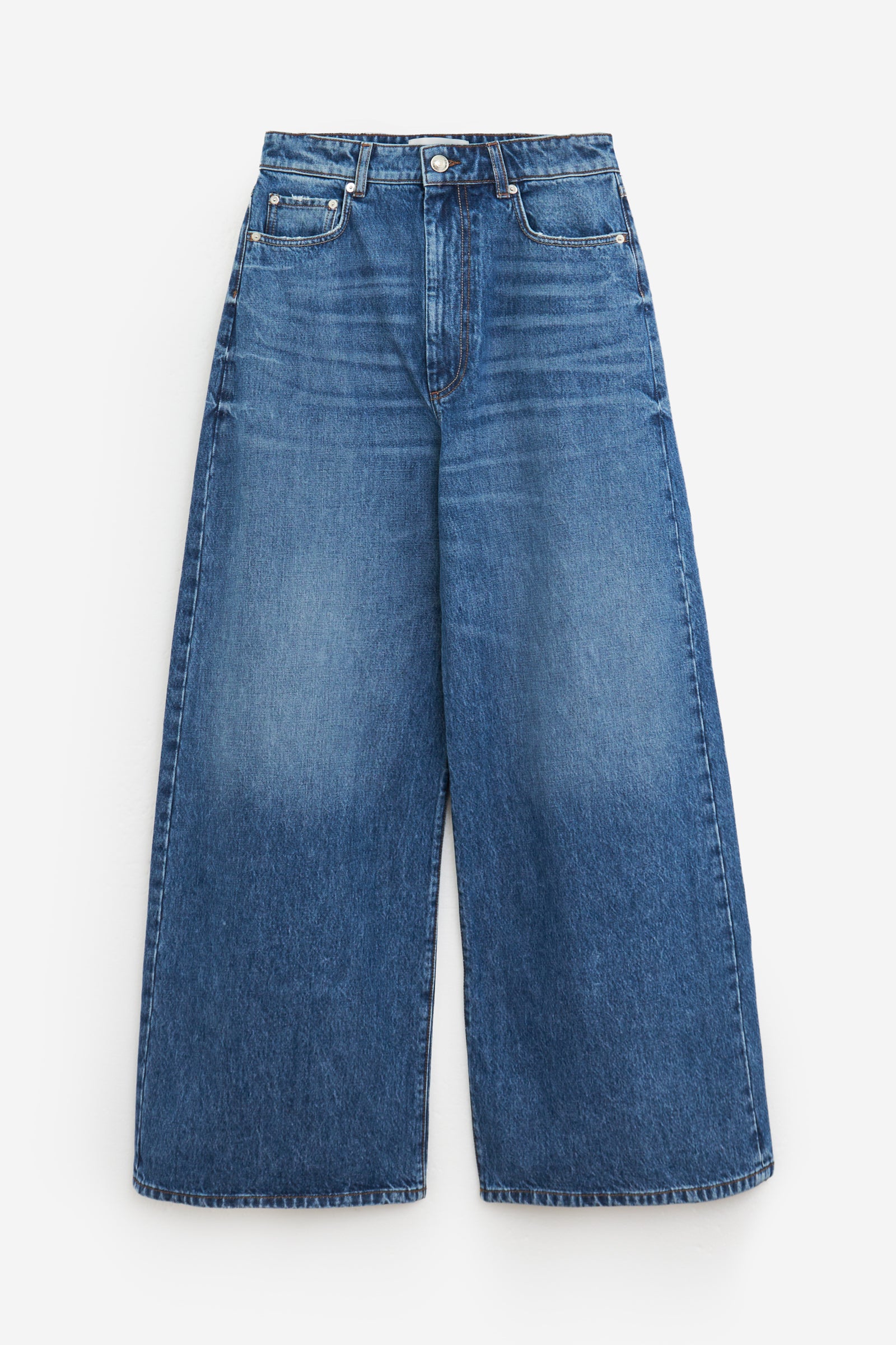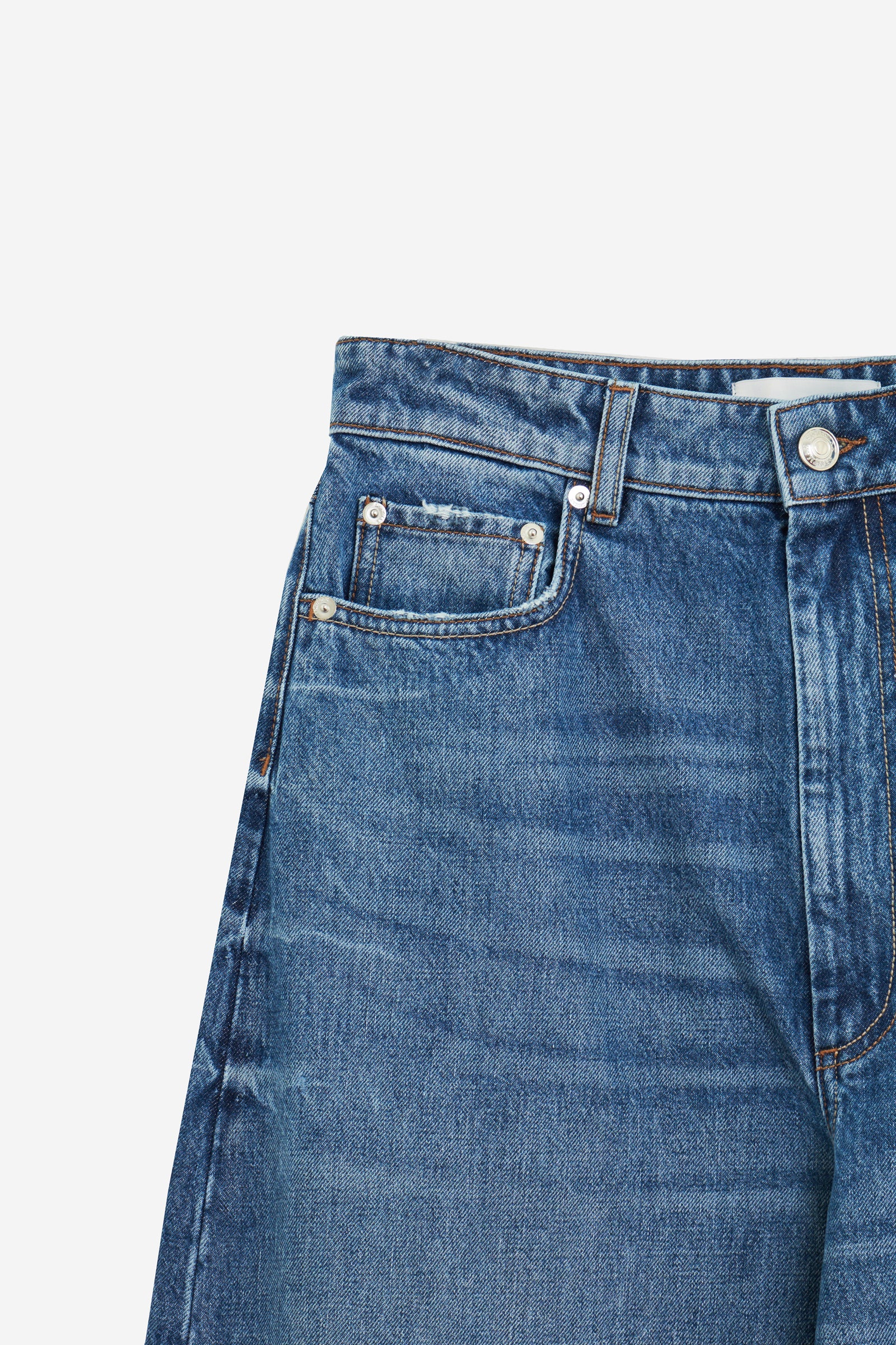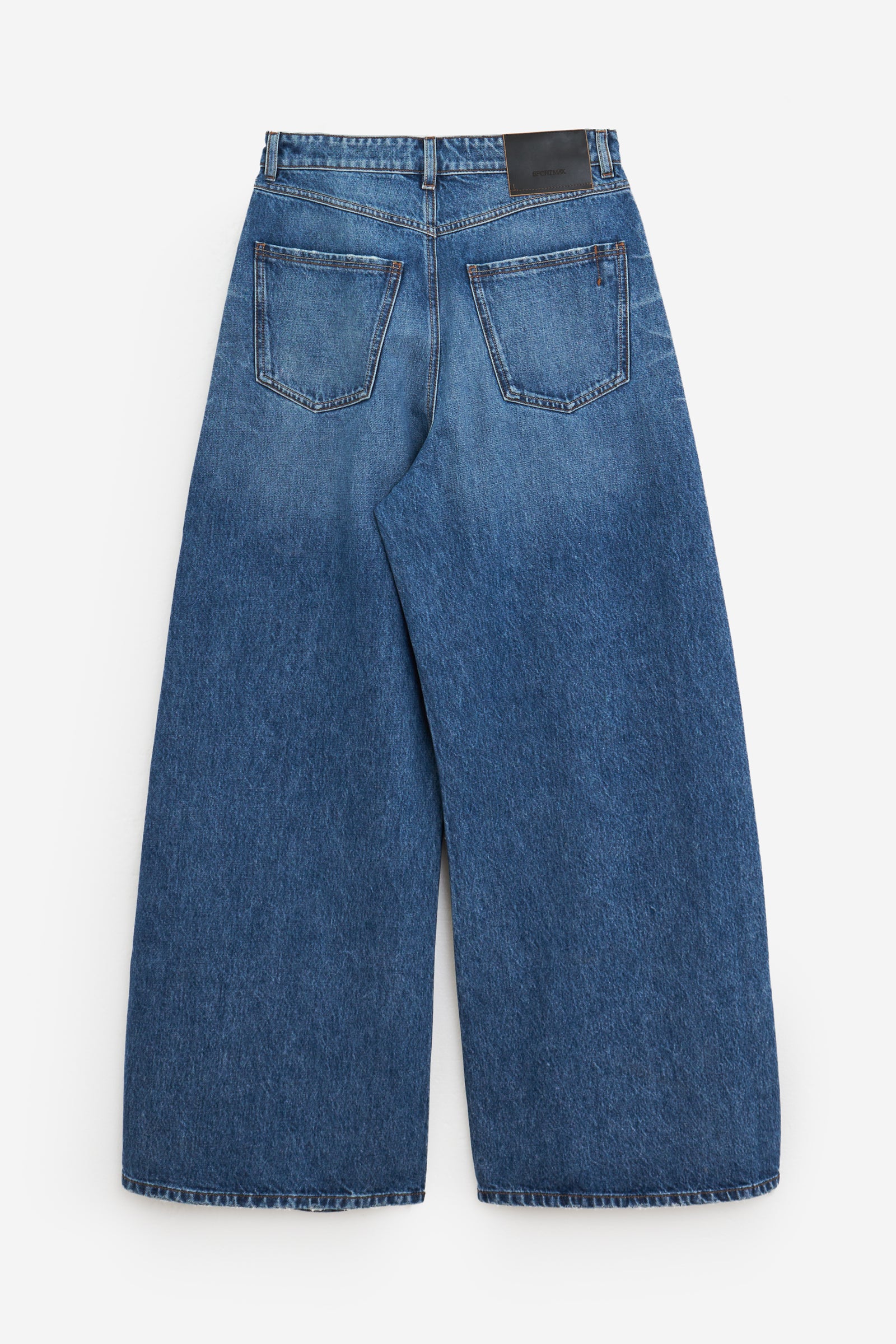 Jeans ANGRI in Cotone Blu, gamba ampia, tasche frontali, tasche posteriori, passanti in vita, chiusura a bottone