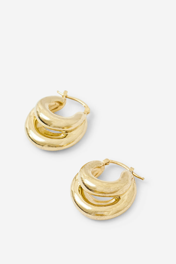 Il metallo scolpito crea silhouette voluminose che avvolgono il corpo con estrema naturalezza, dando vita a gioielli audaci e leggeri al tempo stesso