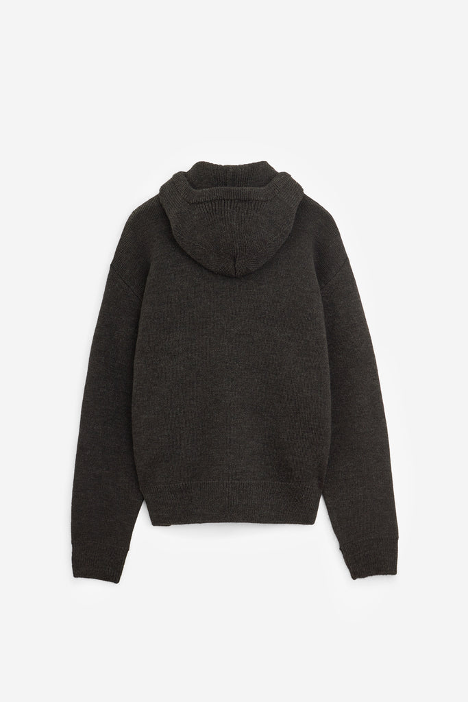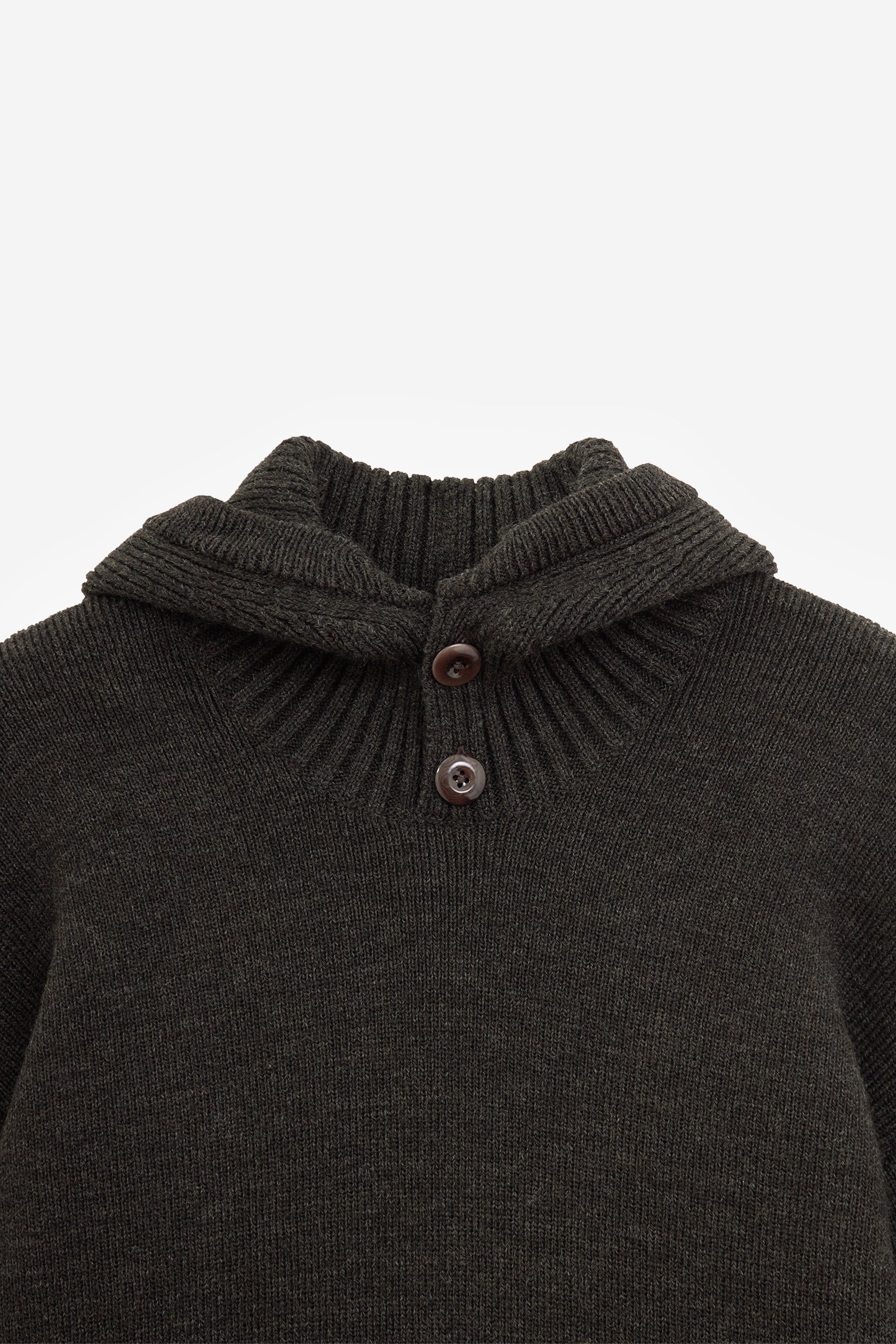 Felpa HOODED SWEATER in Acrilico Marrone, dettaglio a coste, maniche lunghe, orlo dritto, chiusura a bottone