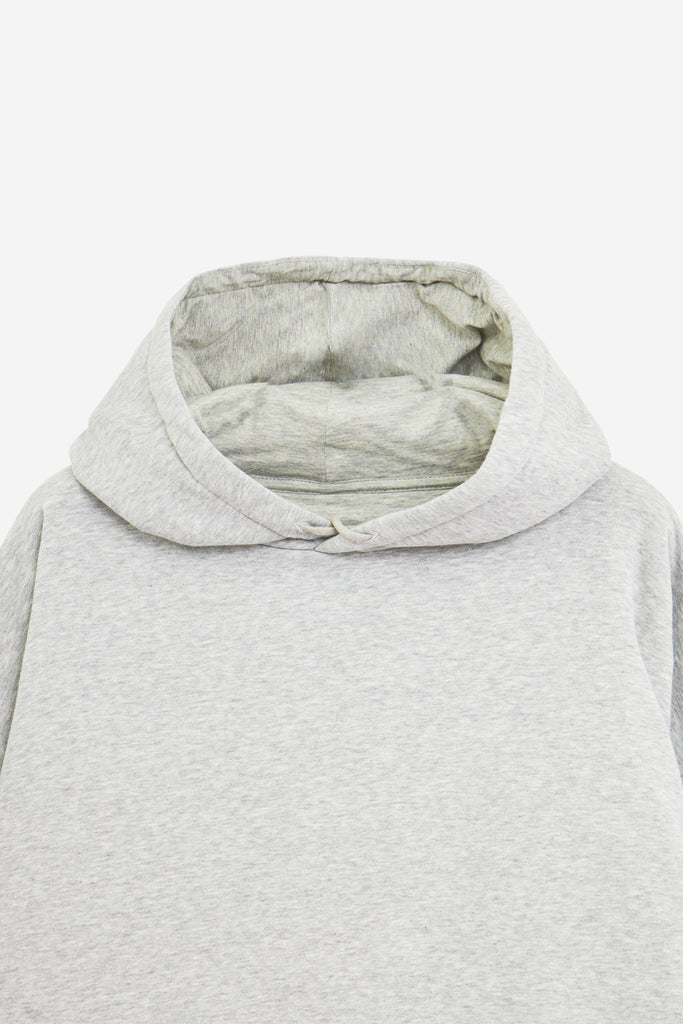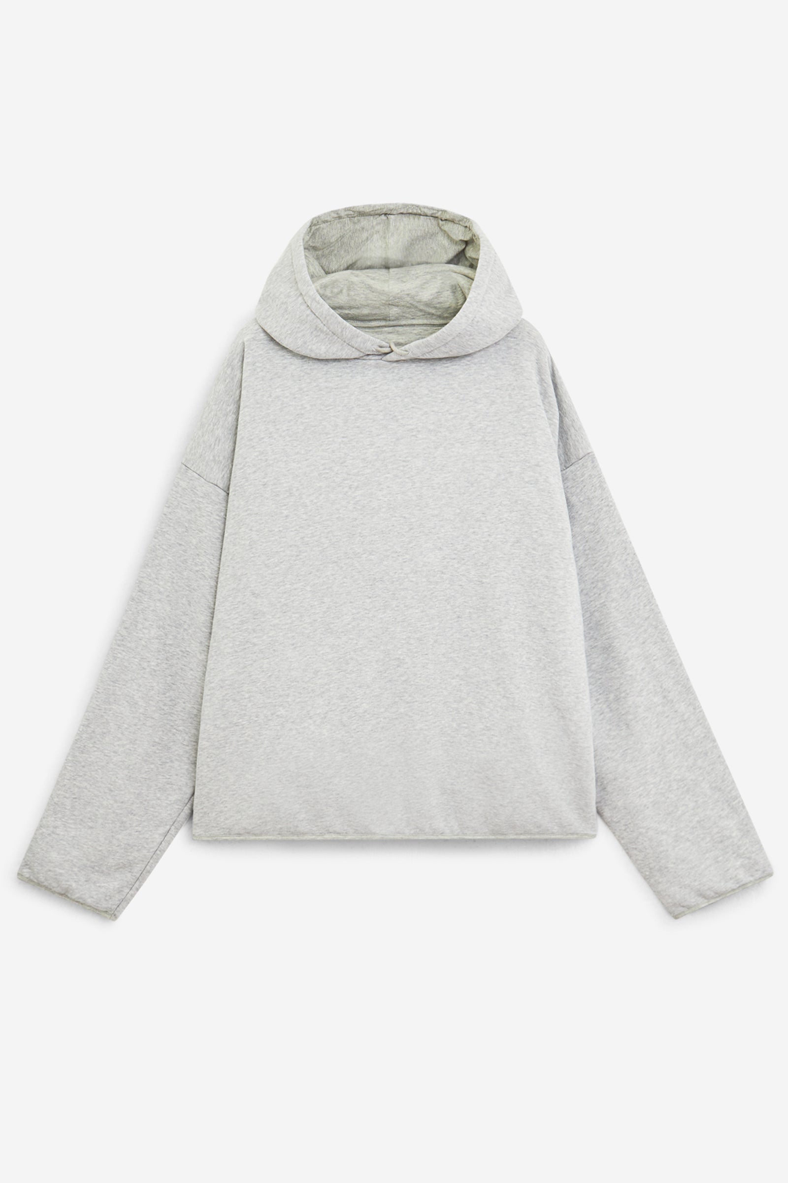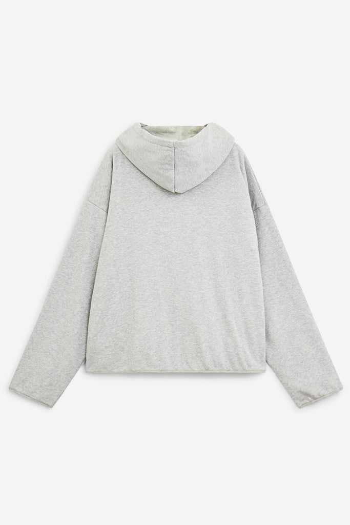 Felpa in Cotone Grigio, cappuccio, maniche lunghe, orlo dritto