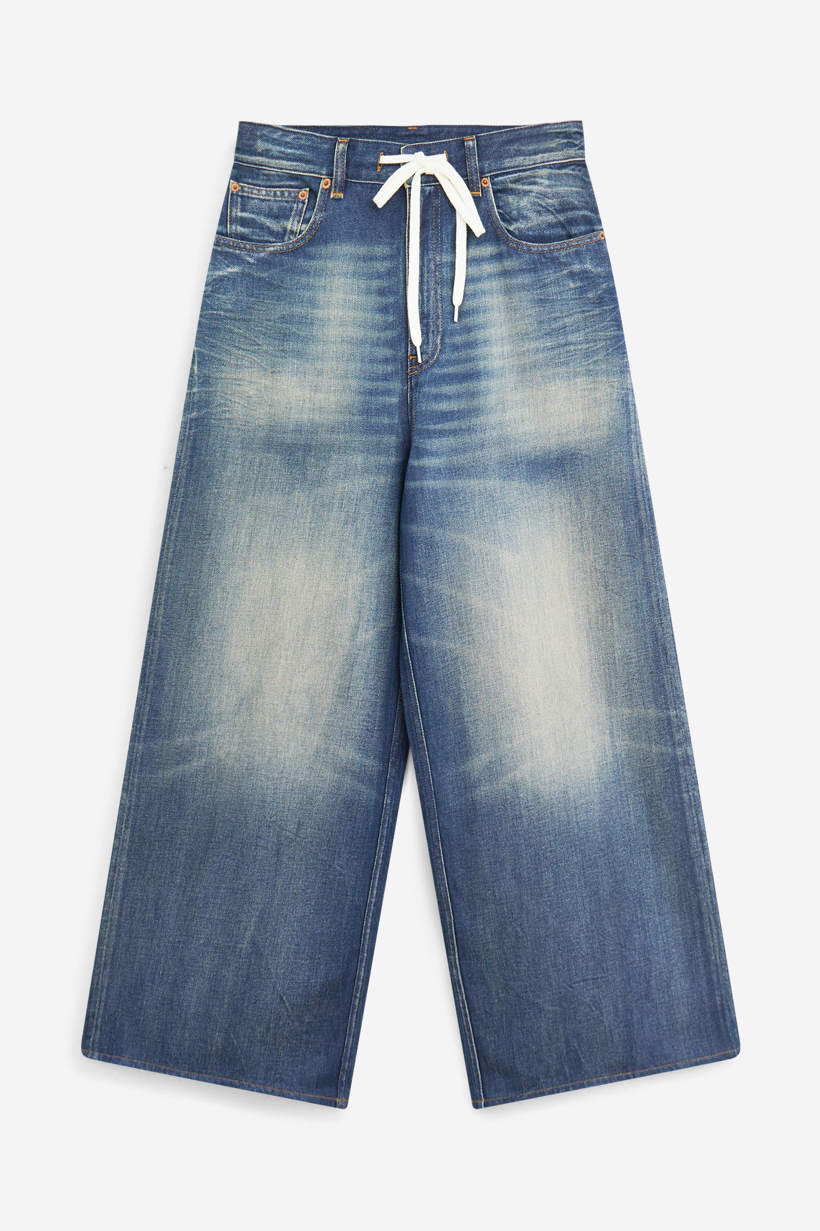 Jeans 5 POCKET in Cotone Azzurro, passanti in vita, chiusura a bottone, tasche posteriori, gamba ampia, tasche laterali