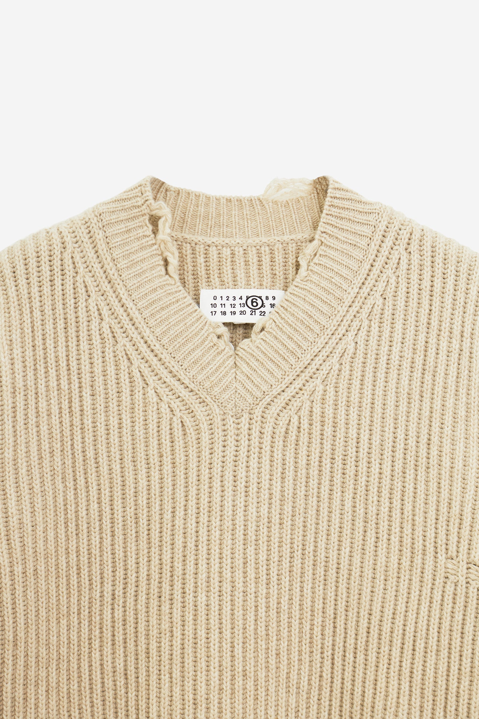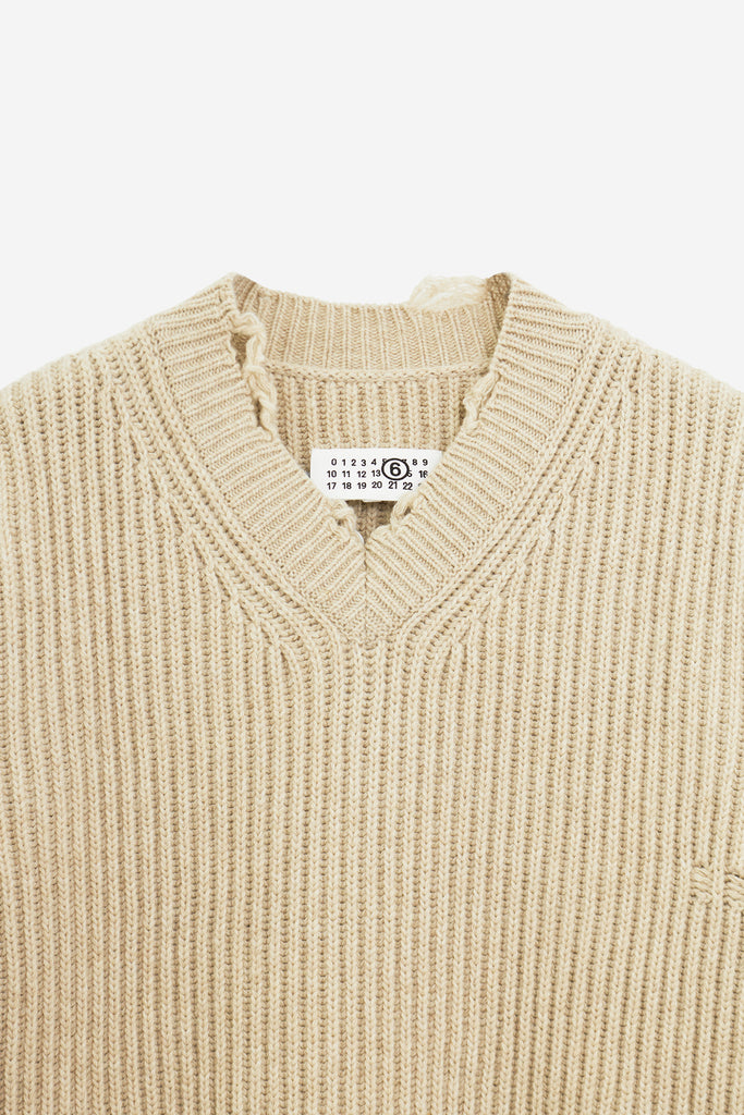 Maglia in Lana Sabbia, maniche lunghe, orlo dritto, scollo a v