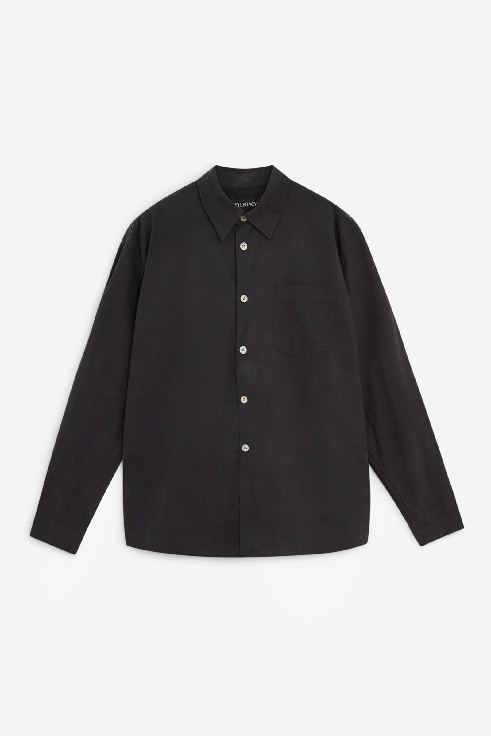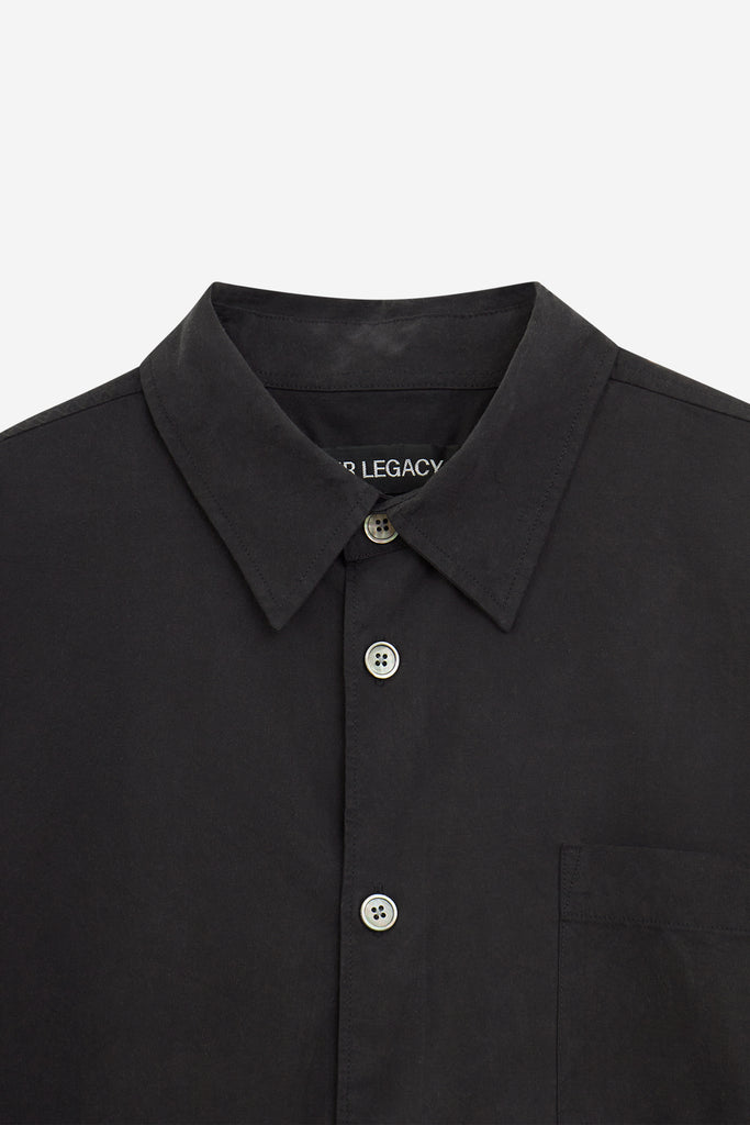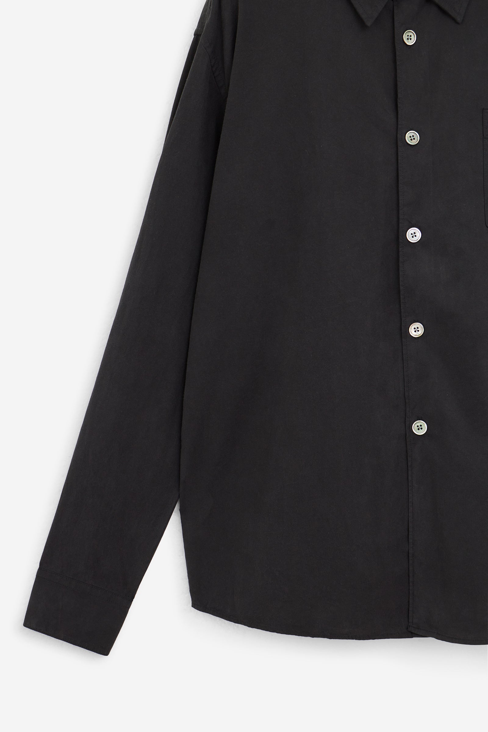 Camicia BEYOND in Cotone Nero, colletto classico, abbottonatura frontale, maniche lunghe, taschino petto