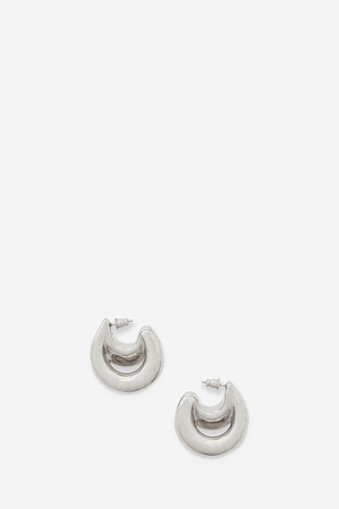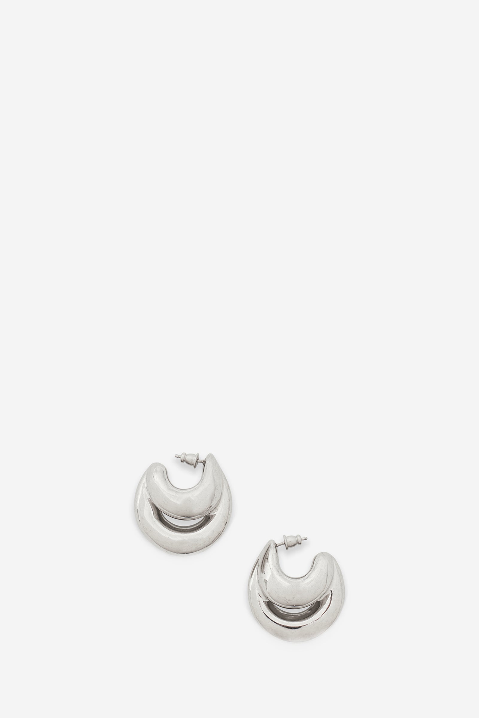 Il metallo scolpito crea silhouette voluminose che avvolgono il corpo con estrema naturalezza, dando vita a gioielli audaci e leggeri al tempo stesso