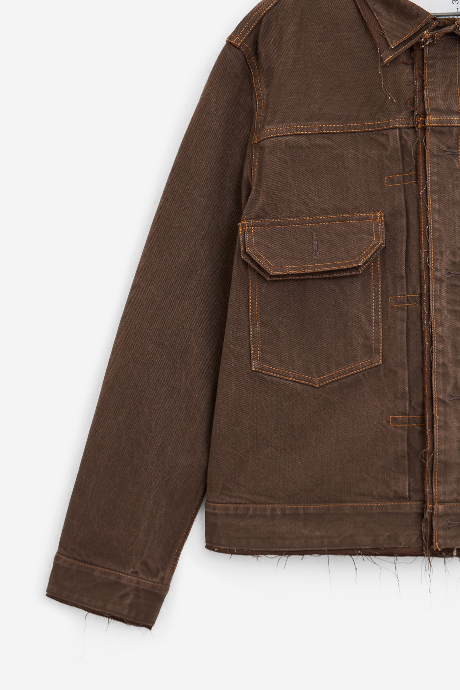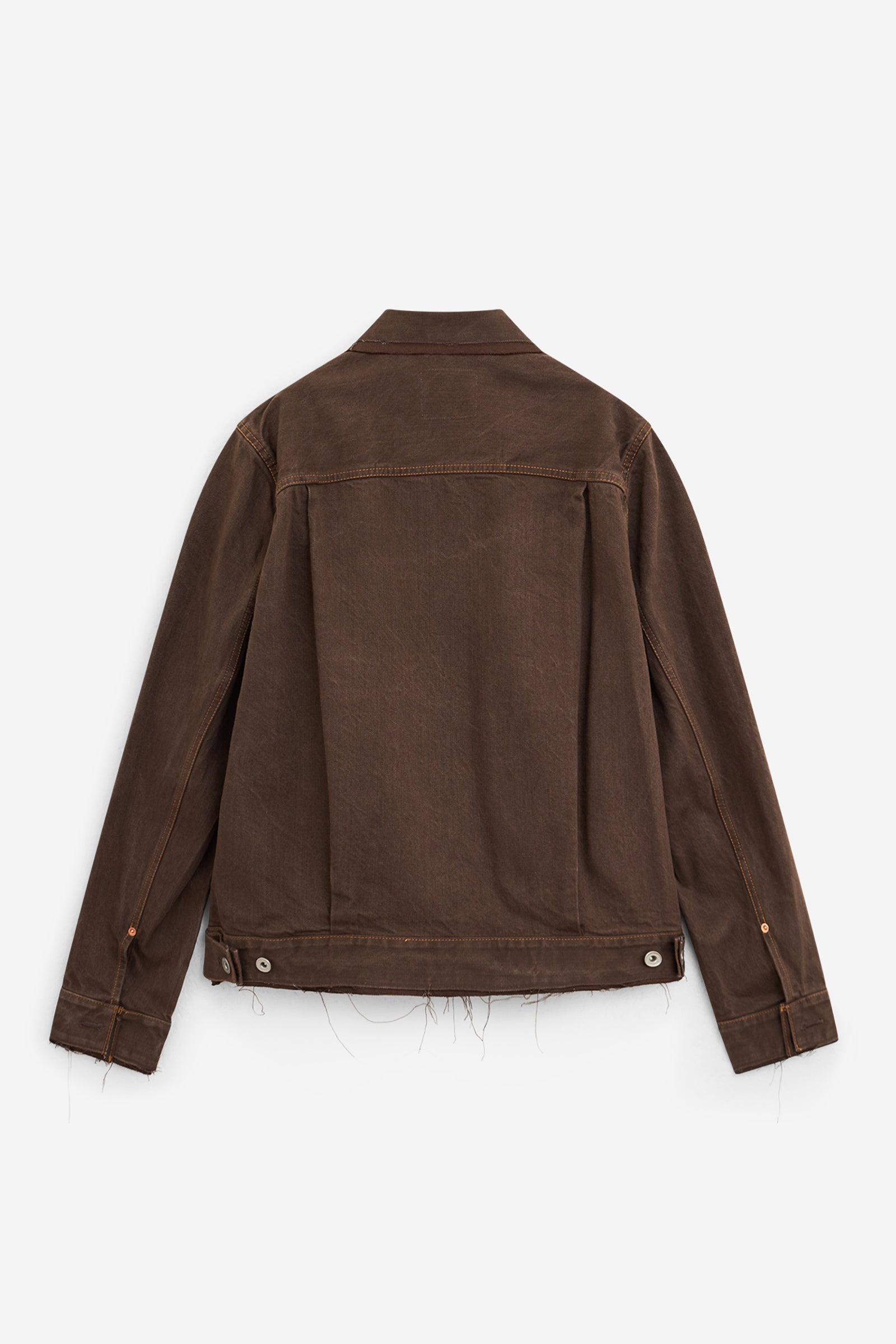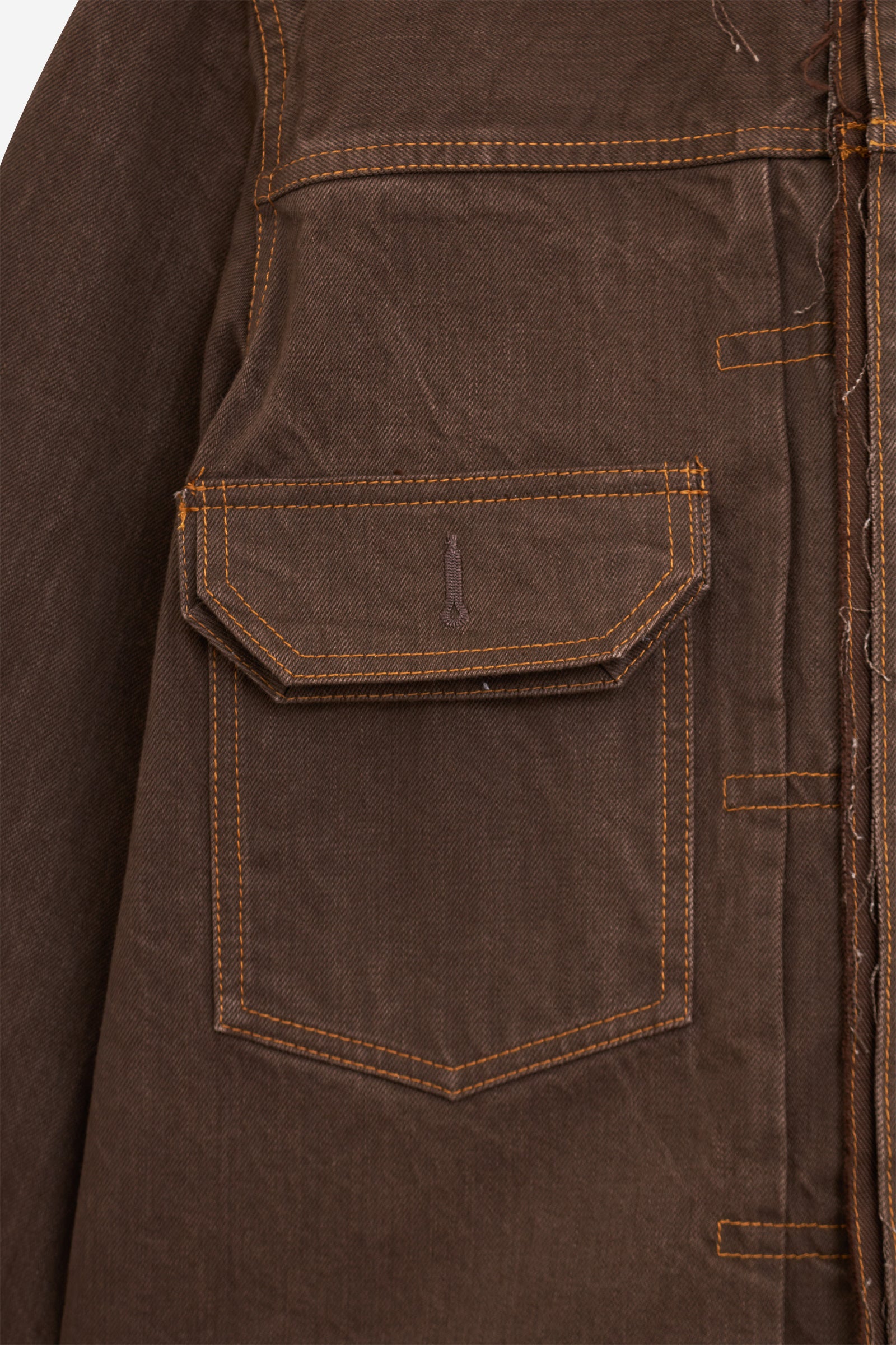 Giacca in Cotone Marrone, maniche lunghe, colletto classico, orlo dritto, tasche frontali, abbottonatura frontale