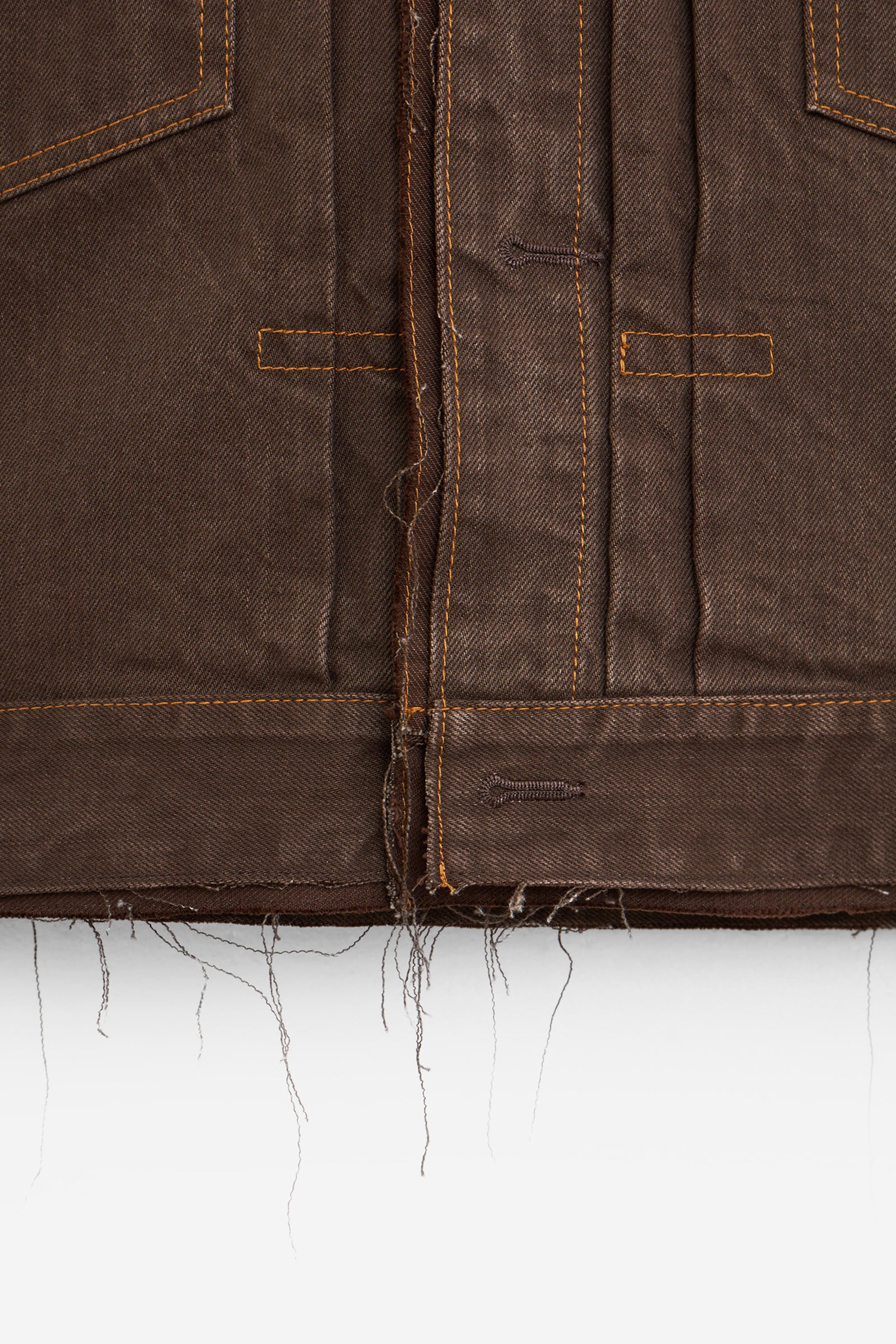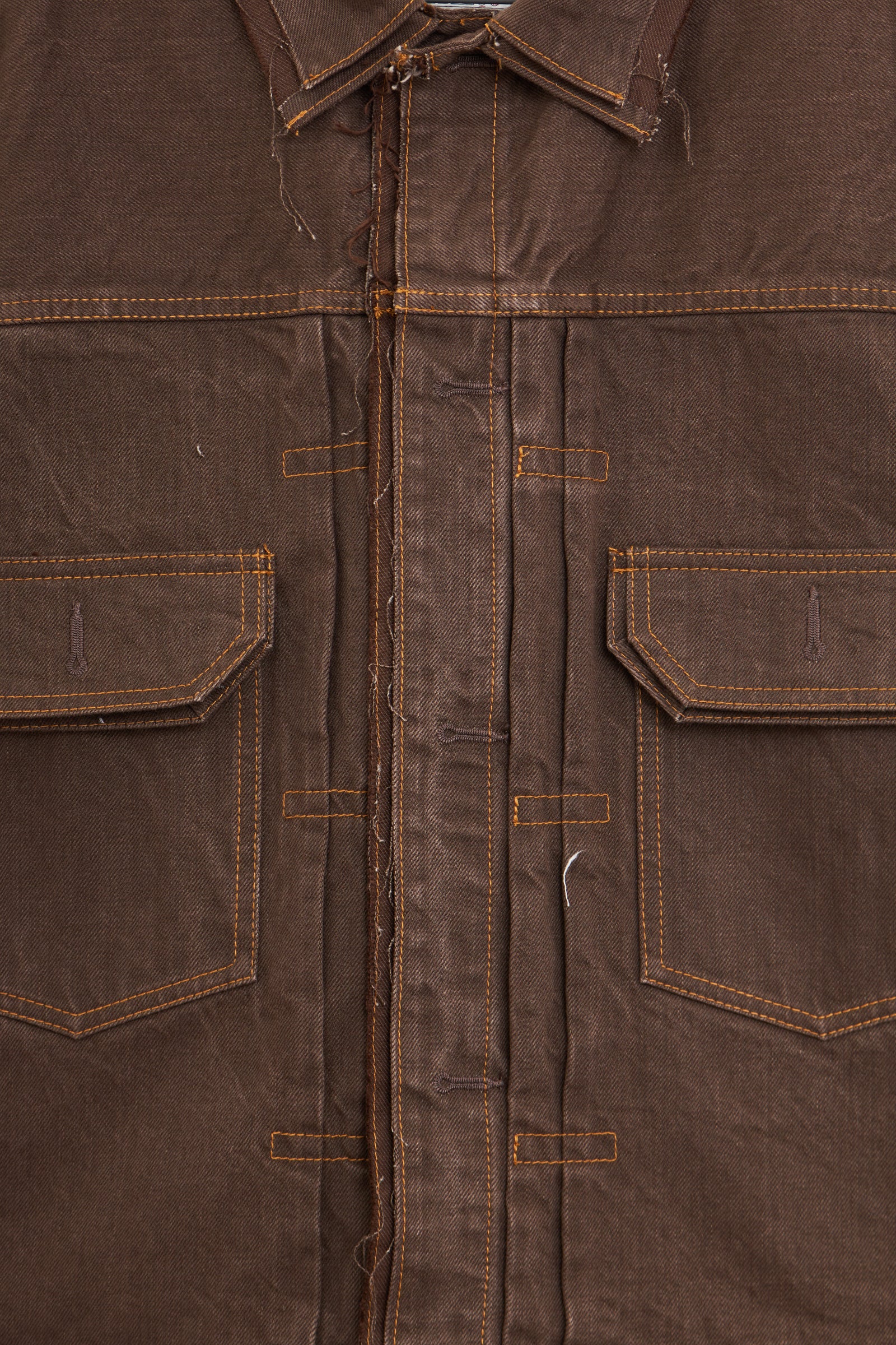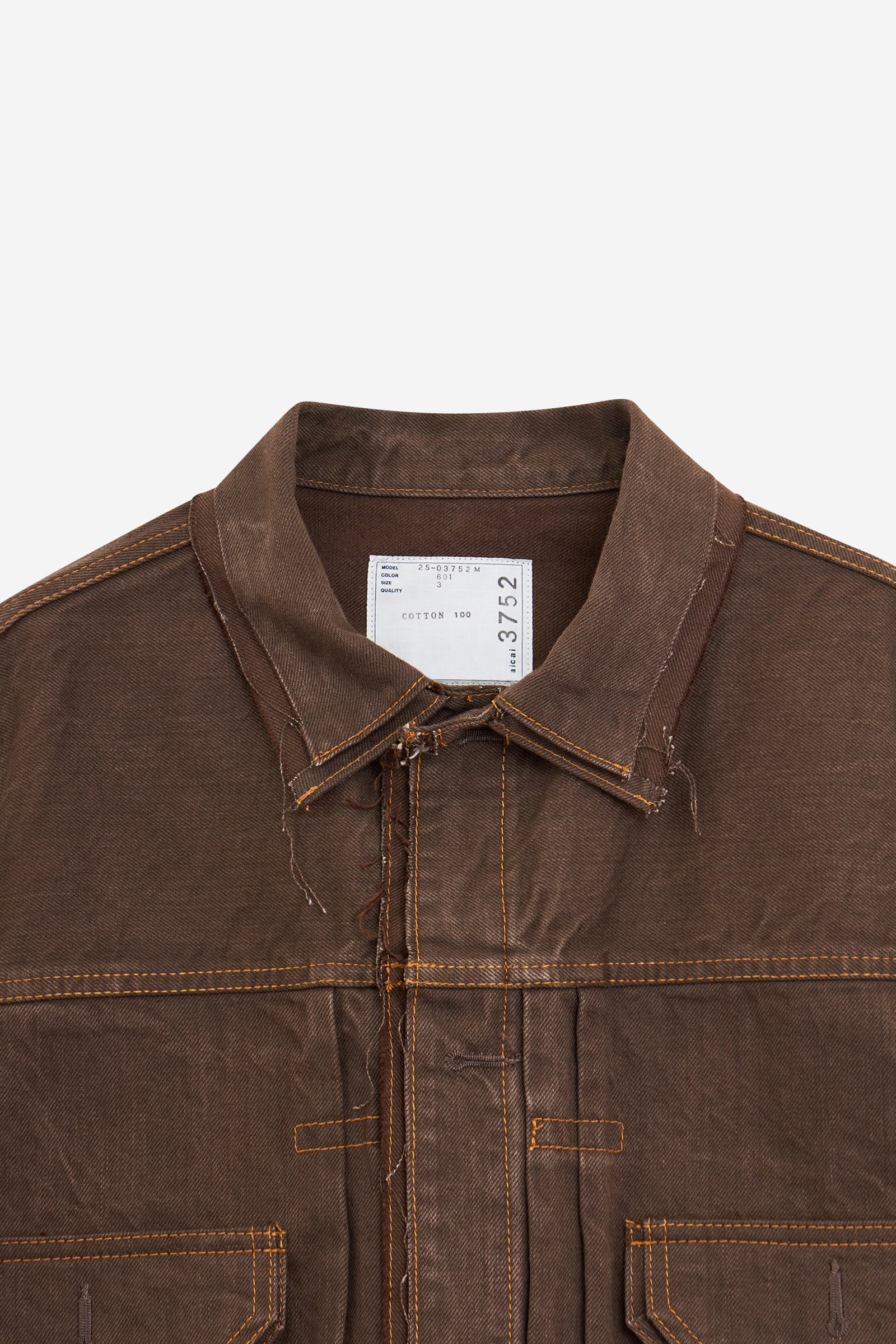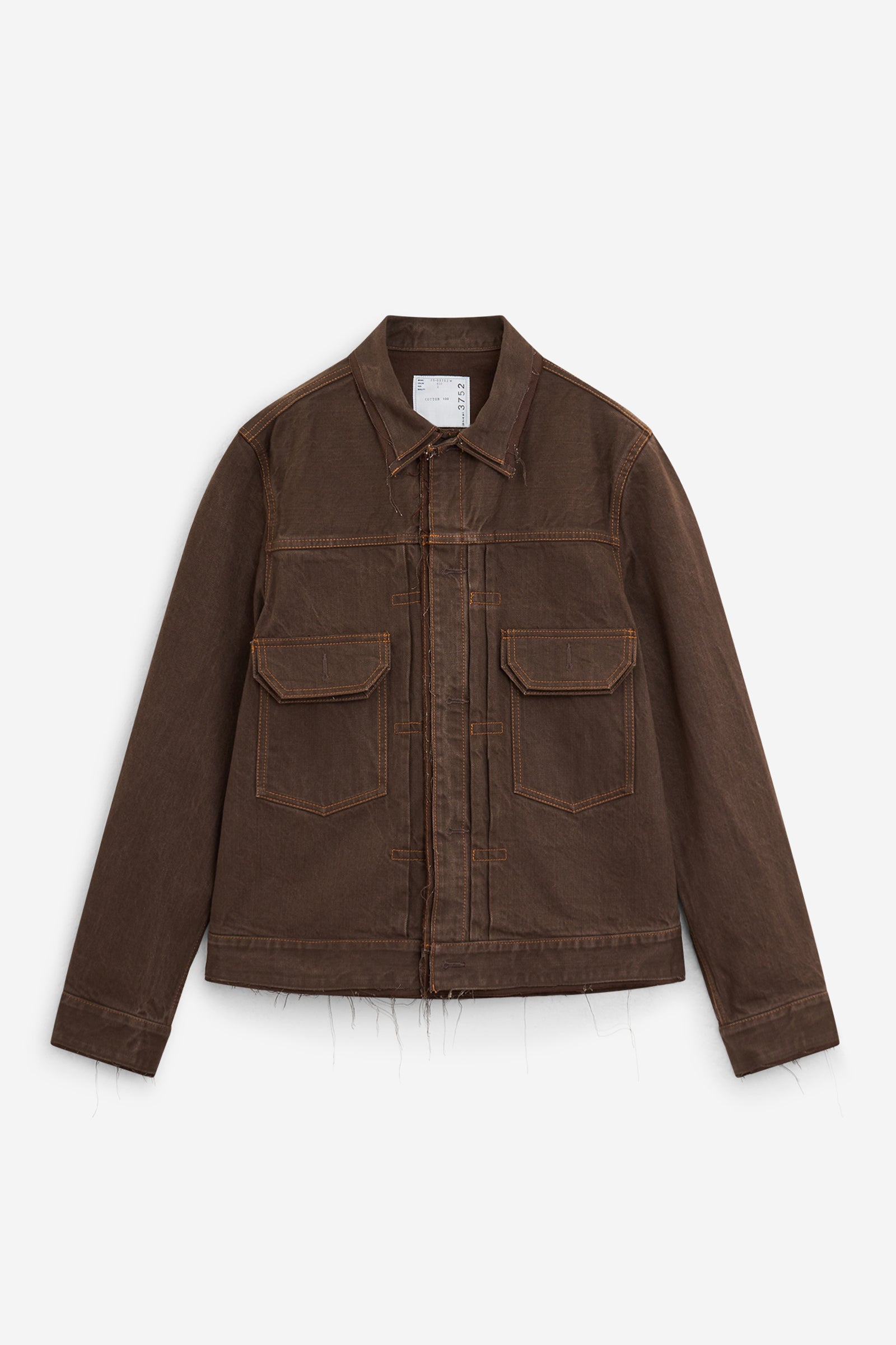 Giacca in Cotone Marrone, maniche lunghe, colletto classico, orlo dritto, tasche frontali, abbottonatura frontale