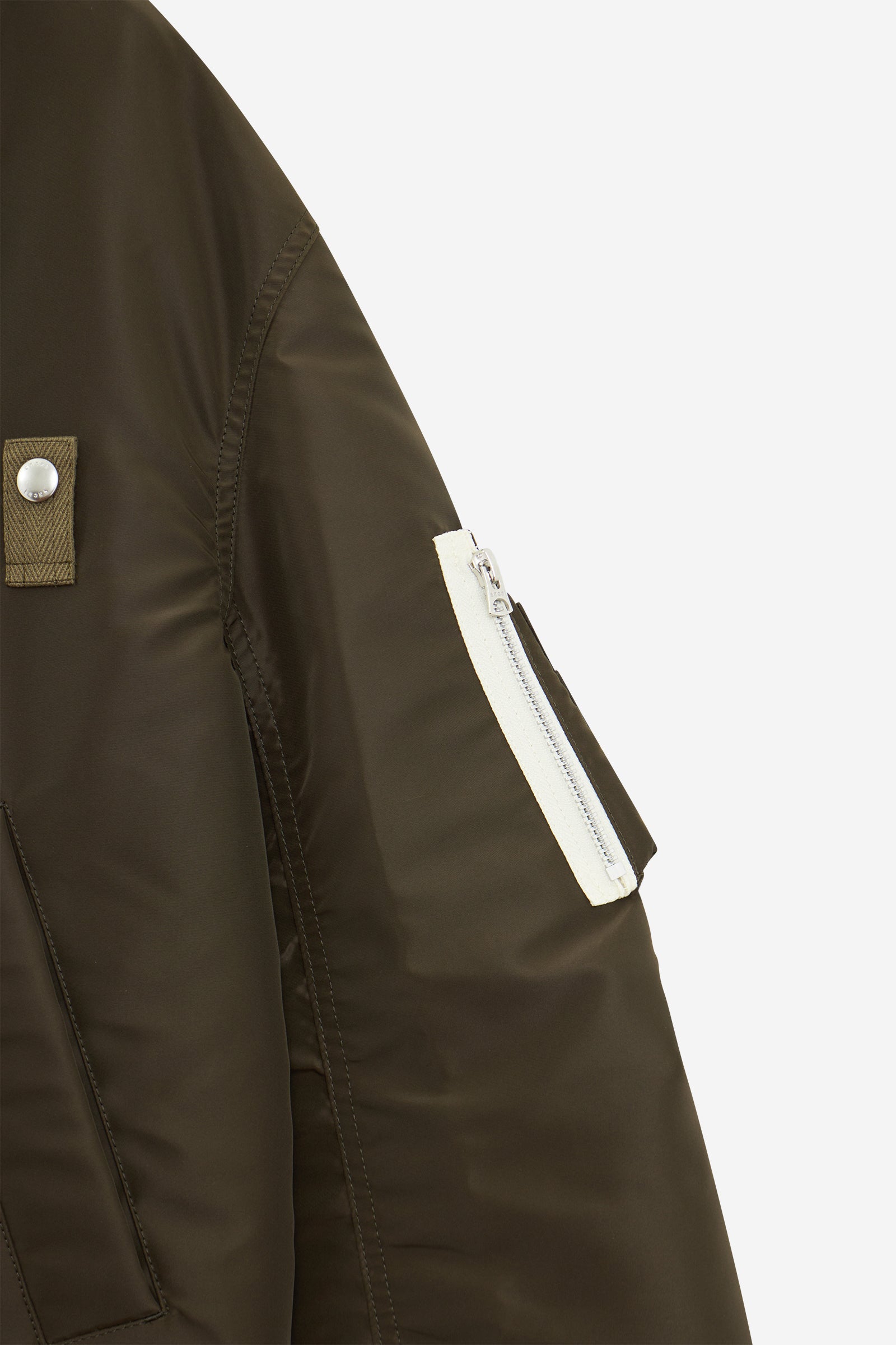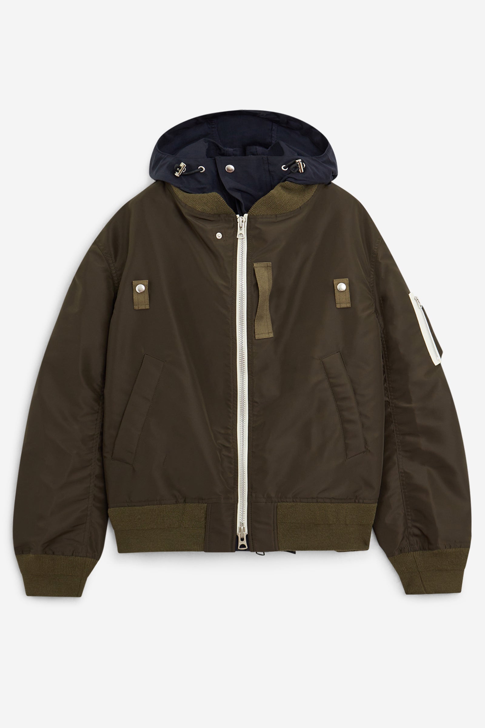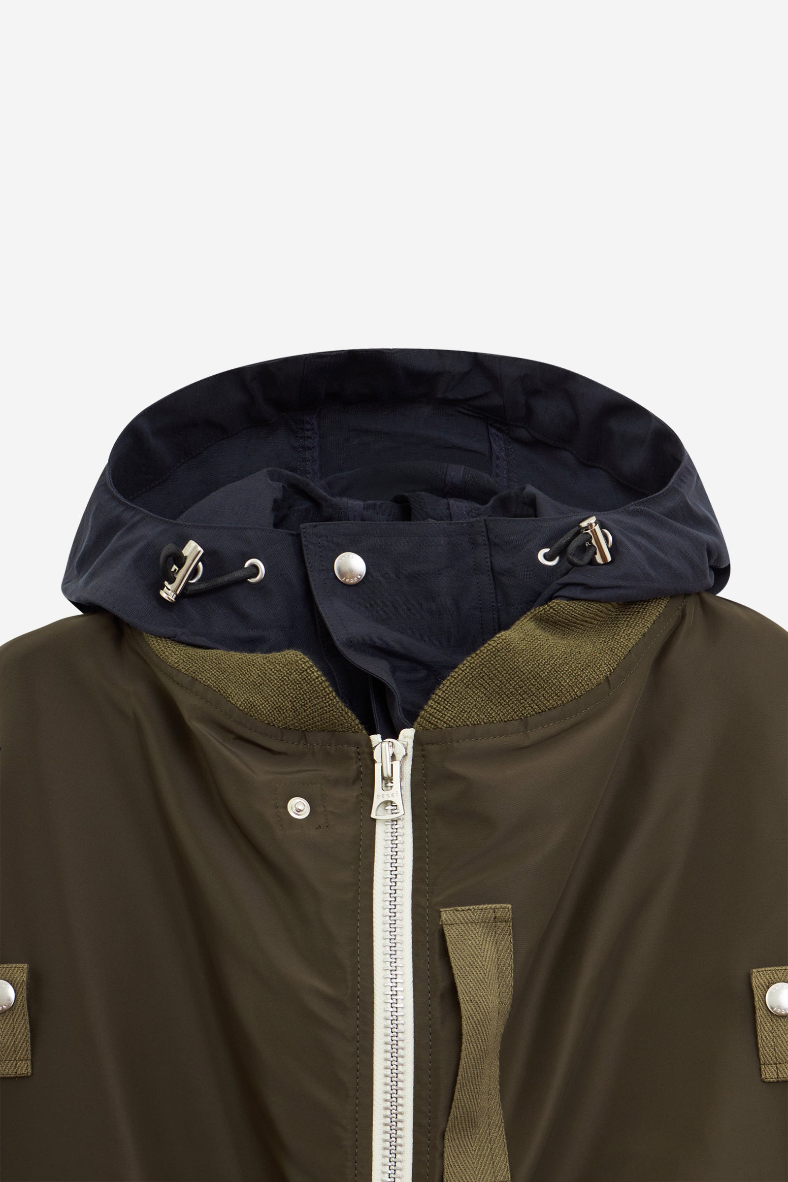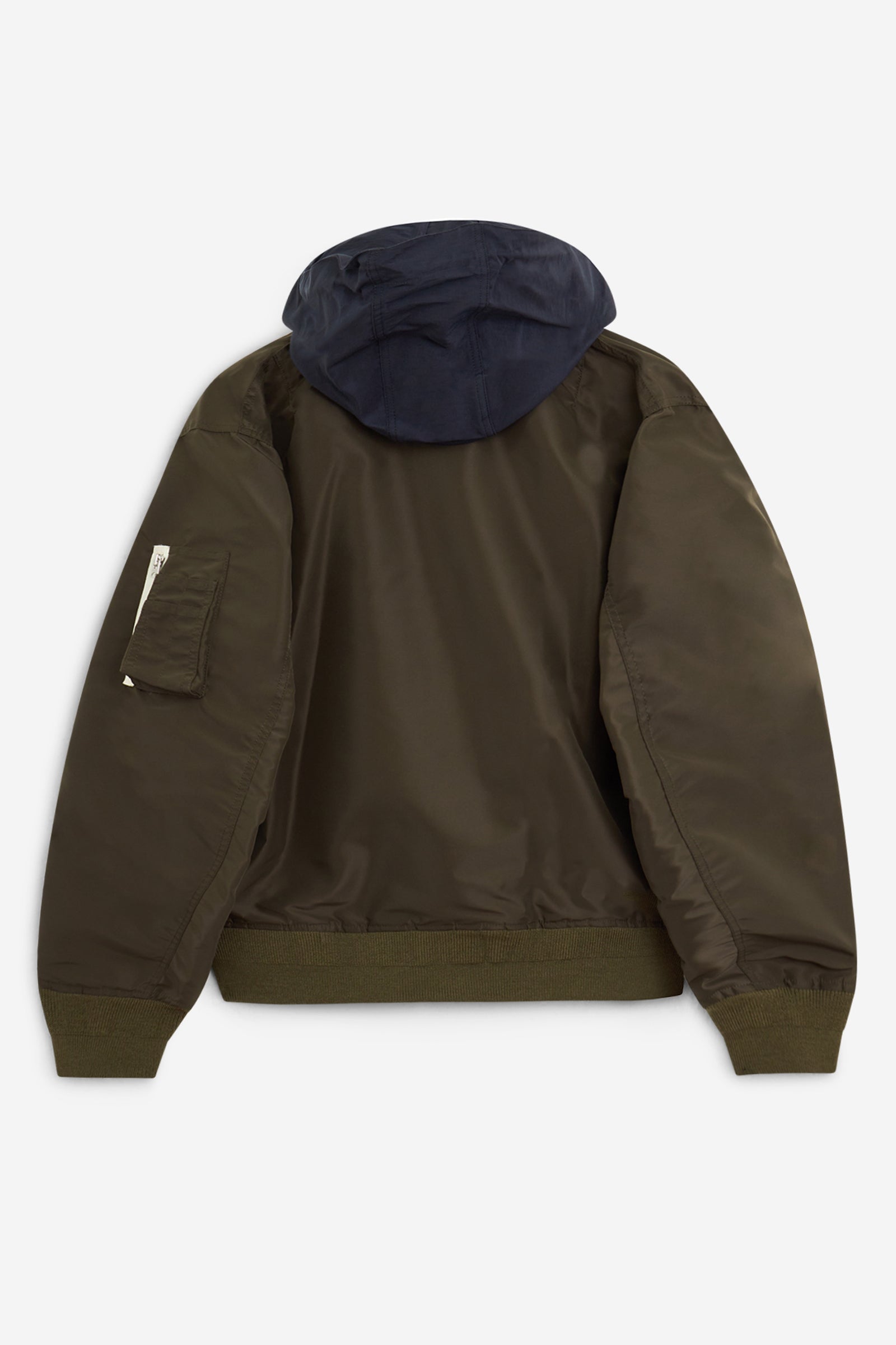 Giubbino in Nylon Verde, orlo dritto, maniche lunghe, chiusura con zip, manica con zip, cappuccio, tasche frontali