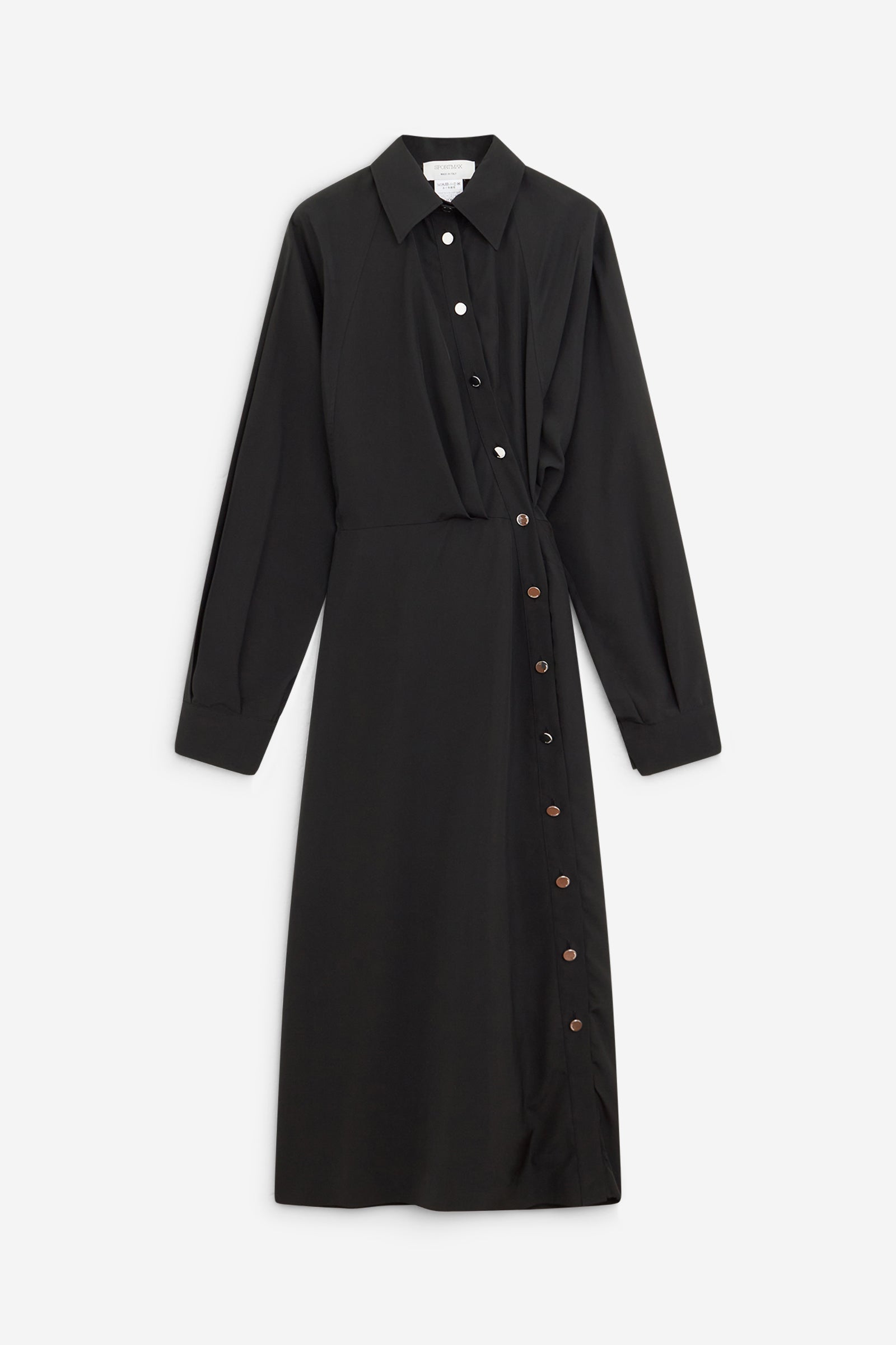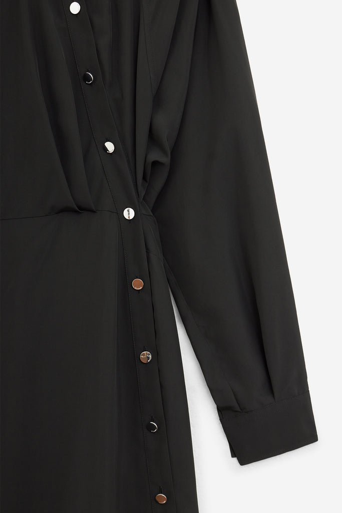 Abito MARANTA in viscosa Nera, colletto classico, maniche lunghe, abbottonatura frontale