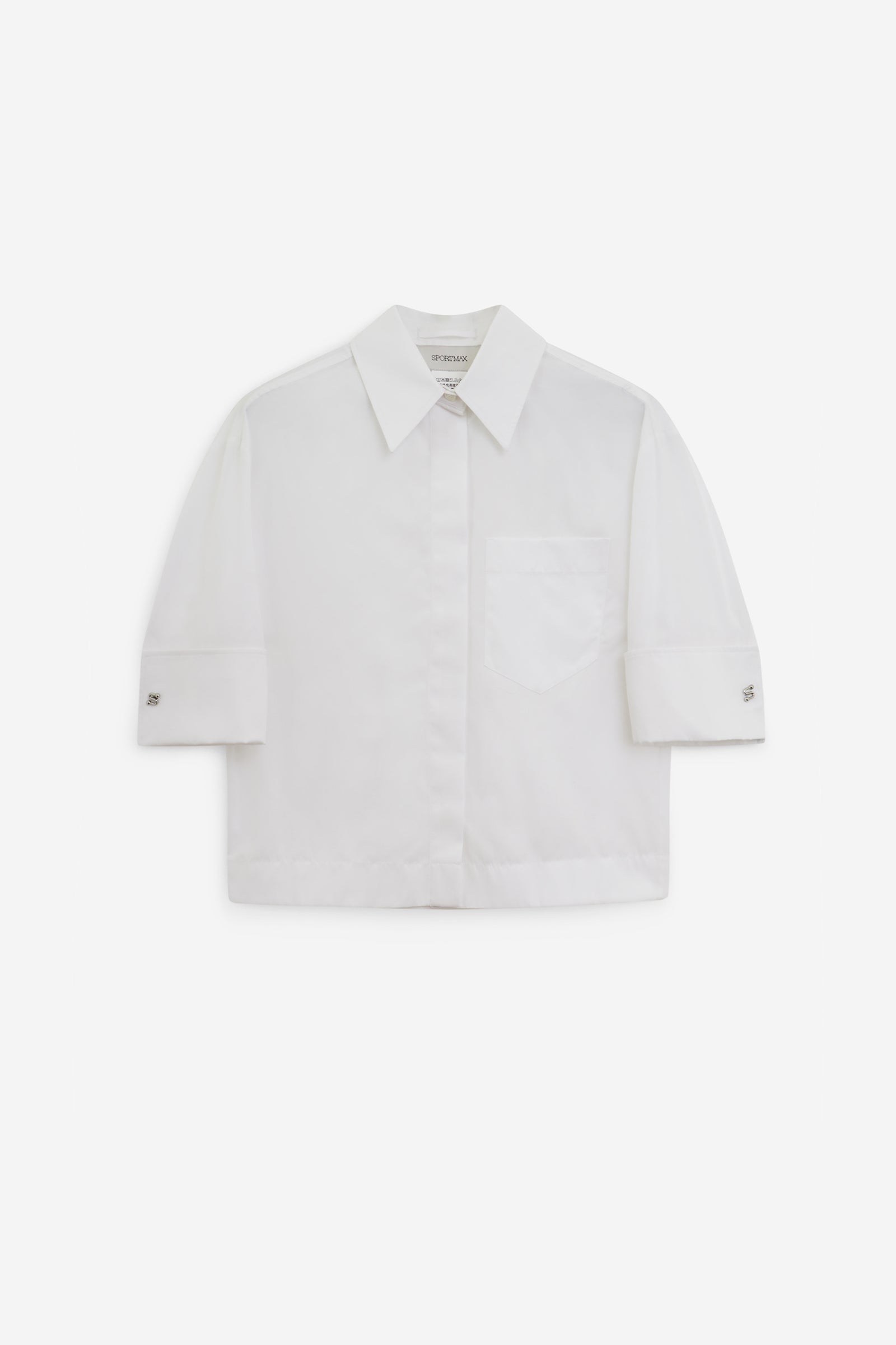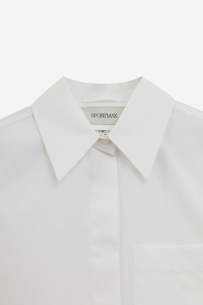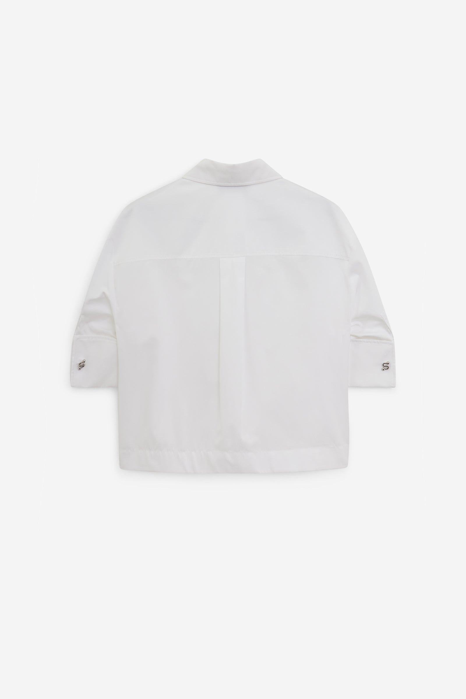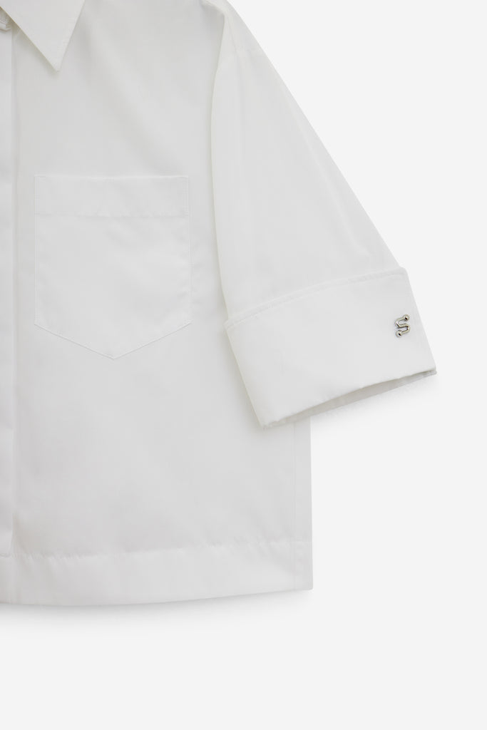 Camicia ELIOT in Cotone Bianco, colletto classico, abbottonatura frontale, maniche corte, orlo dritto, taschino petto, logo sulla manica
