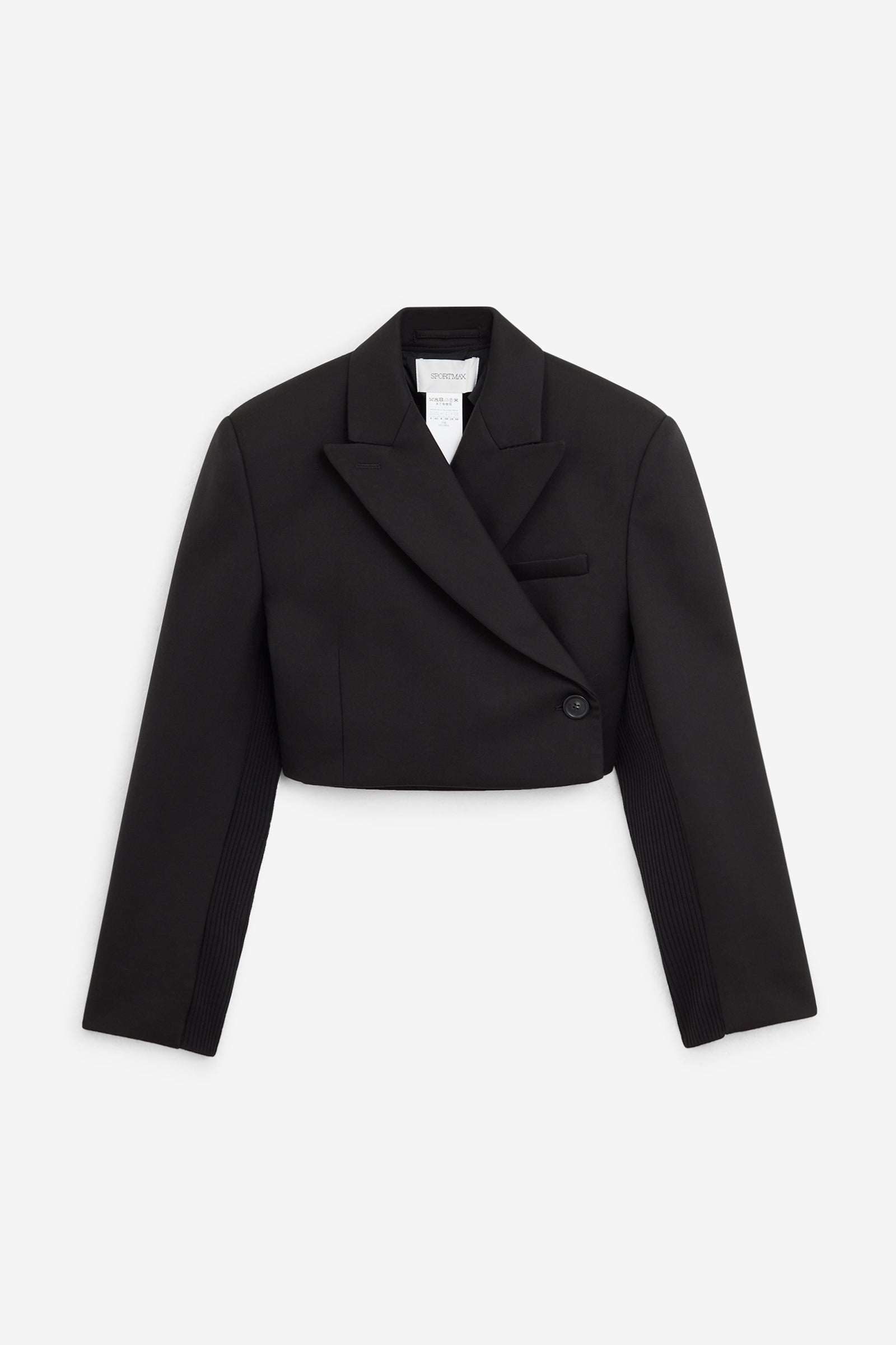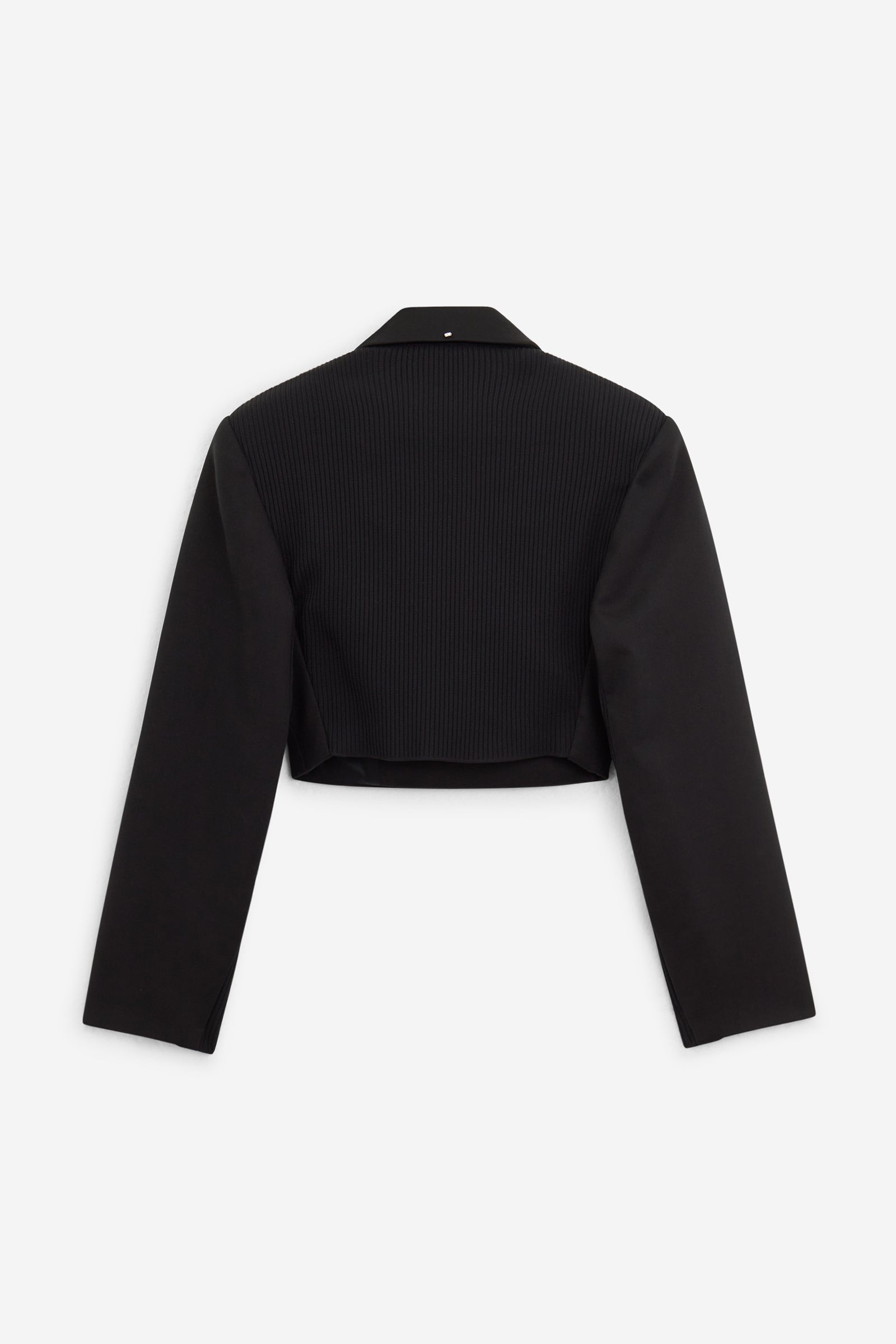 Giacca GAVINO in Cotone Nero, revers classico, maniche lunghe, orlo dritto, chiusura a bottone, taschino petto