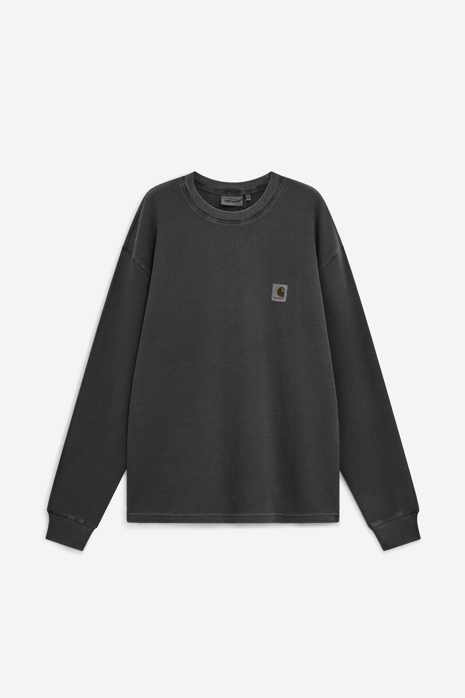 LS VISTA WAFFLE Long Sleeve T-Shirts in Black Cotton - M is backordered and will ship as soon as it is back in stock.