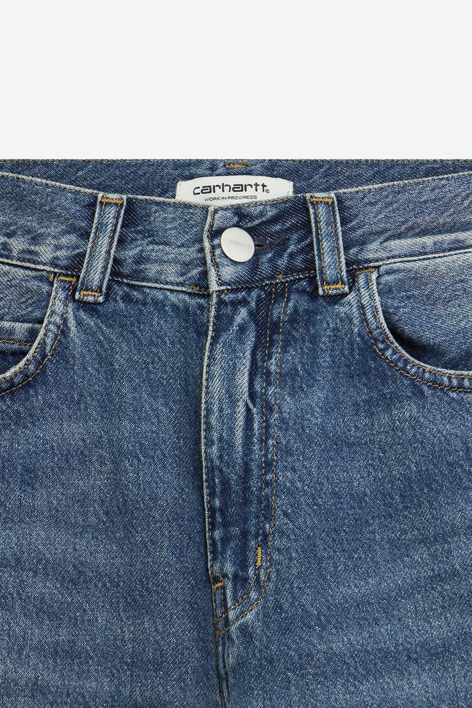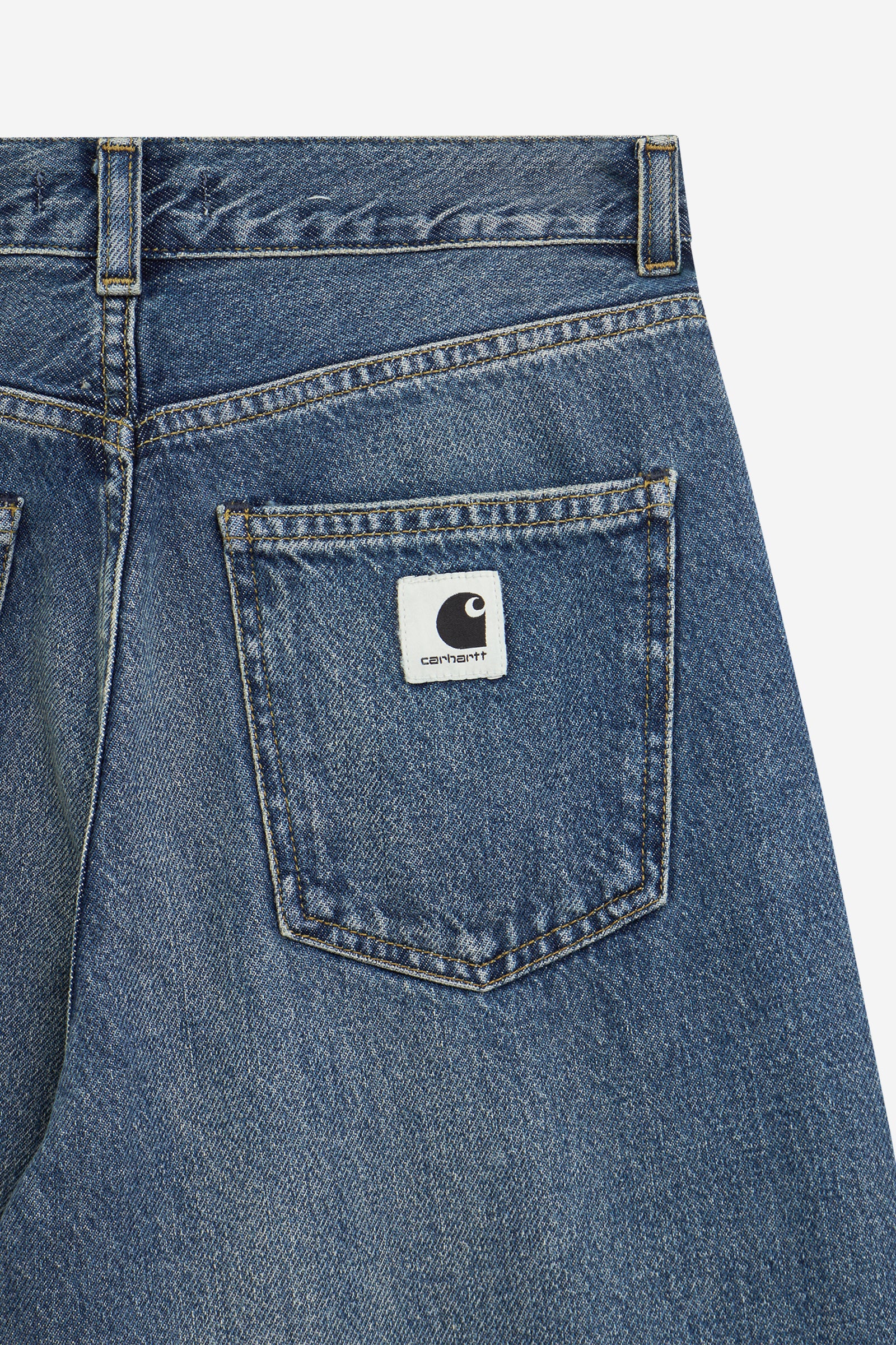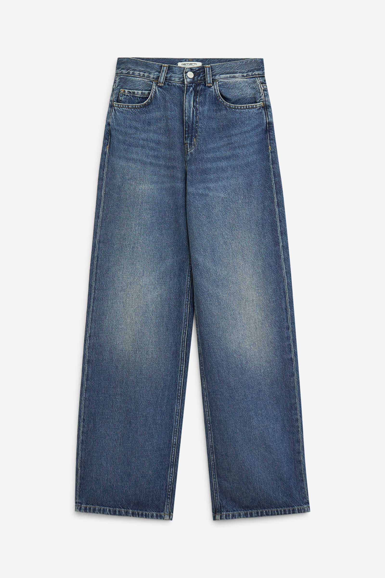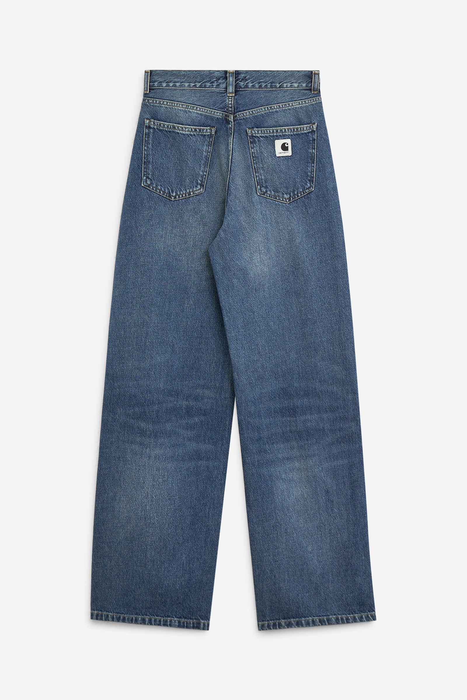 W JANE Blue Cotton Jeans, belt loops, button fastening, side pockets, wide leg, back pockets, logo on the back