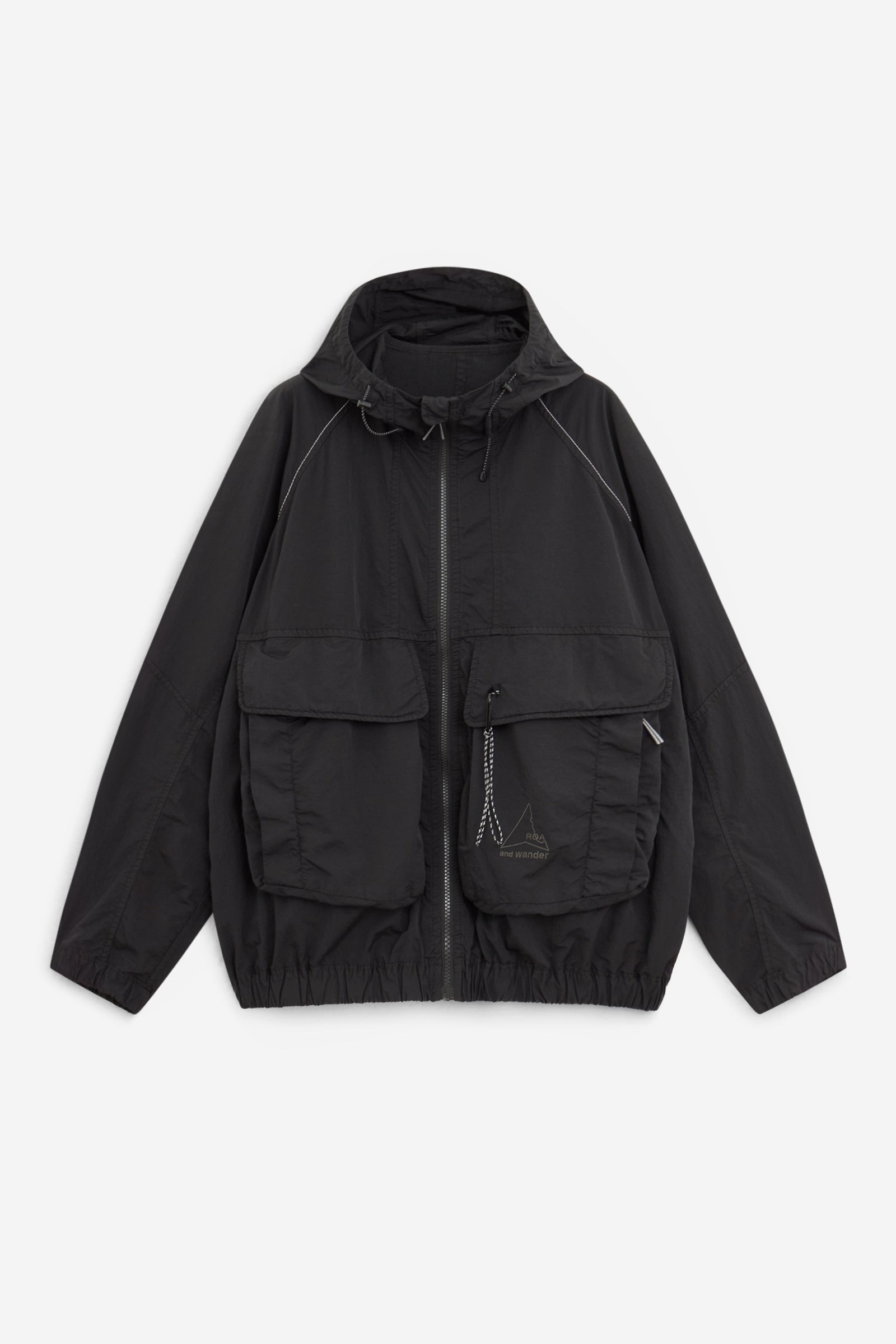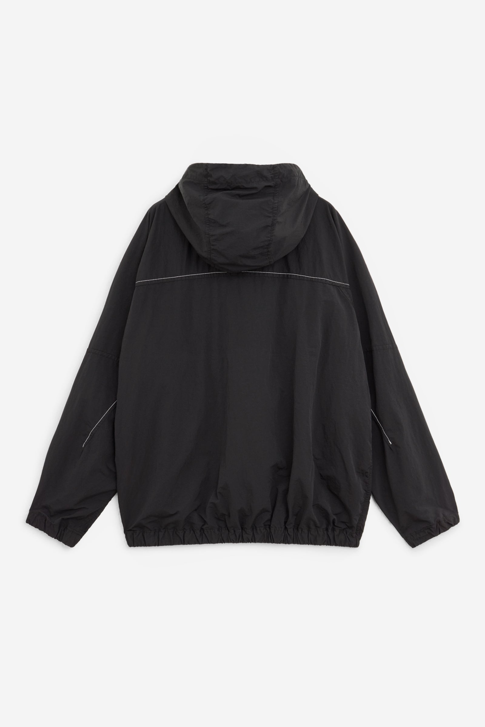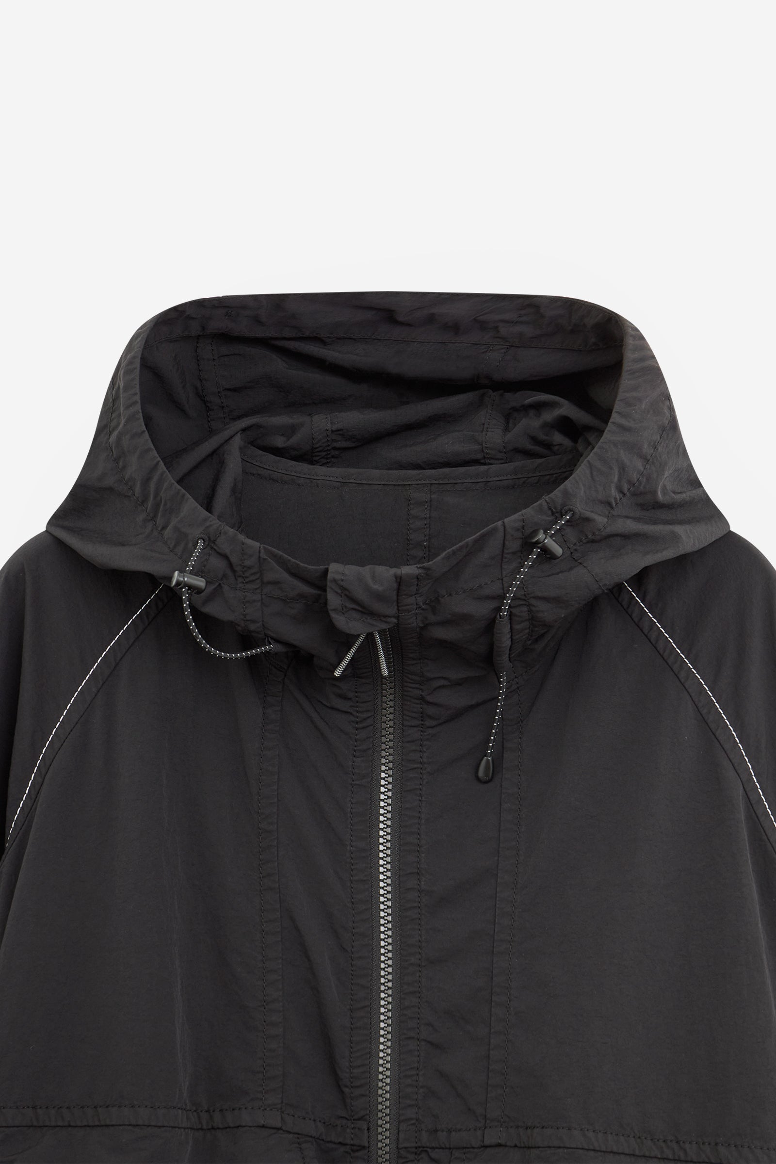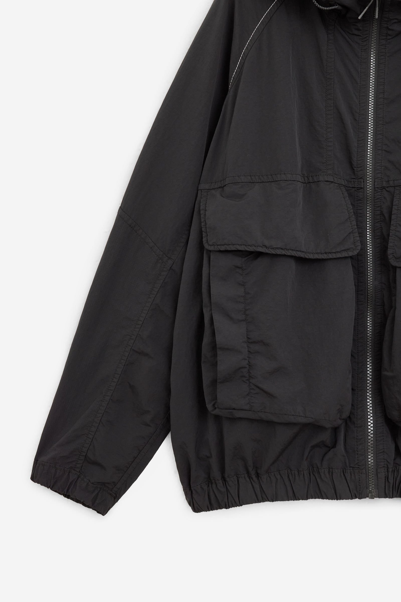 GARMENT NYLON HOOD Jacket in Black Nylon, front pockets, long sleeves, straight hem, zip fastening, hood