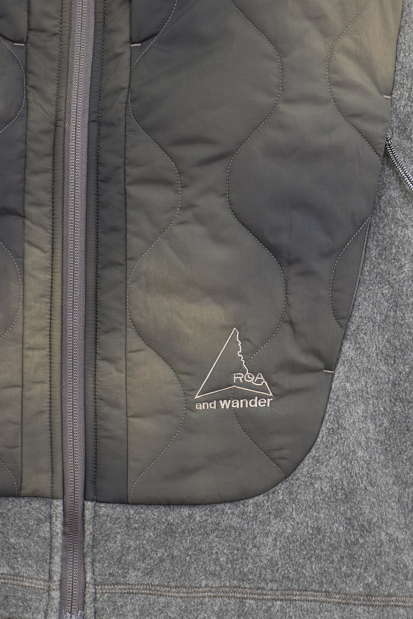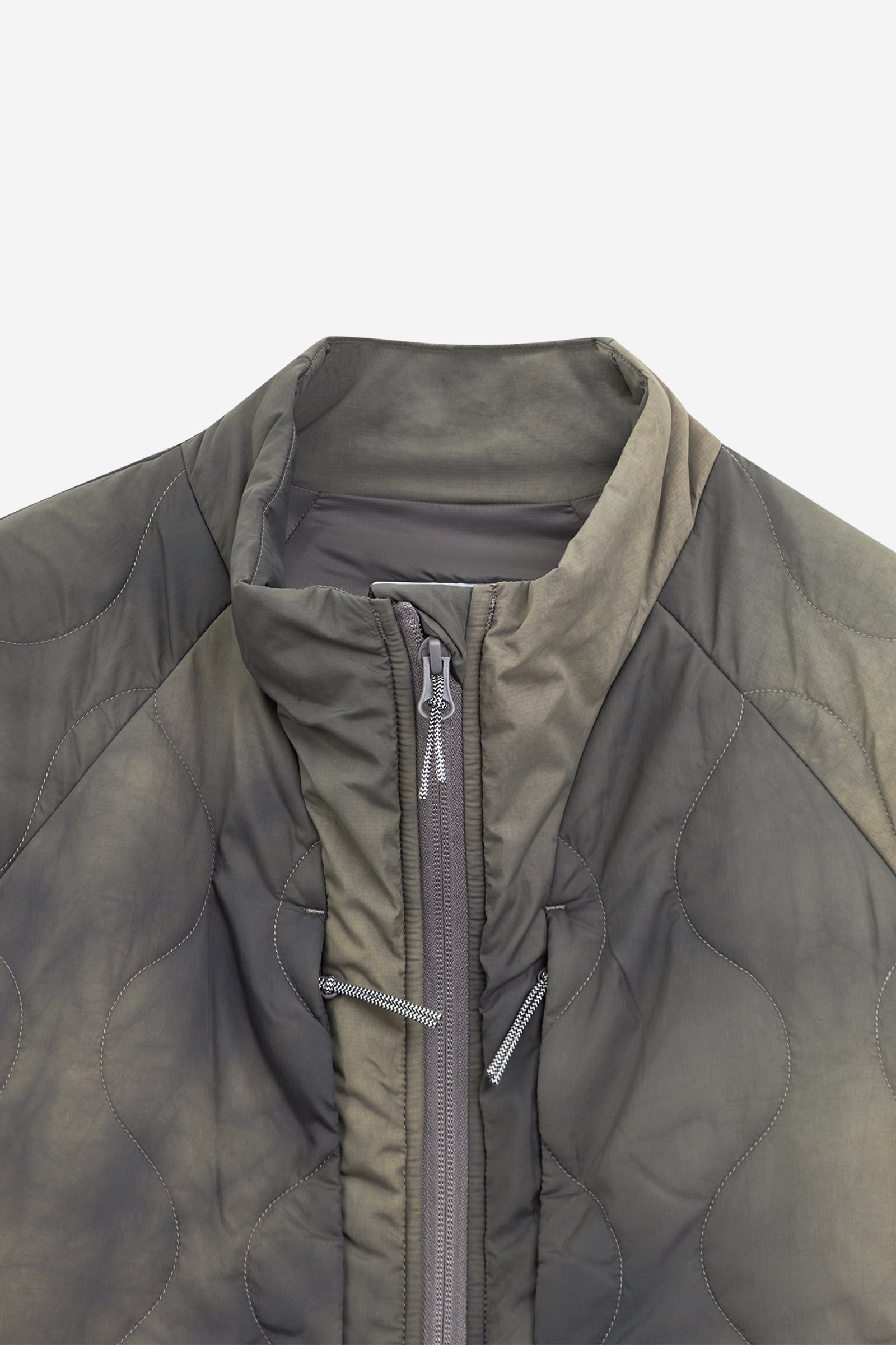 QUILTED FLEECE jacket in Grey Nylon, straight hem, long sleeves, zip fastening, logo on the front, front pockets, side pockets