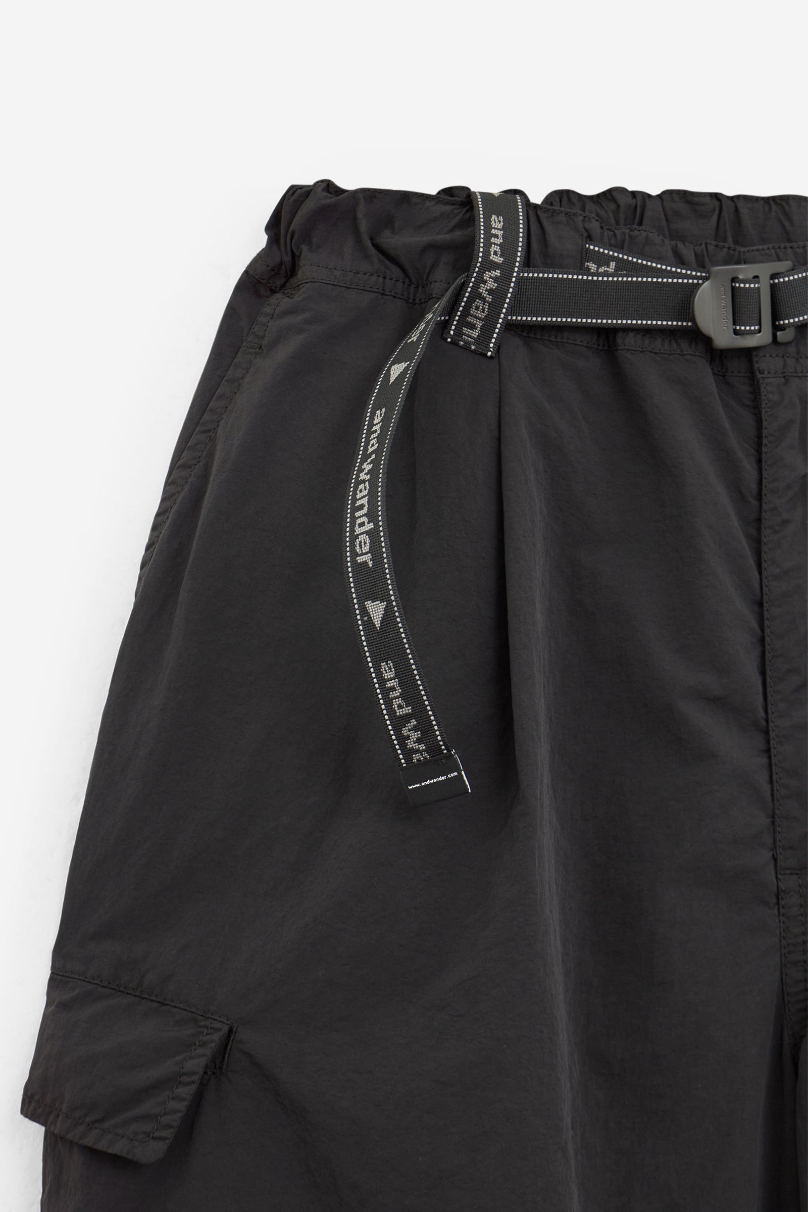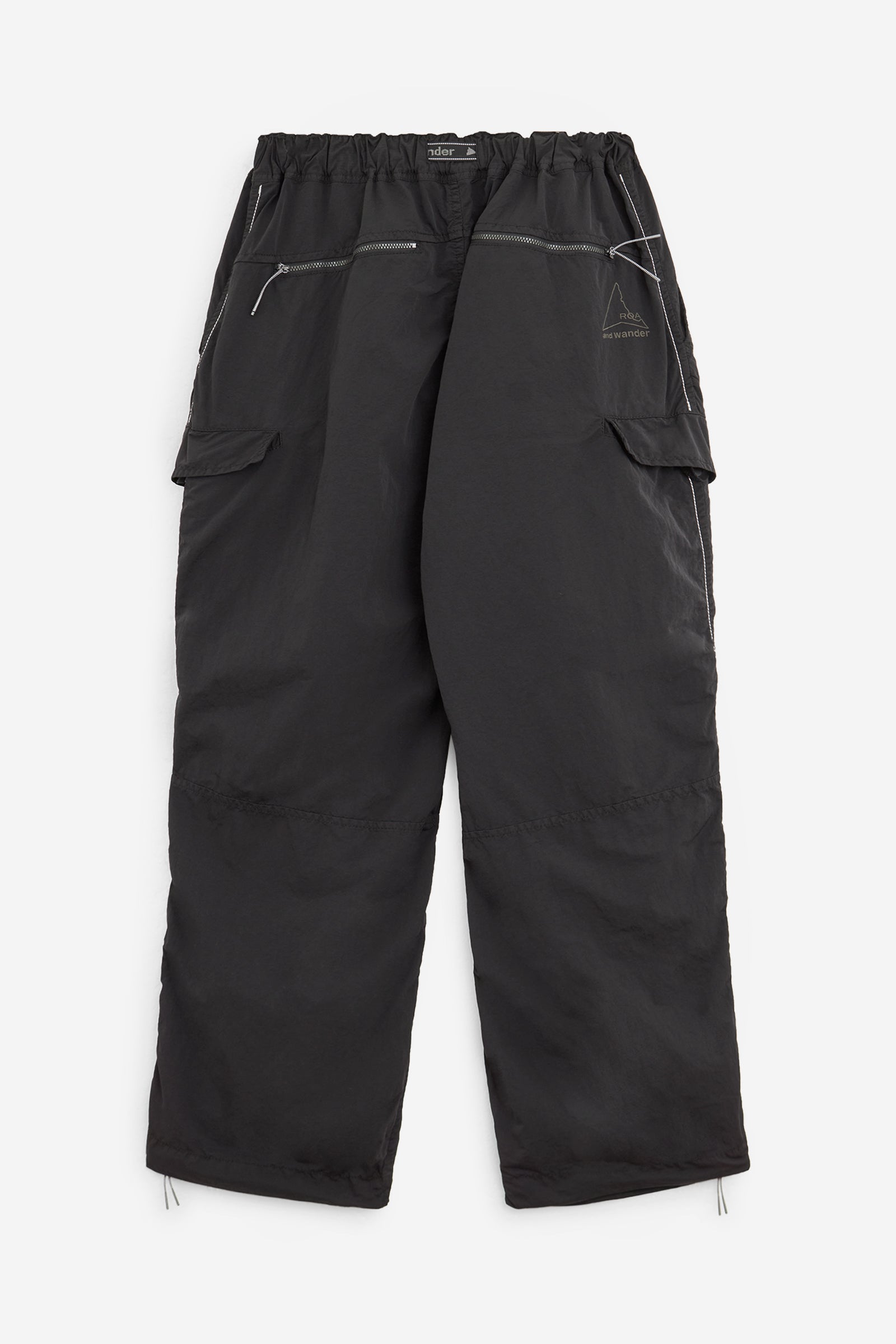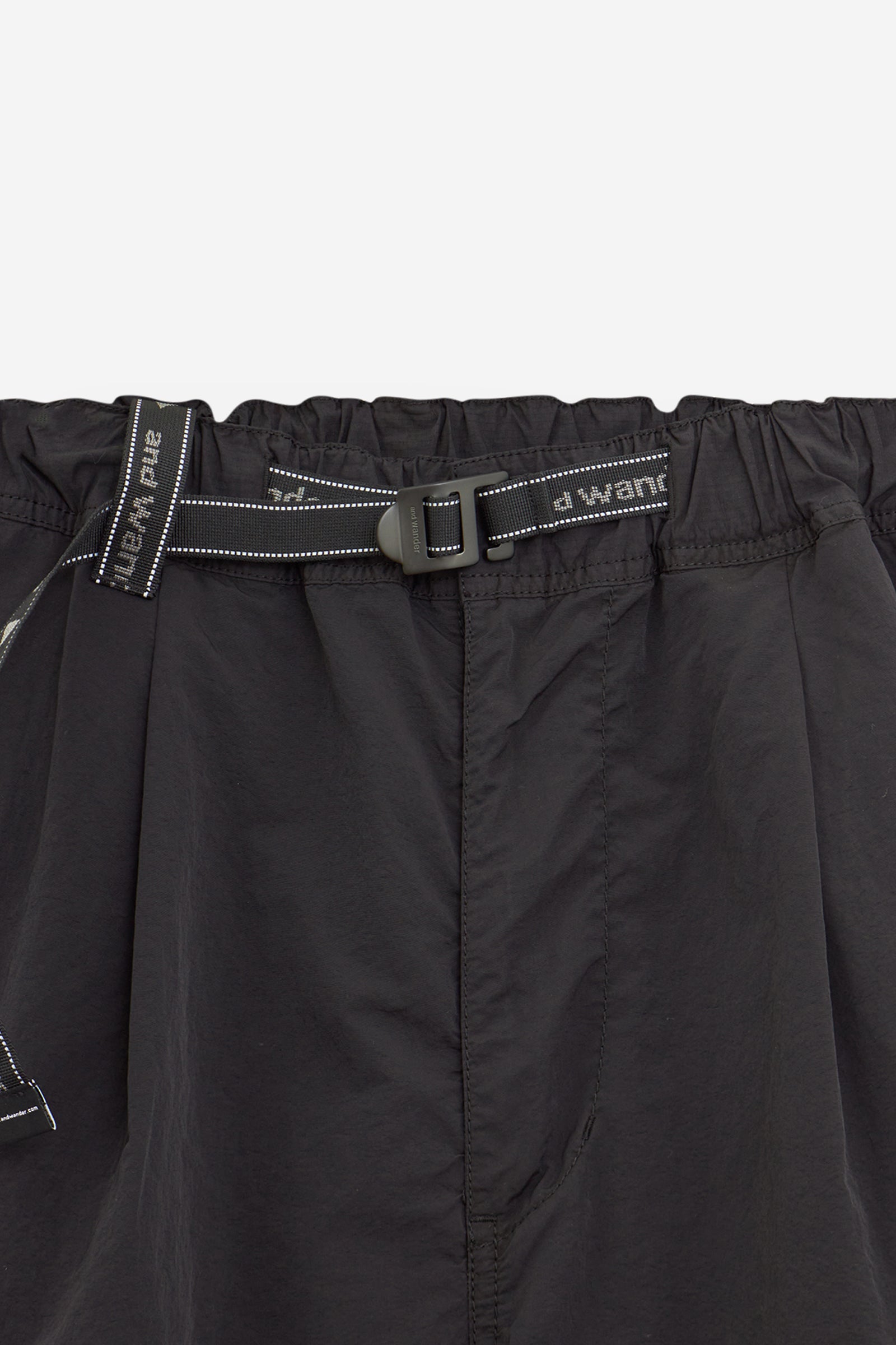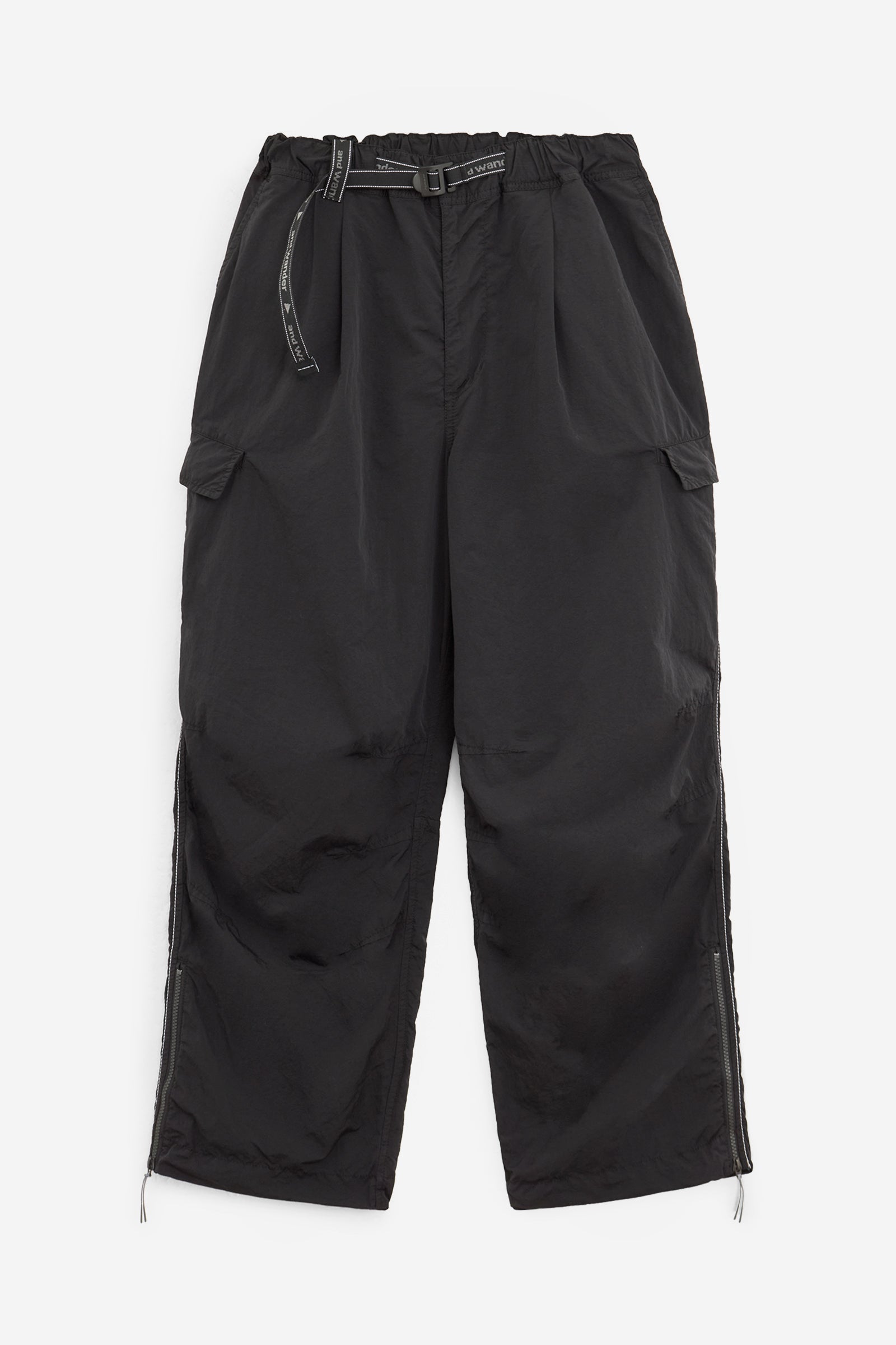 GARMENT DYED PANTS in Black Nylon, wide leg, belted model, side pockets, logo on the back