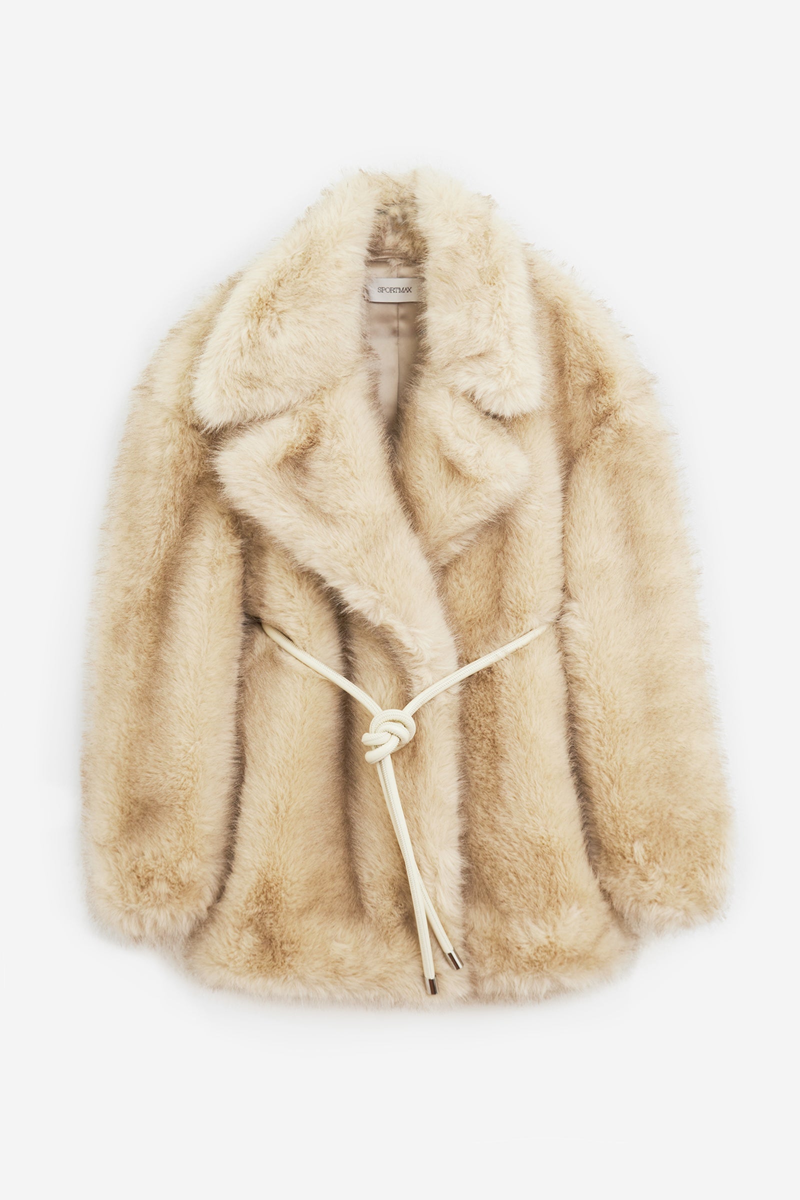 ROSARIA Beige Polyester Coat, classic lapels, belted model, long sleeves