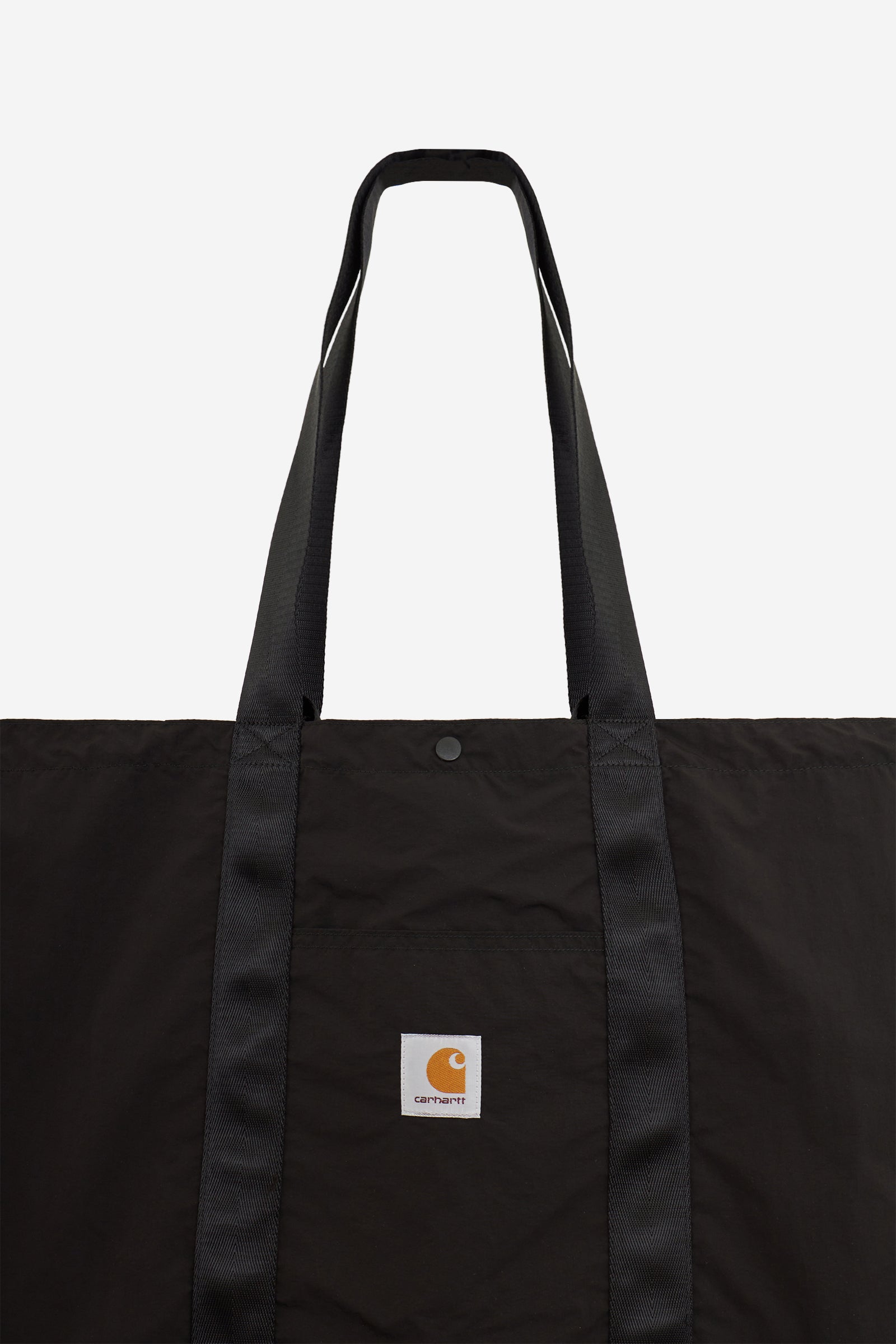 CANBY TOTE tote in black nylon, front logo application, button closure, shoulder strap