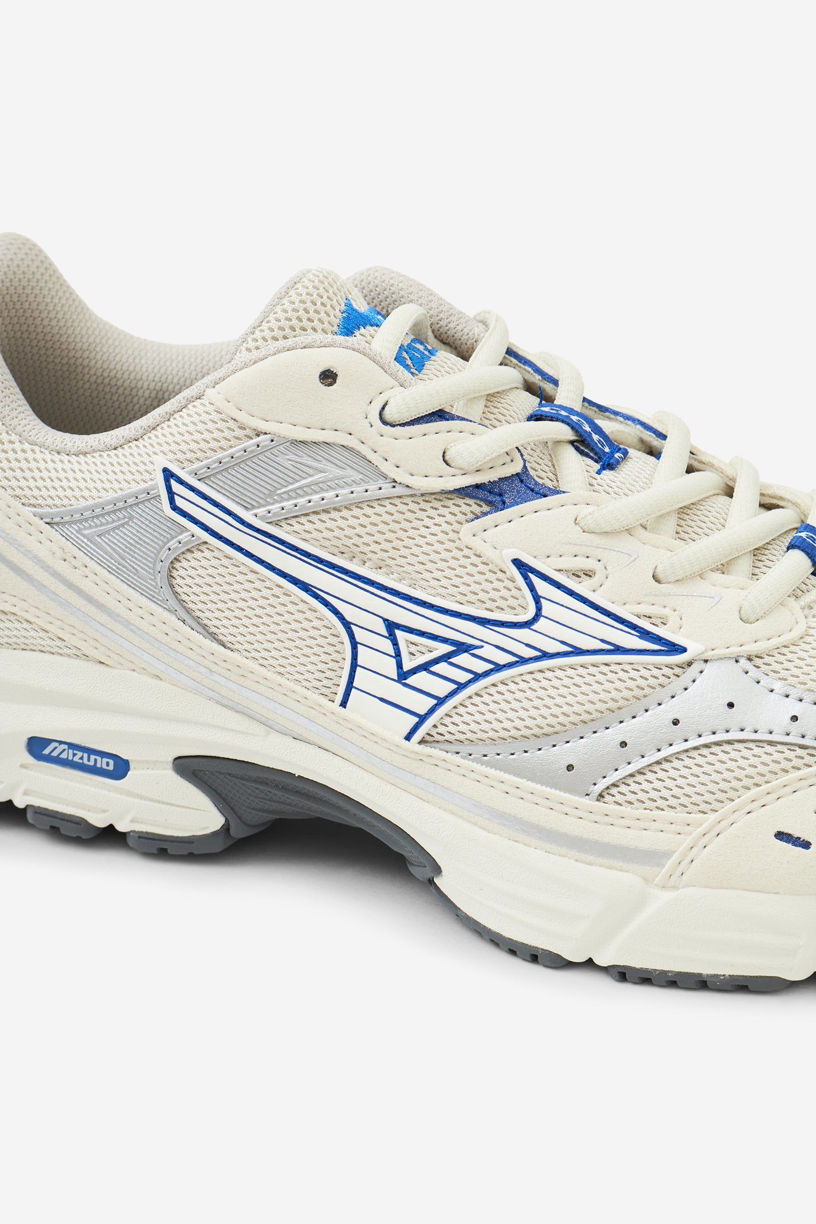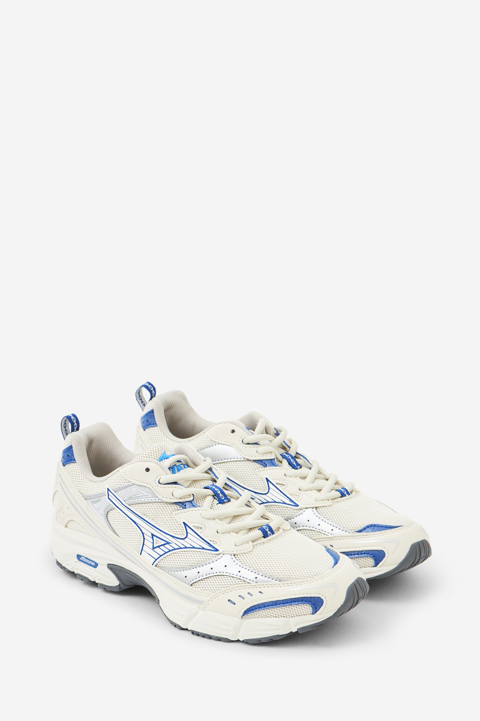 MXR sneakers in white leather and fabric, side logo, laces, rubber sole