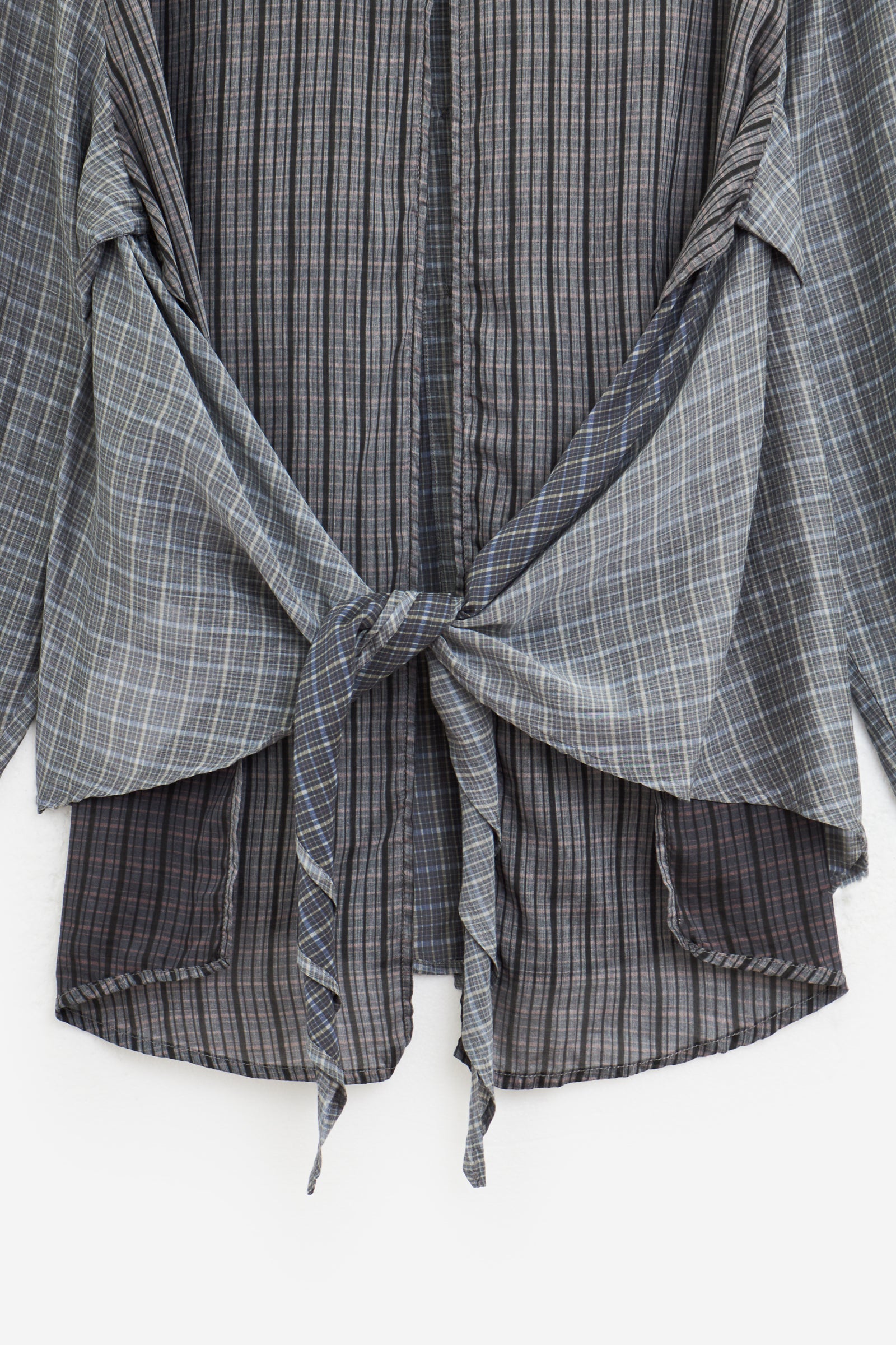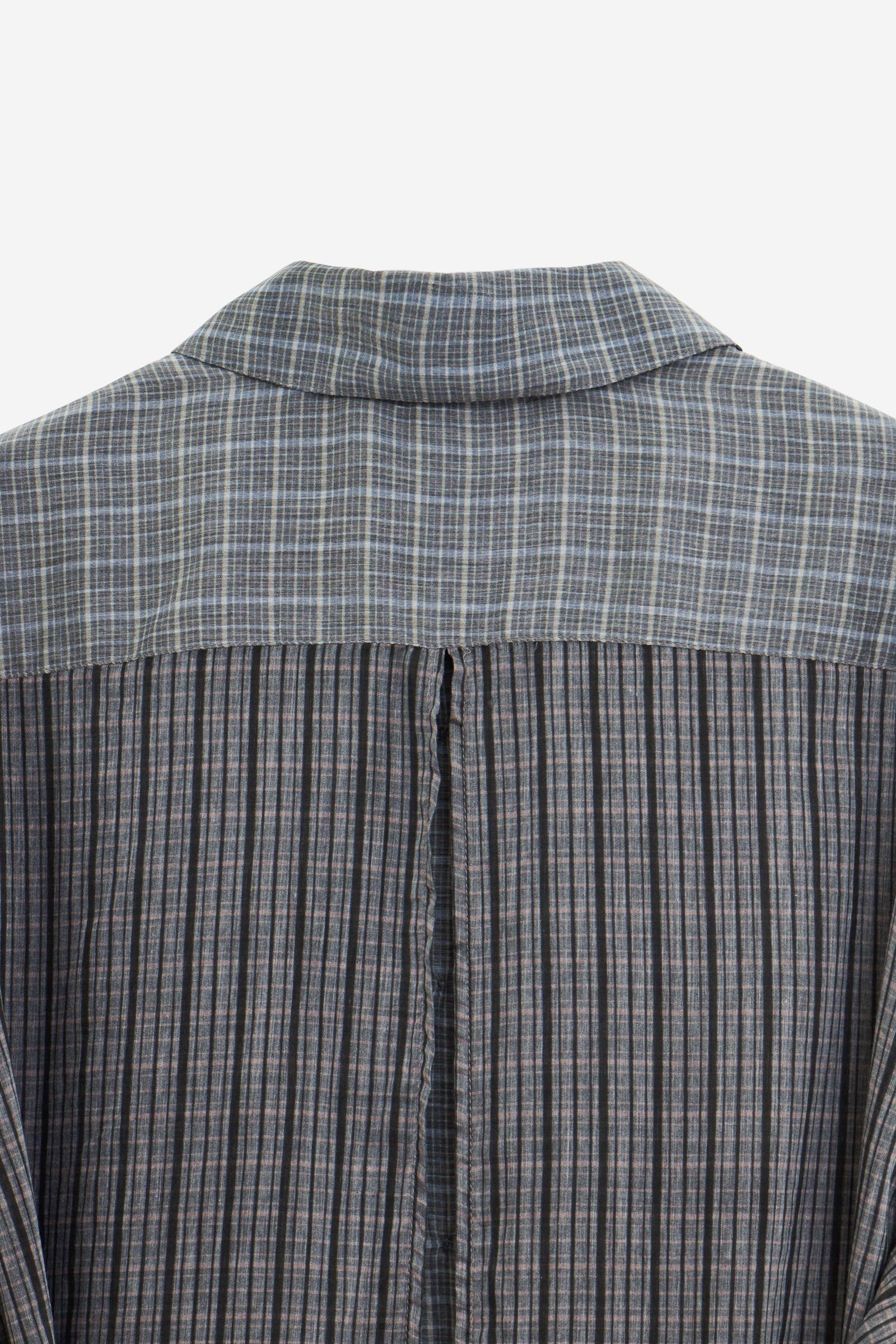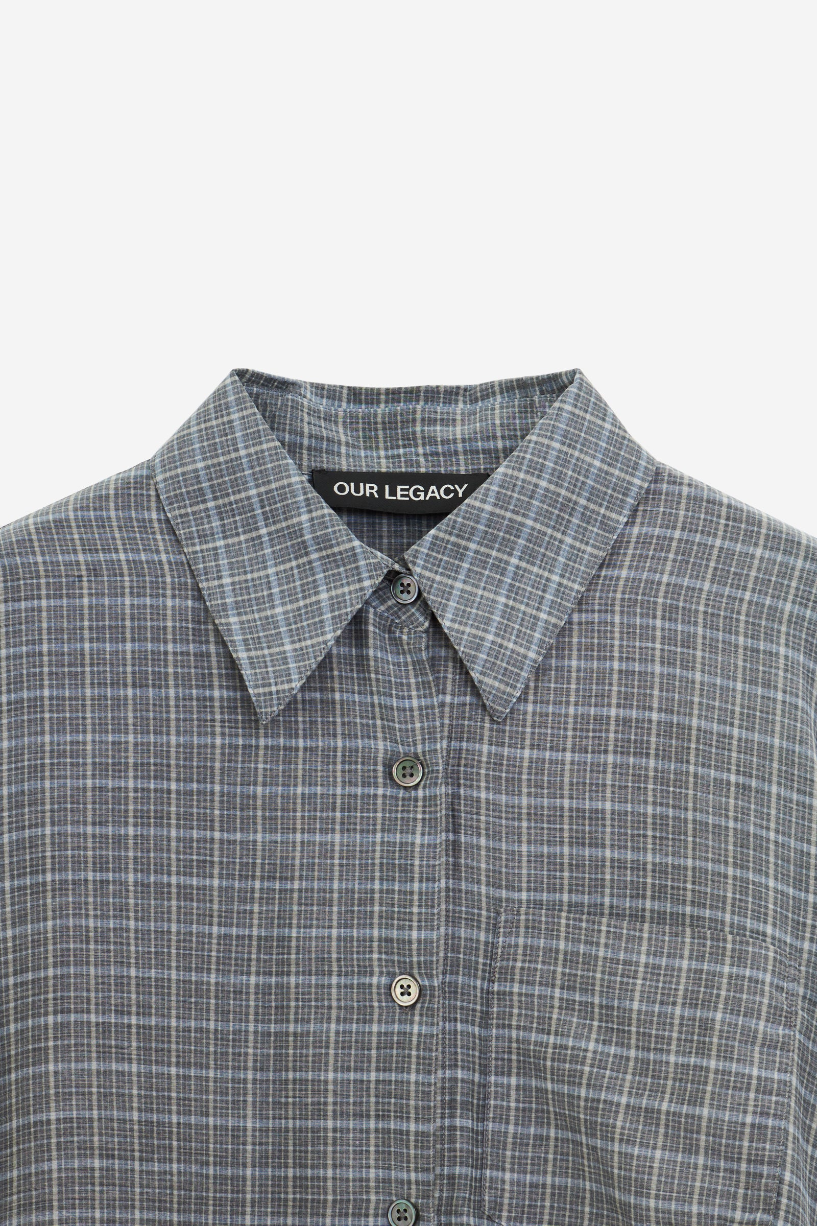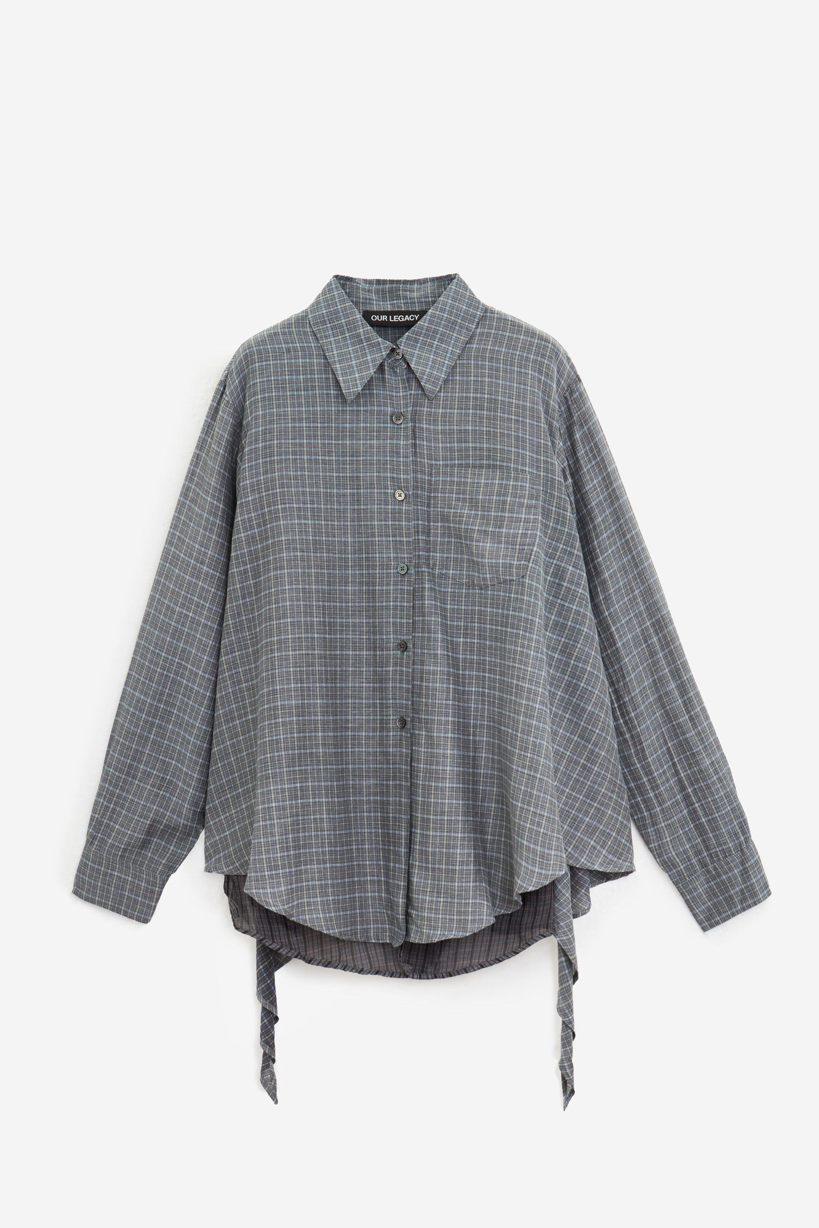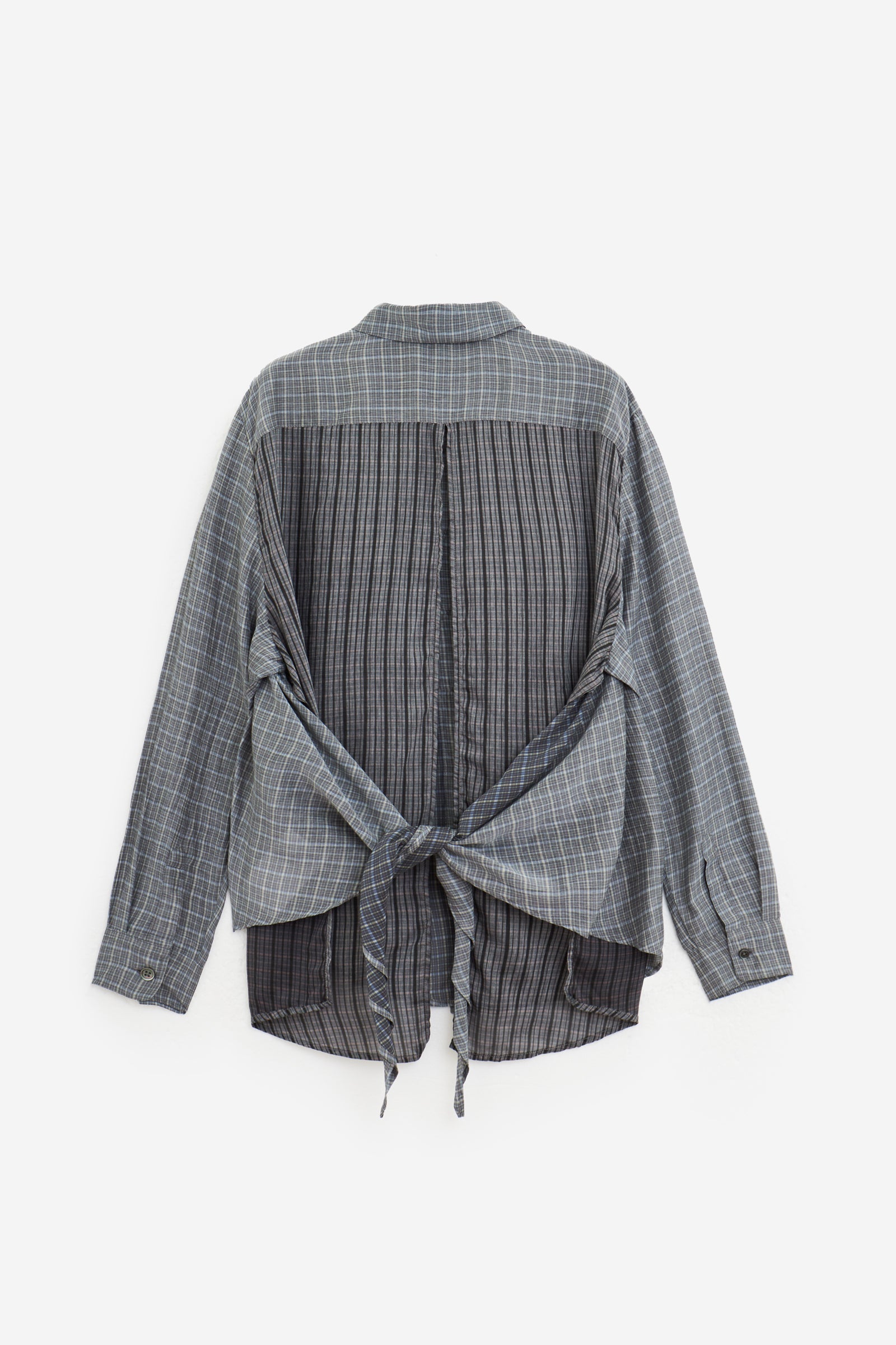 Light Blue Cotton APRON Shirt, classic collar, chest pocket, front buttoning, curved hem, buttoned cuffs, keyhole opening on the back