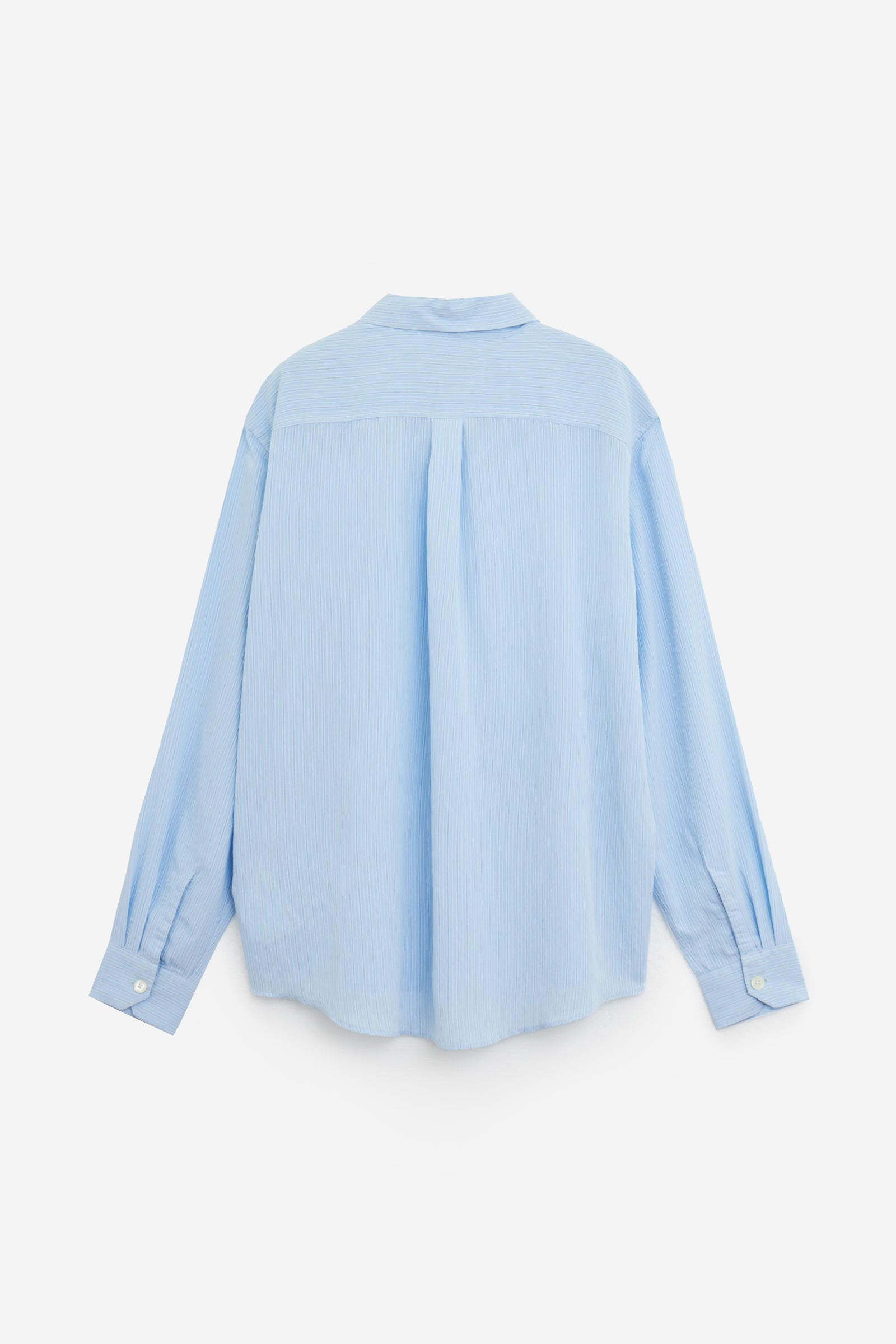 BEYOND viscose shirt in light blue, curved hem, front button fastening, long sleeves, classic collar