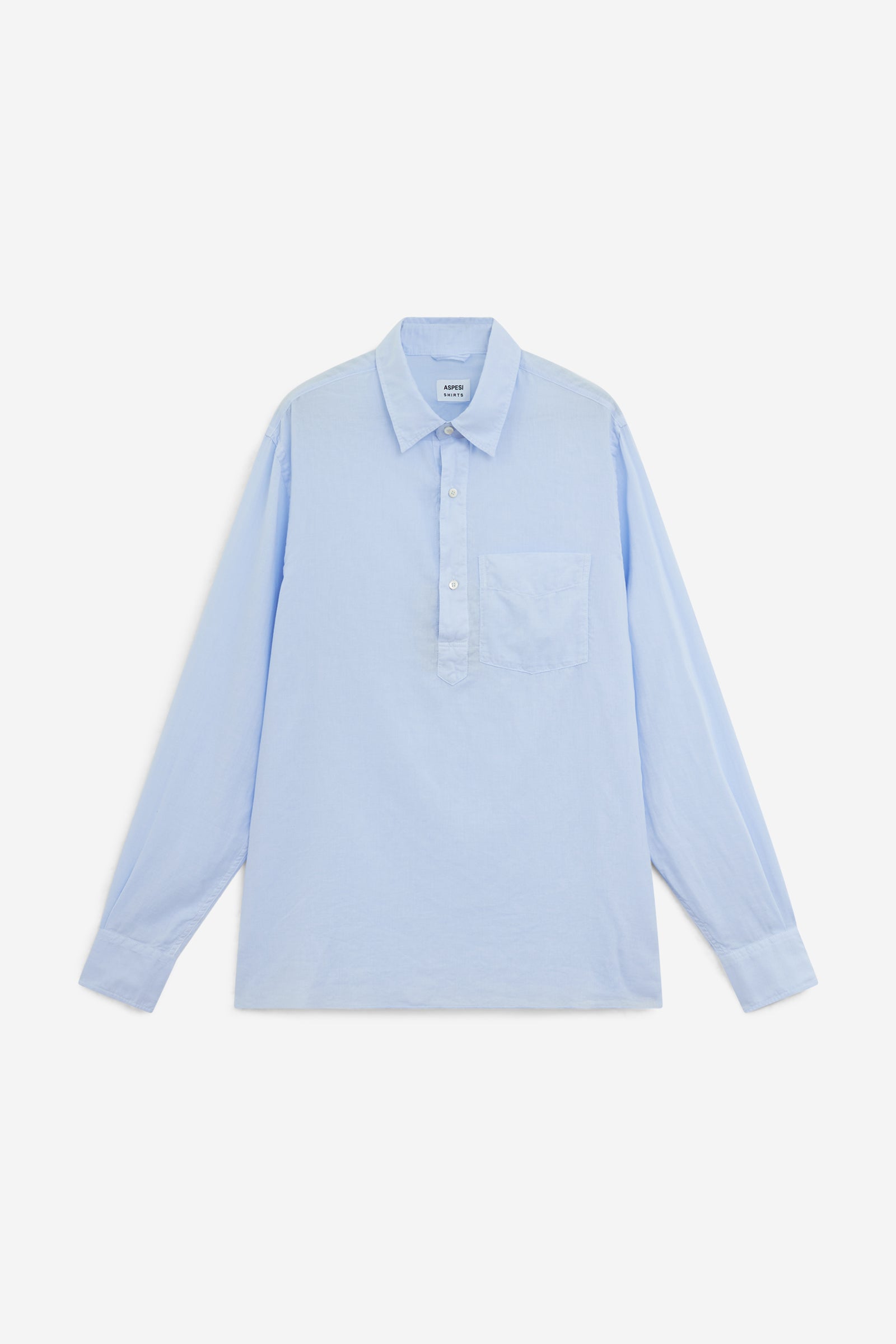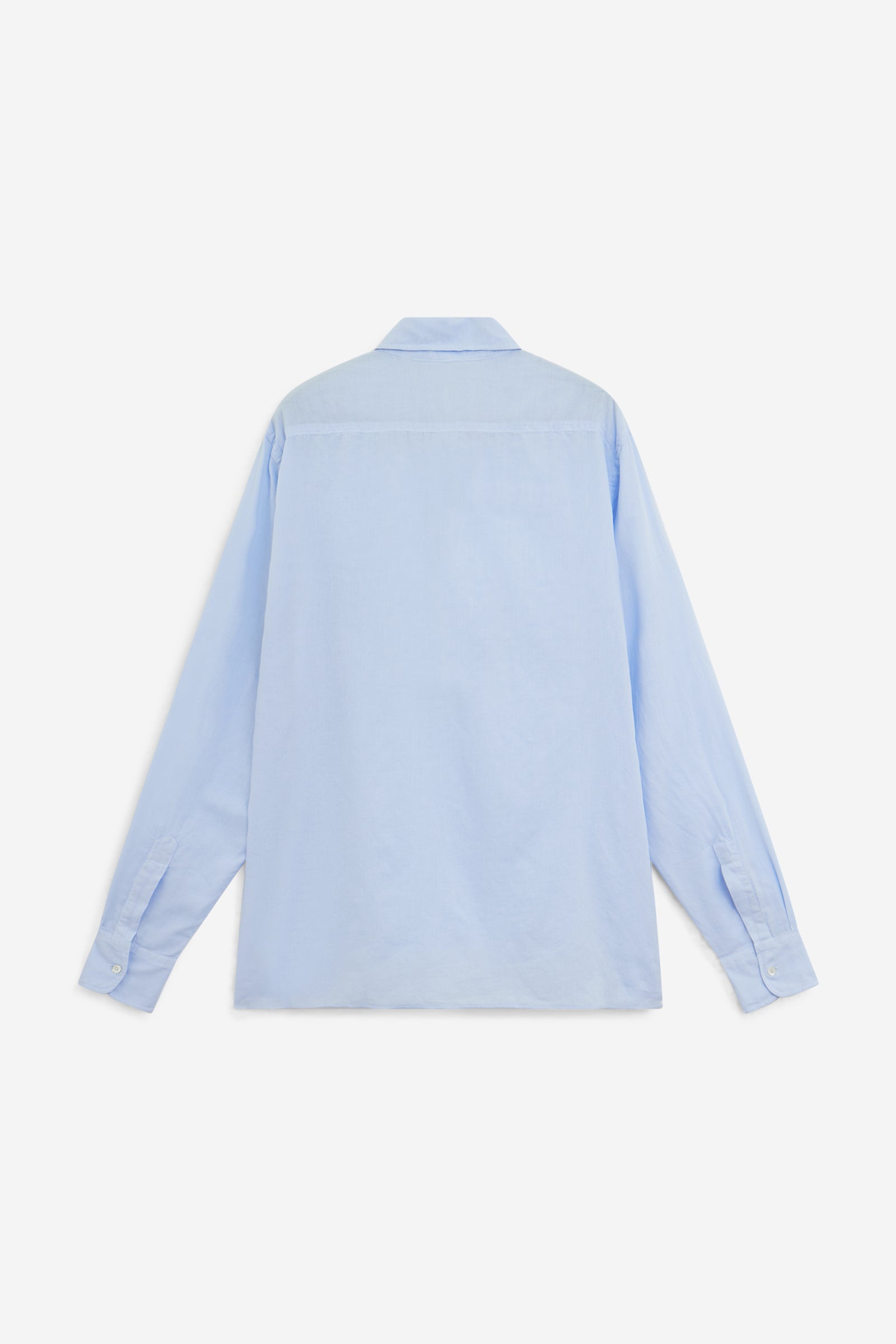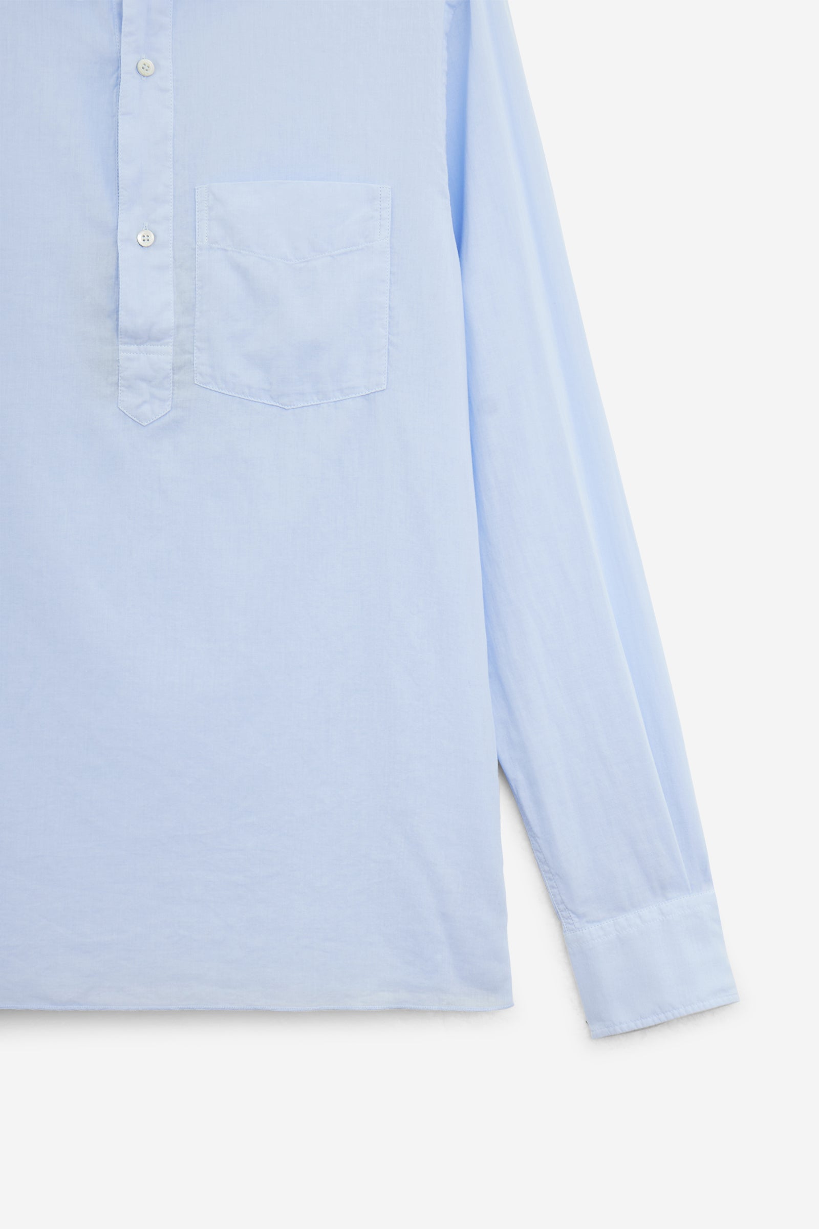 Camicia in popeline di puro cotone. Presenta collo con stecche e taschino sul petto. Vestibilità asciutta.