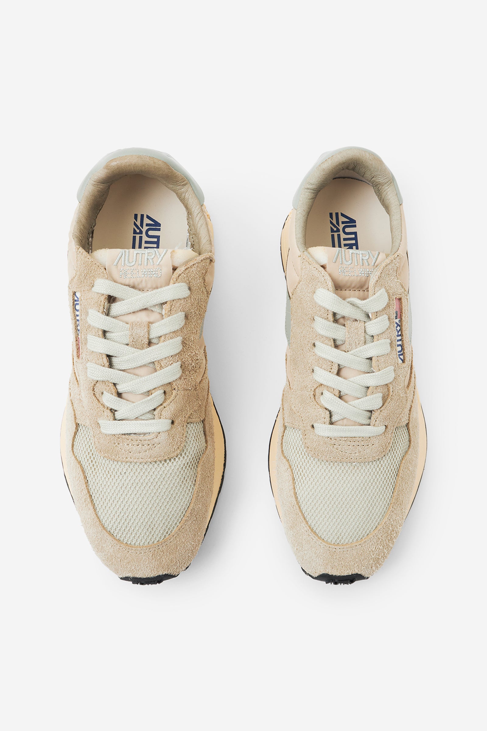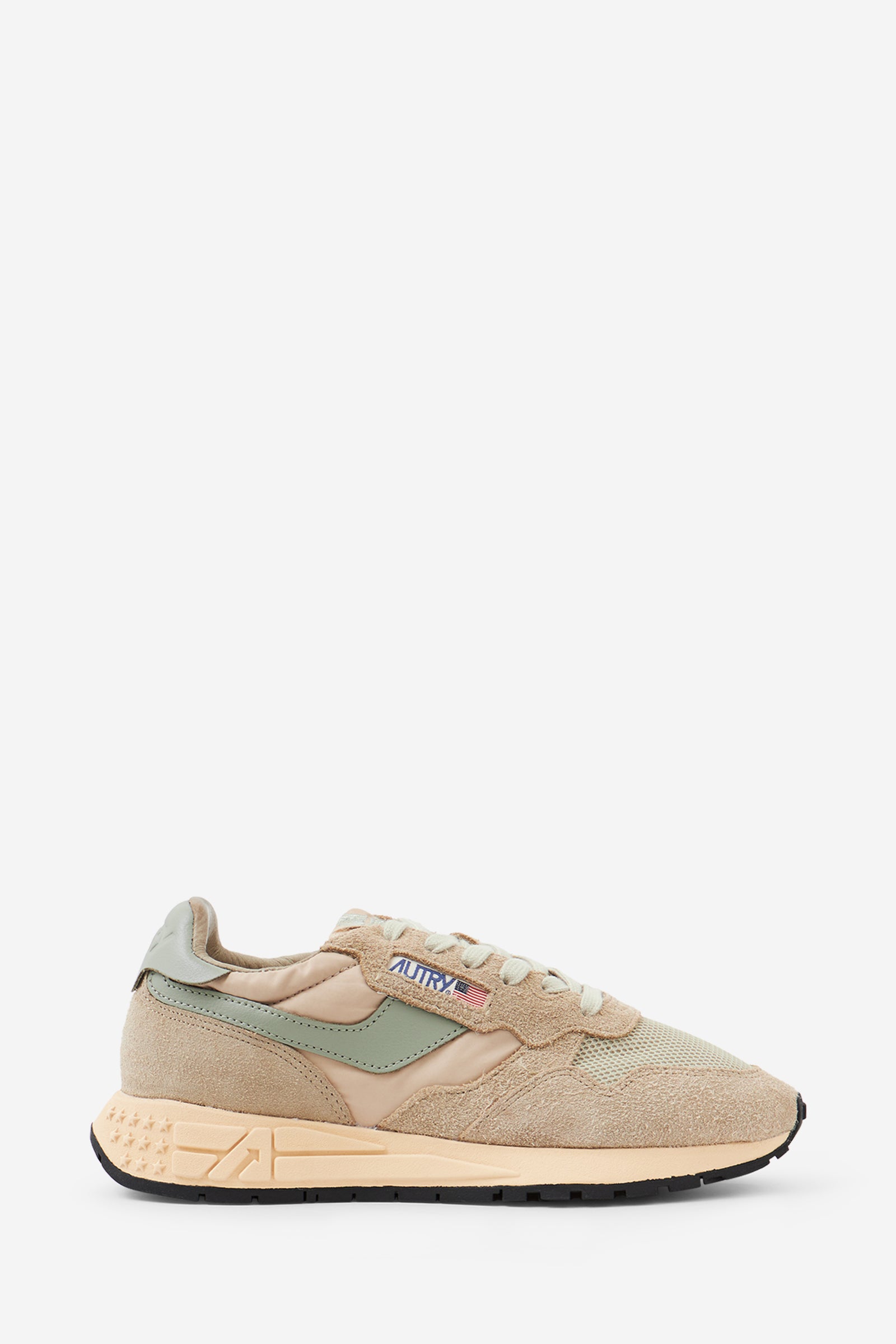 Le sneakers Reelwind combinano il caratteristico stile di Autry con elementi ispirati al mondo del running. Definite da una silhouette slanciata e un design rétro anni ’80, offrono leggerezza, flessibilità e grip ottimale. Il modello è realizzato in un mix di nylon e suede con l'applicazione sui lati in pelle. La suola in gomma con battistrada a rilievo personalizzata con il motivo a stelle e l'A che richiama il logo.