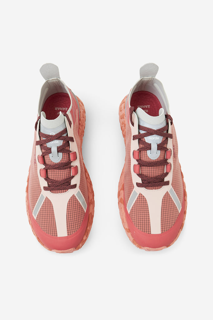 THE 001 M sneakers in pink nylon, laces, side logo, vibram sole