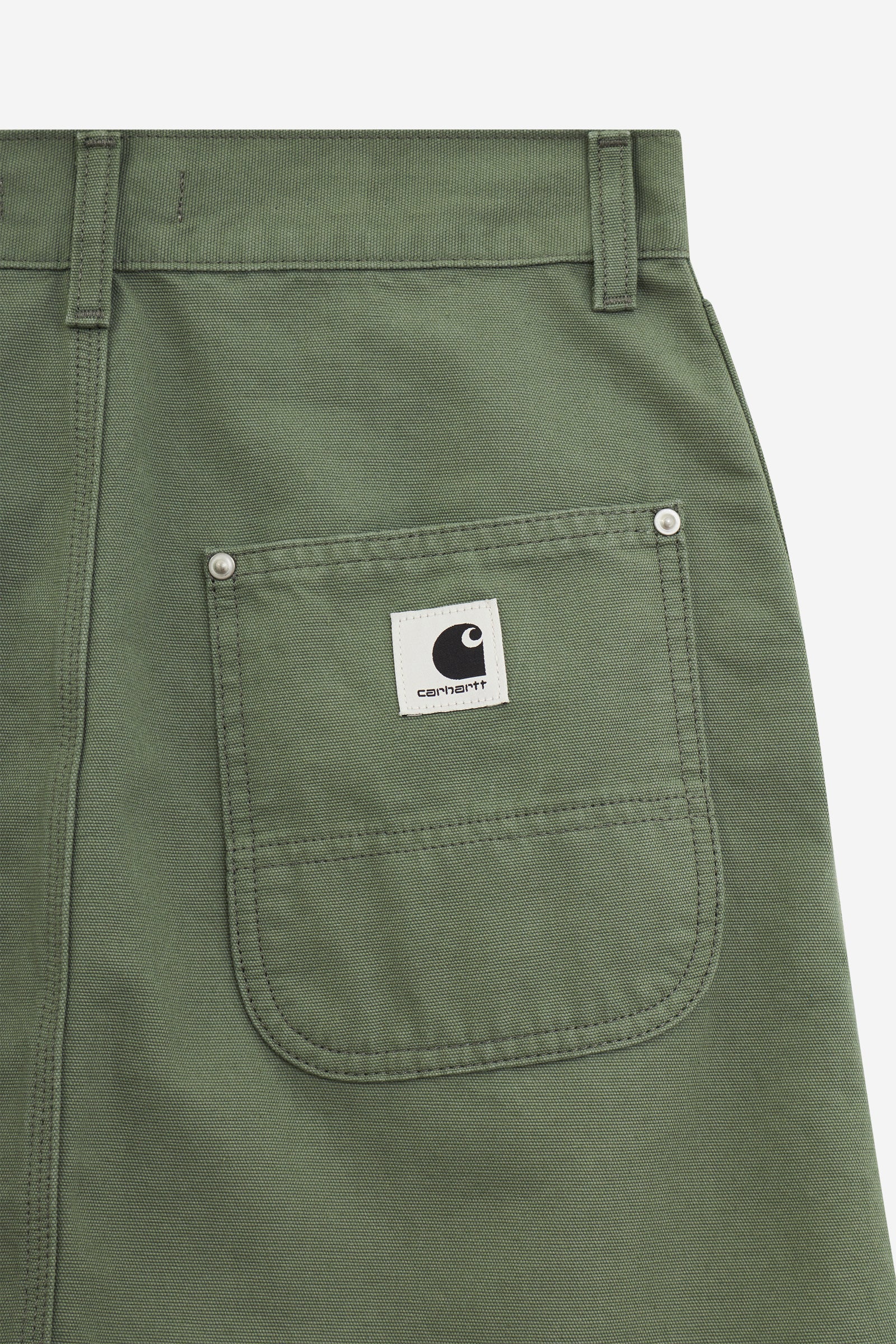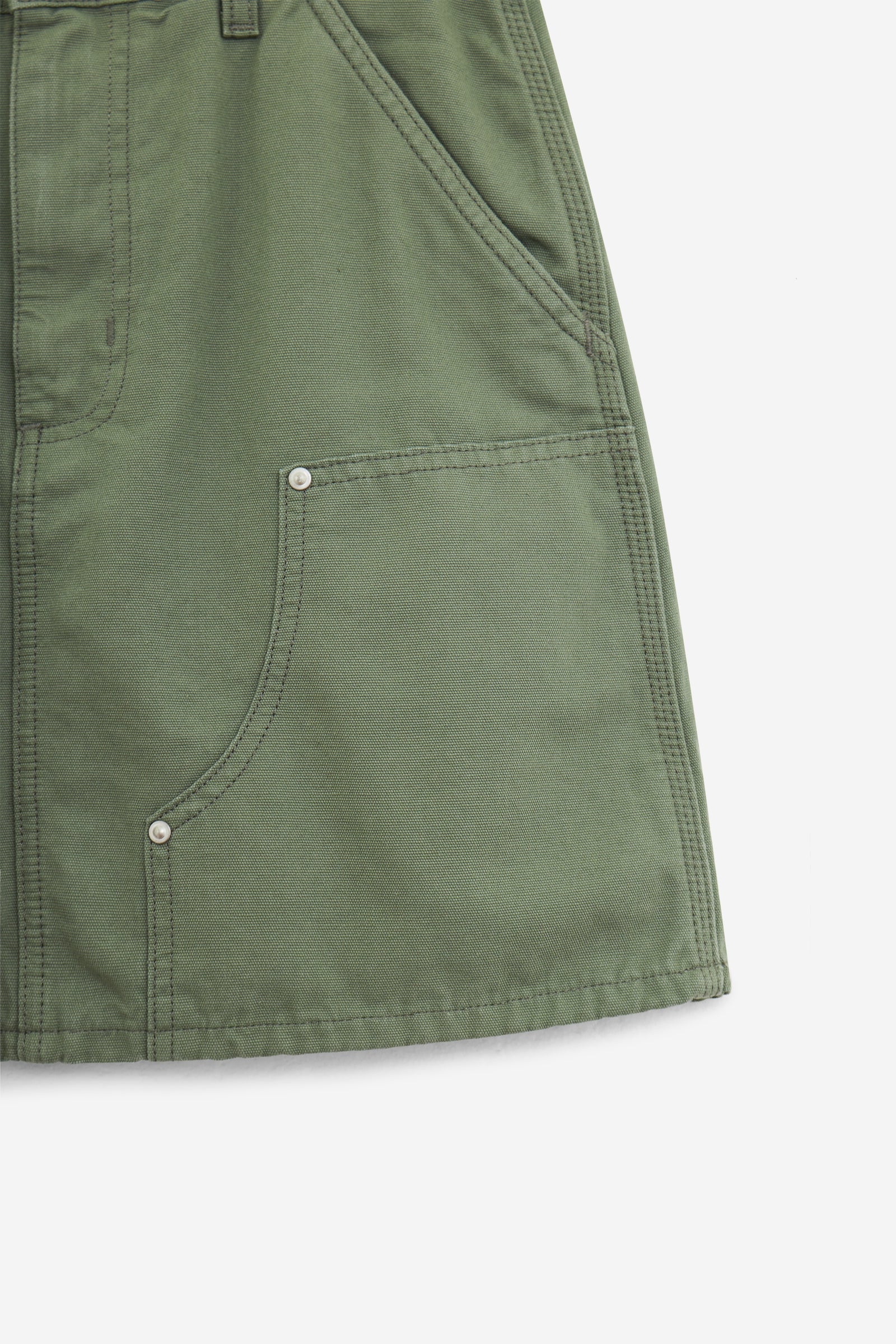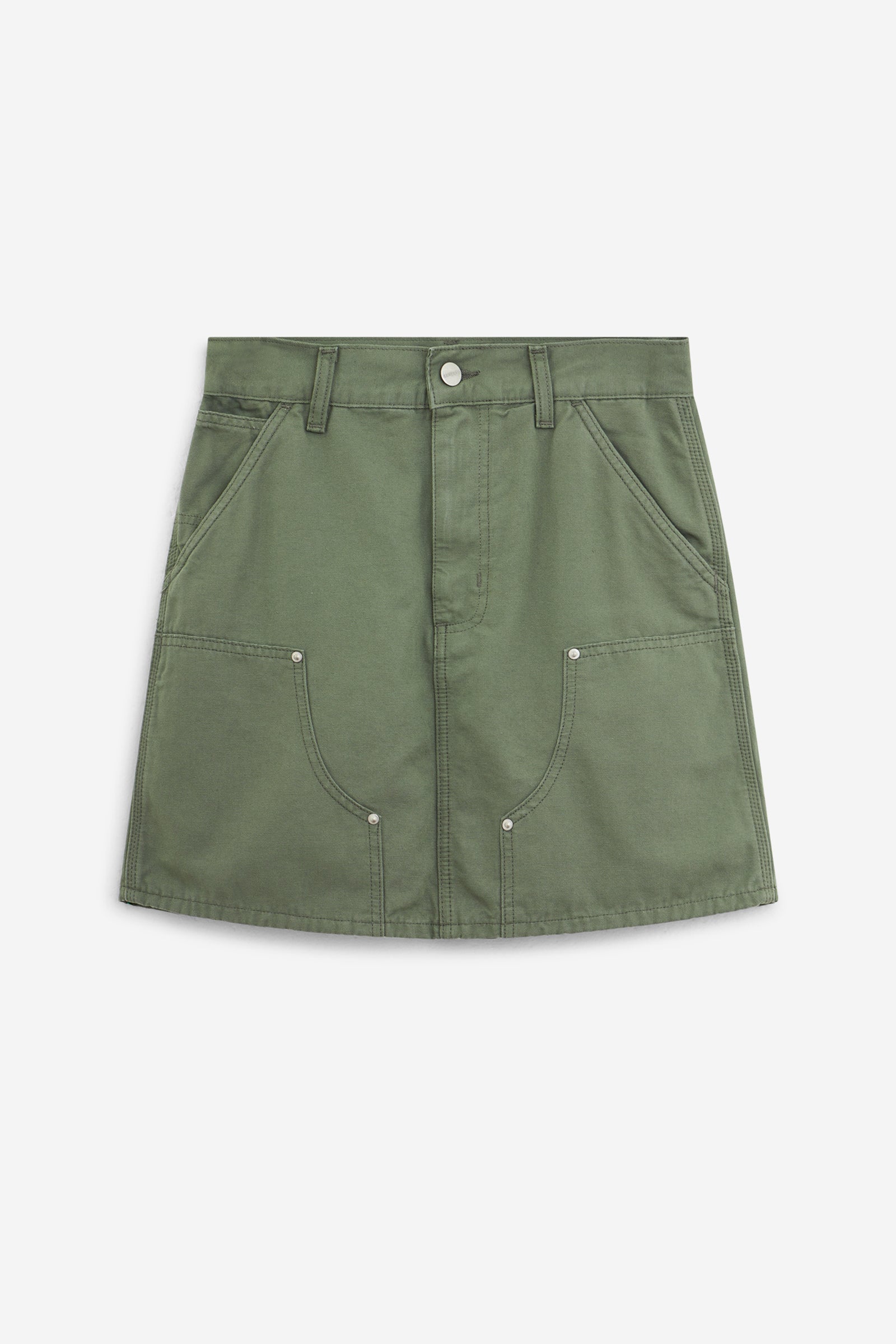 W MAEVE DB KNEE skirt in green cotton, button closure, belt loops, front pockets, short design, back pockets, logo on the back