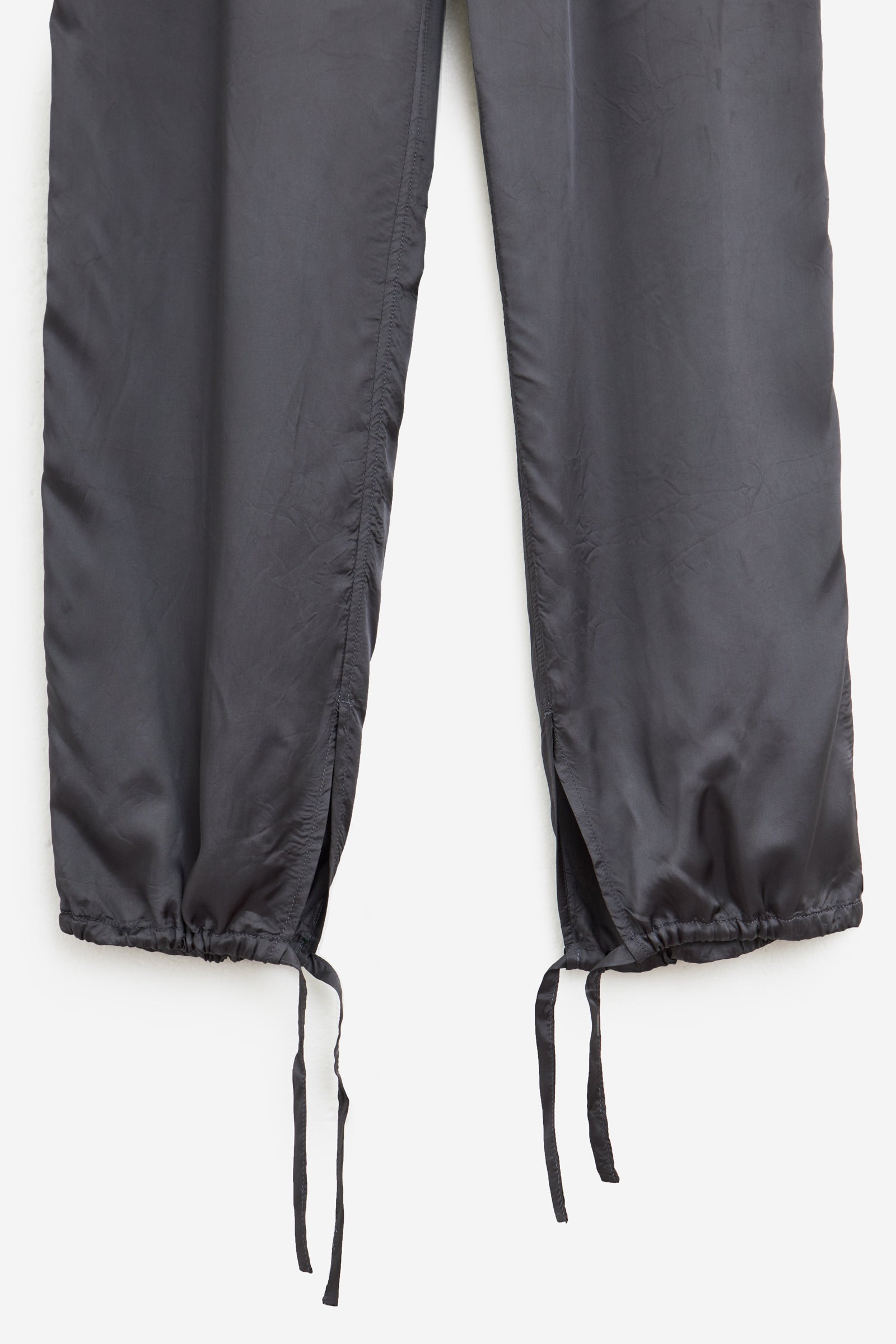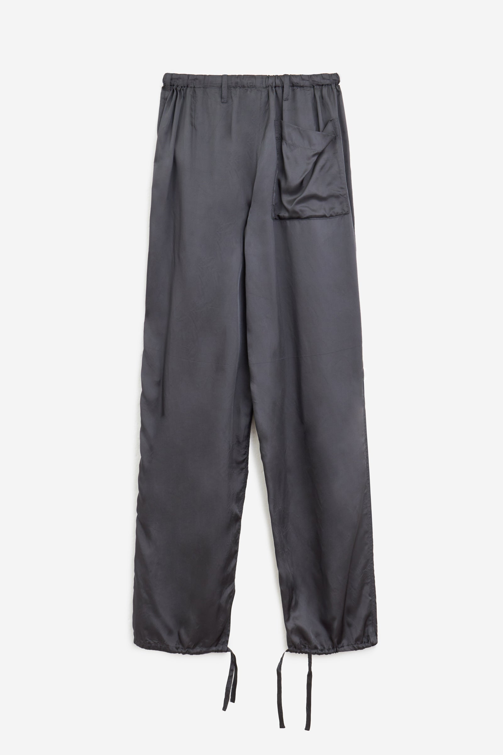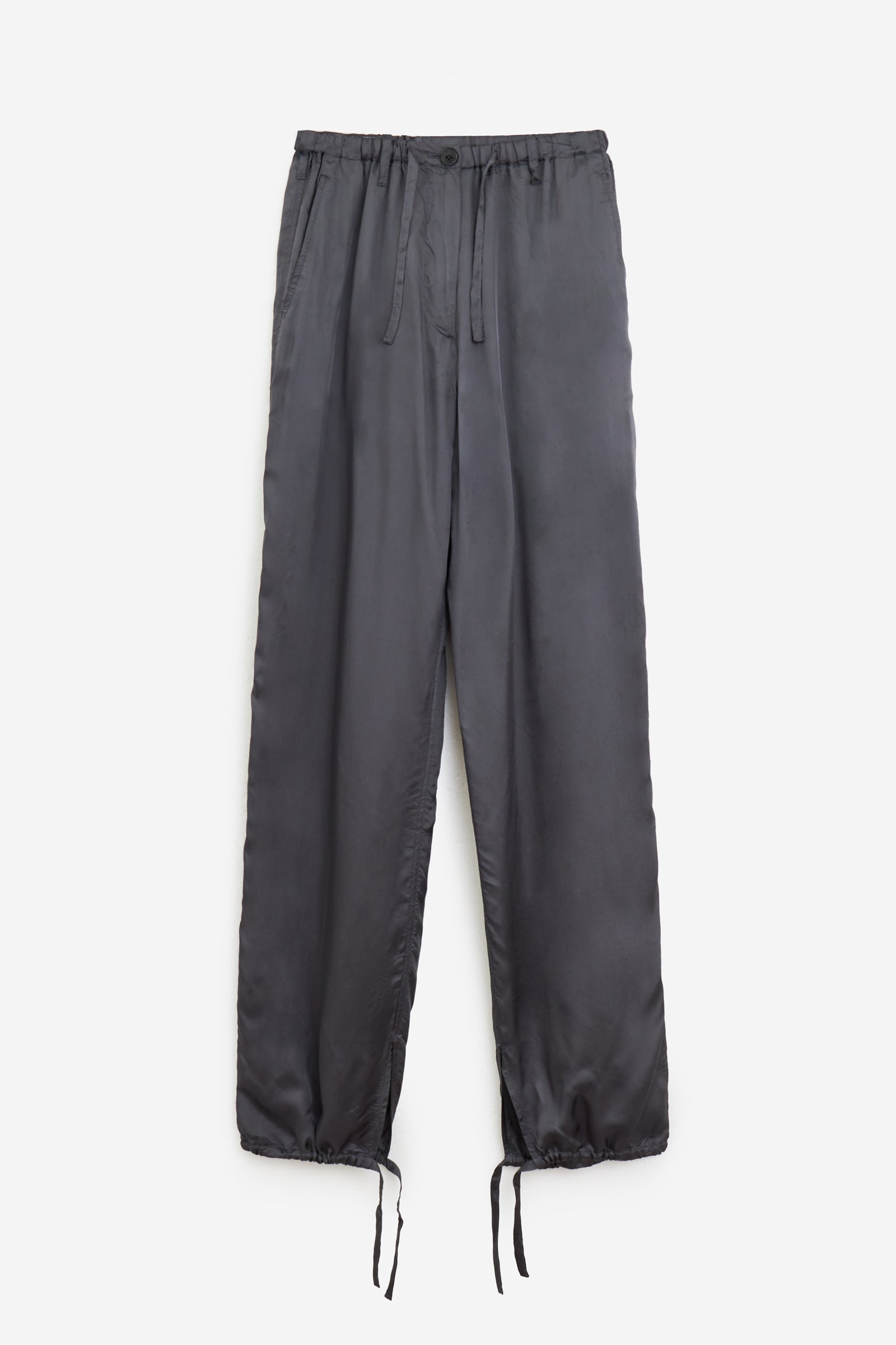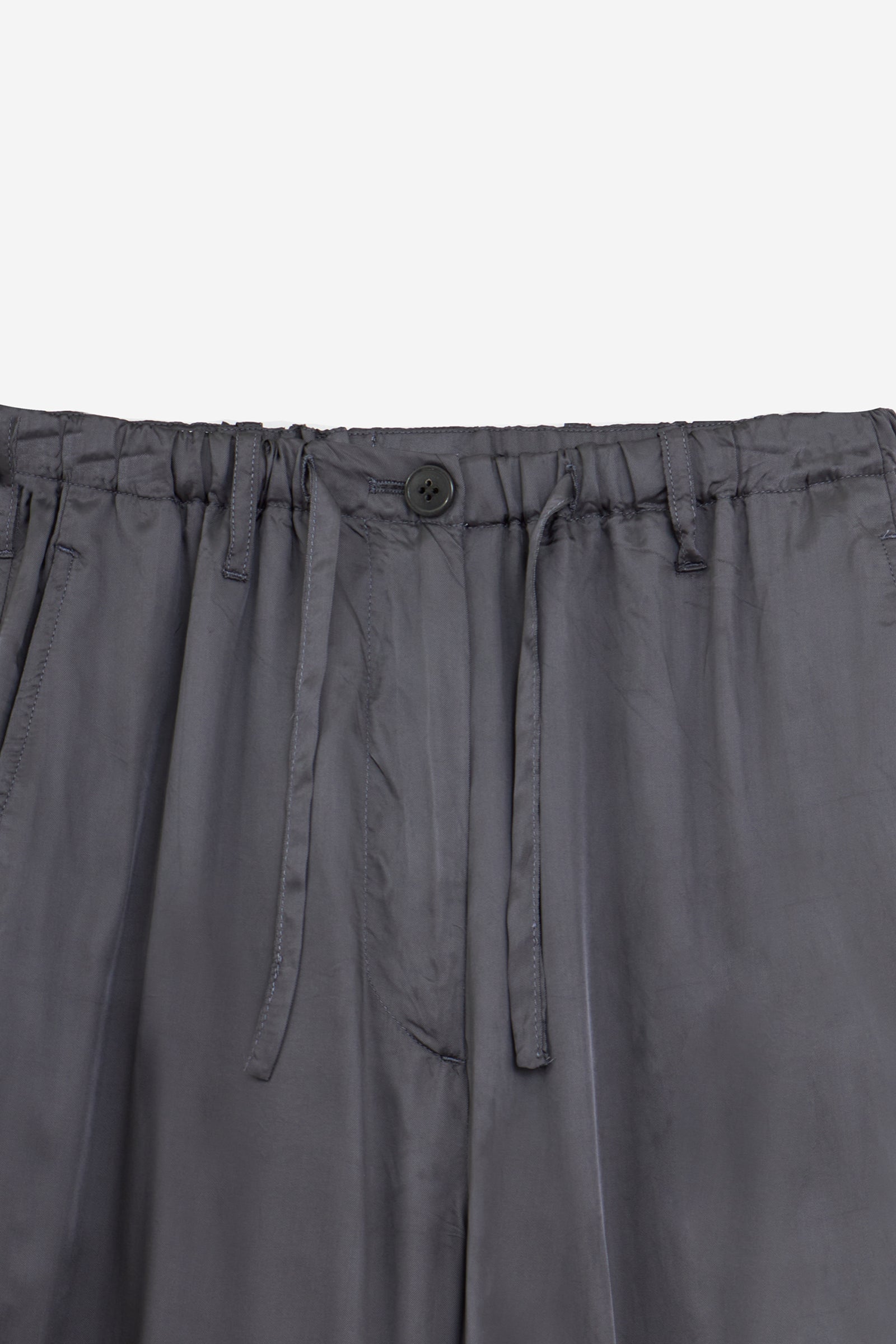 PENRA trousers in anthracite cotton, elasticated waist, belt loops, button fastening, front pockets, back pocket