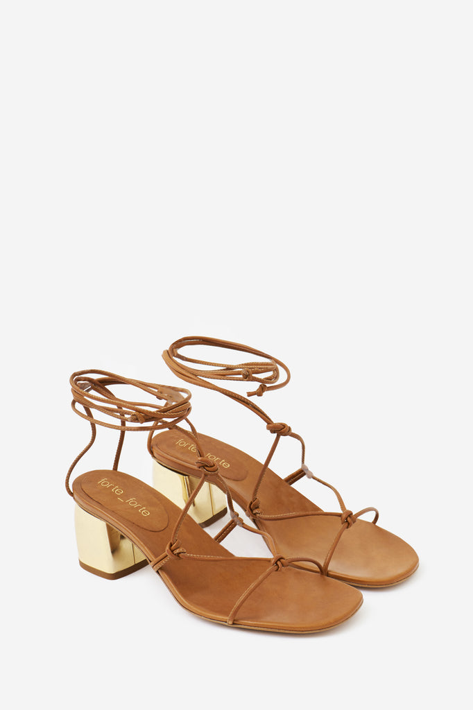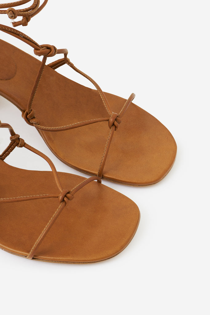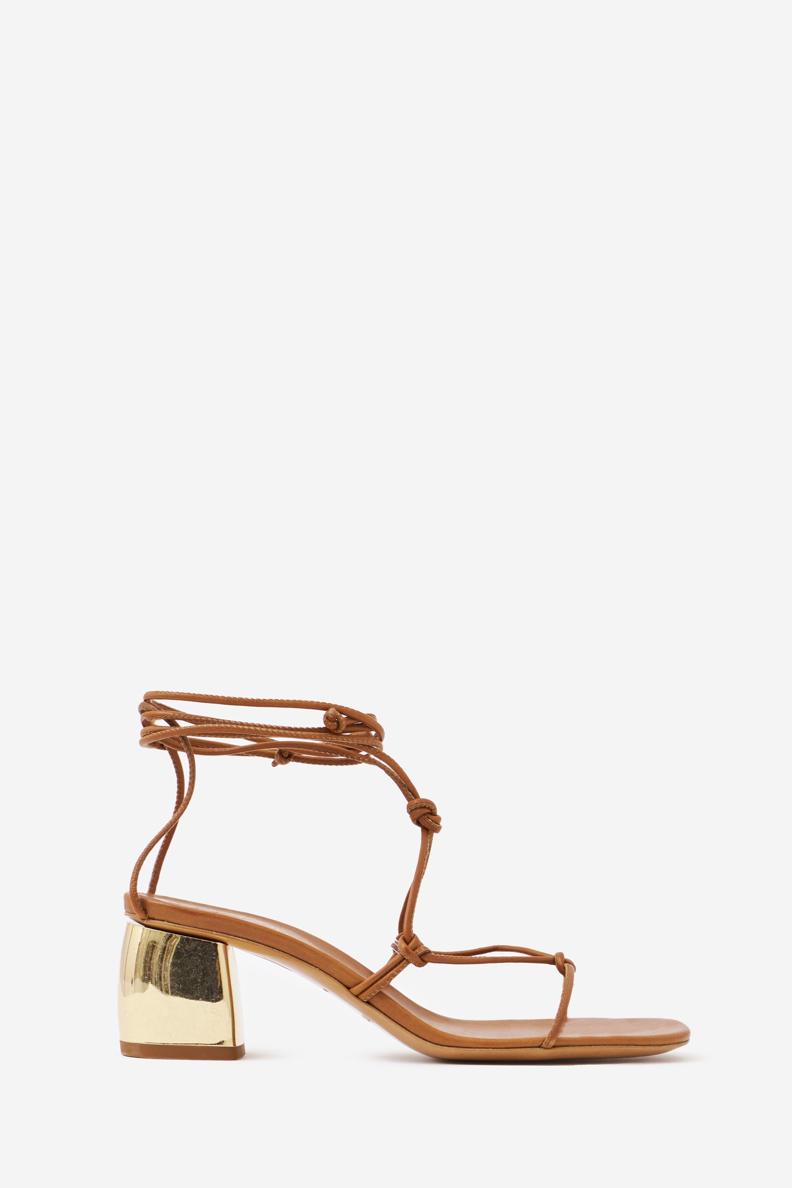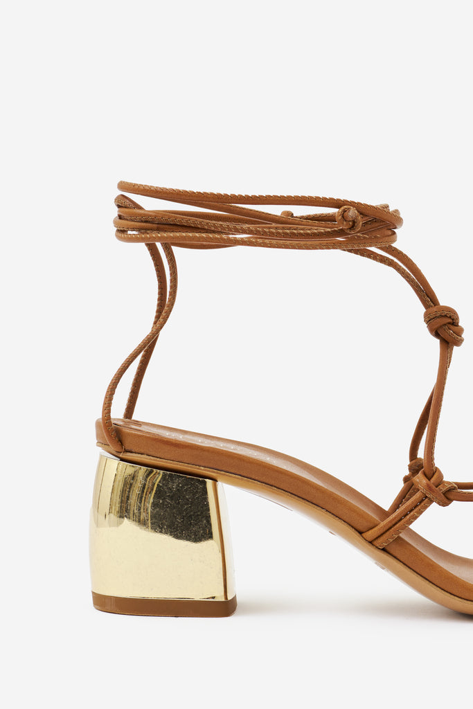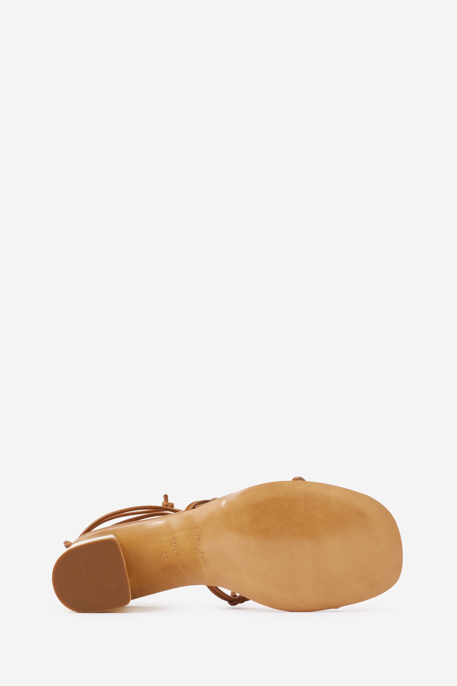 Leather Sandals Natural leather, heel, front opening, laces, logo on the sole
