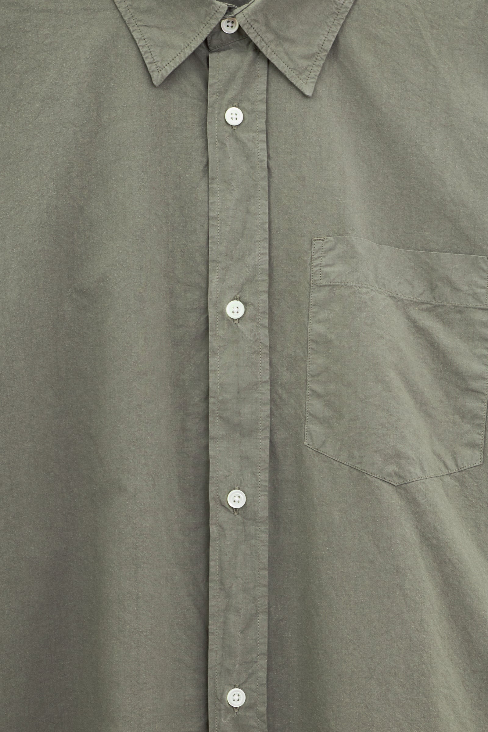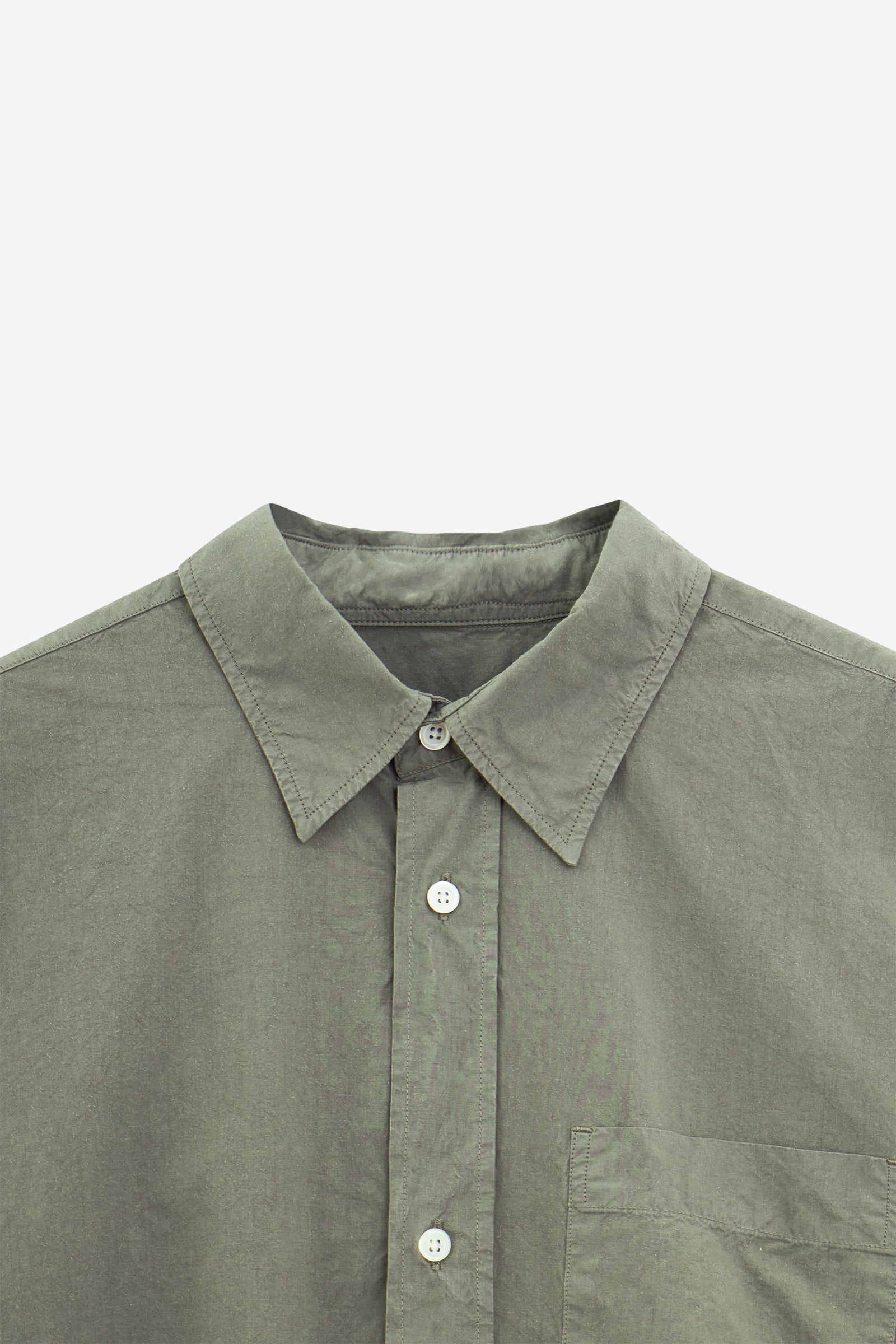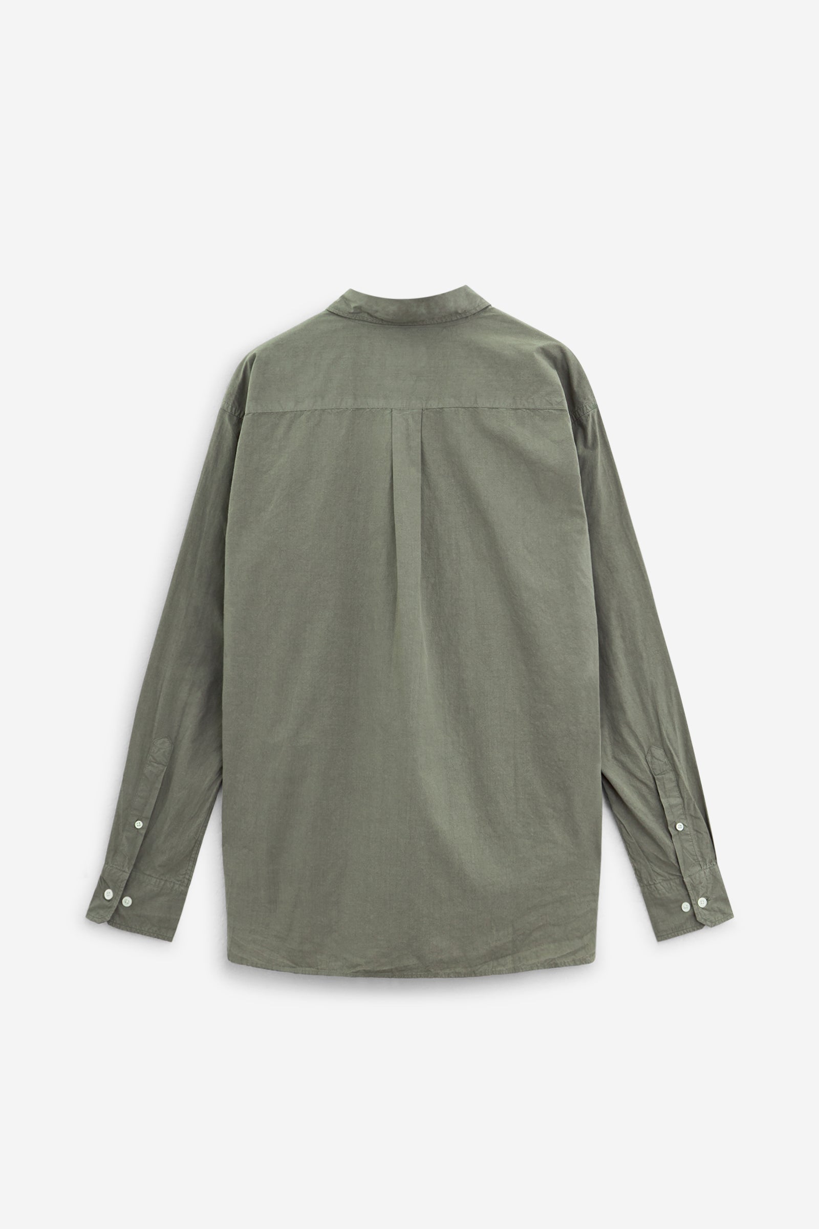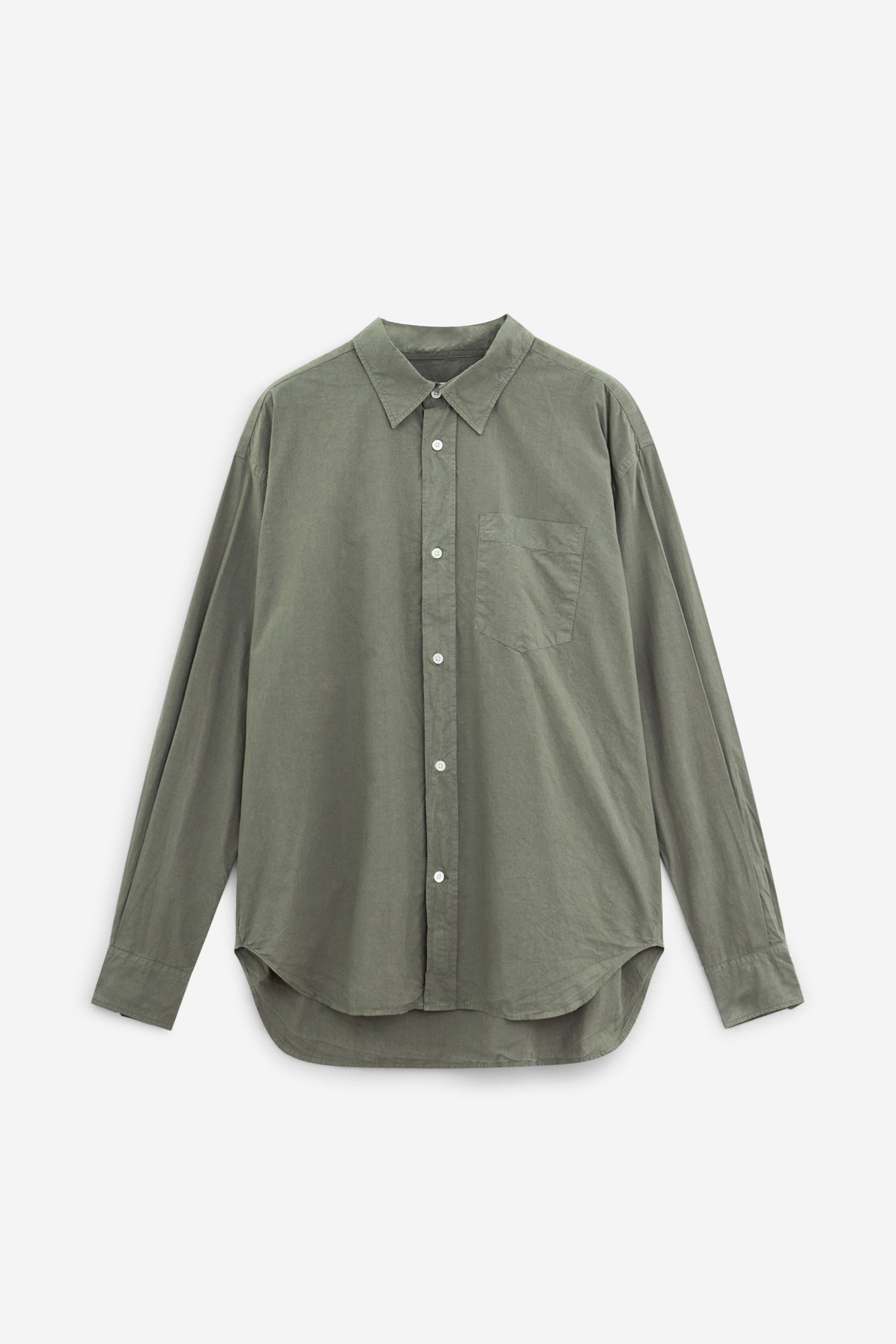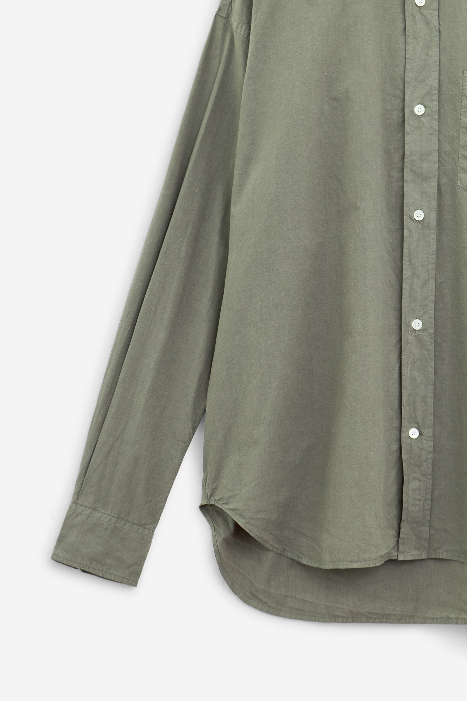 Khaki Cotton TENCEL Shirt, button-front, classic collar, curved hem, long sleeves, buttoned cuffs