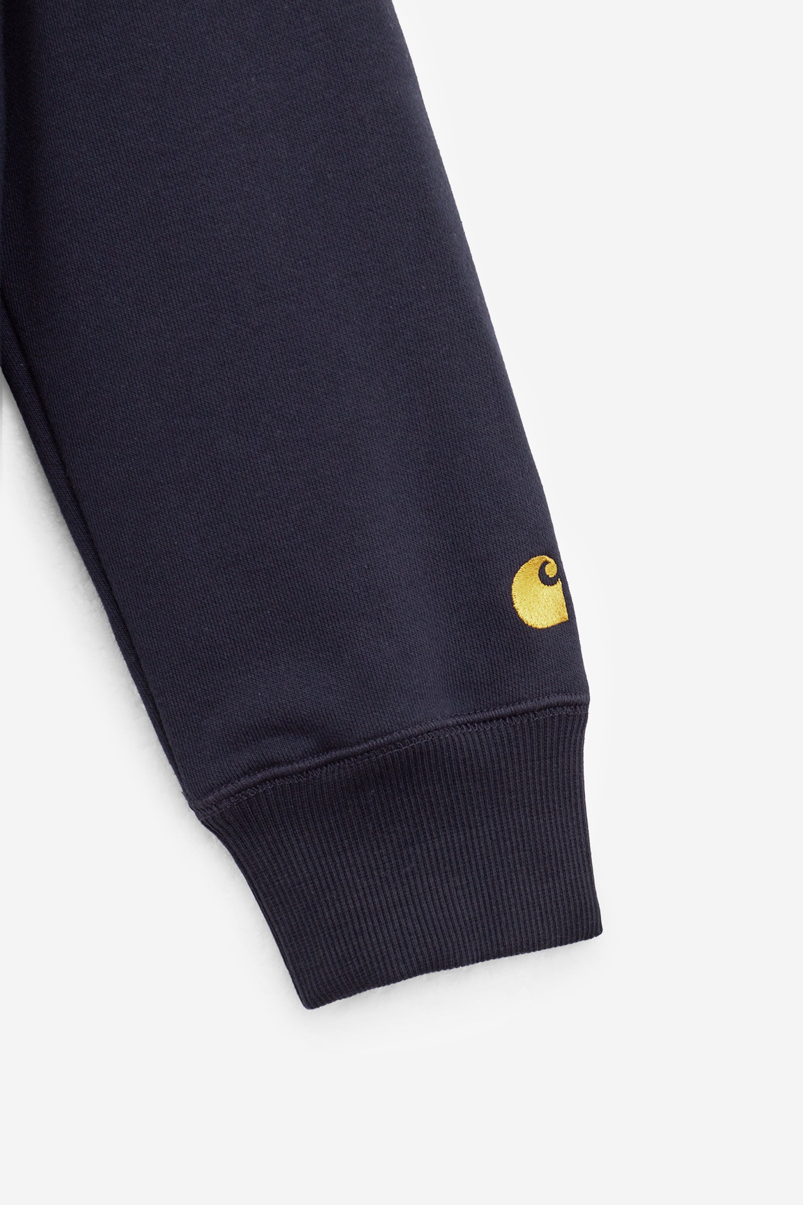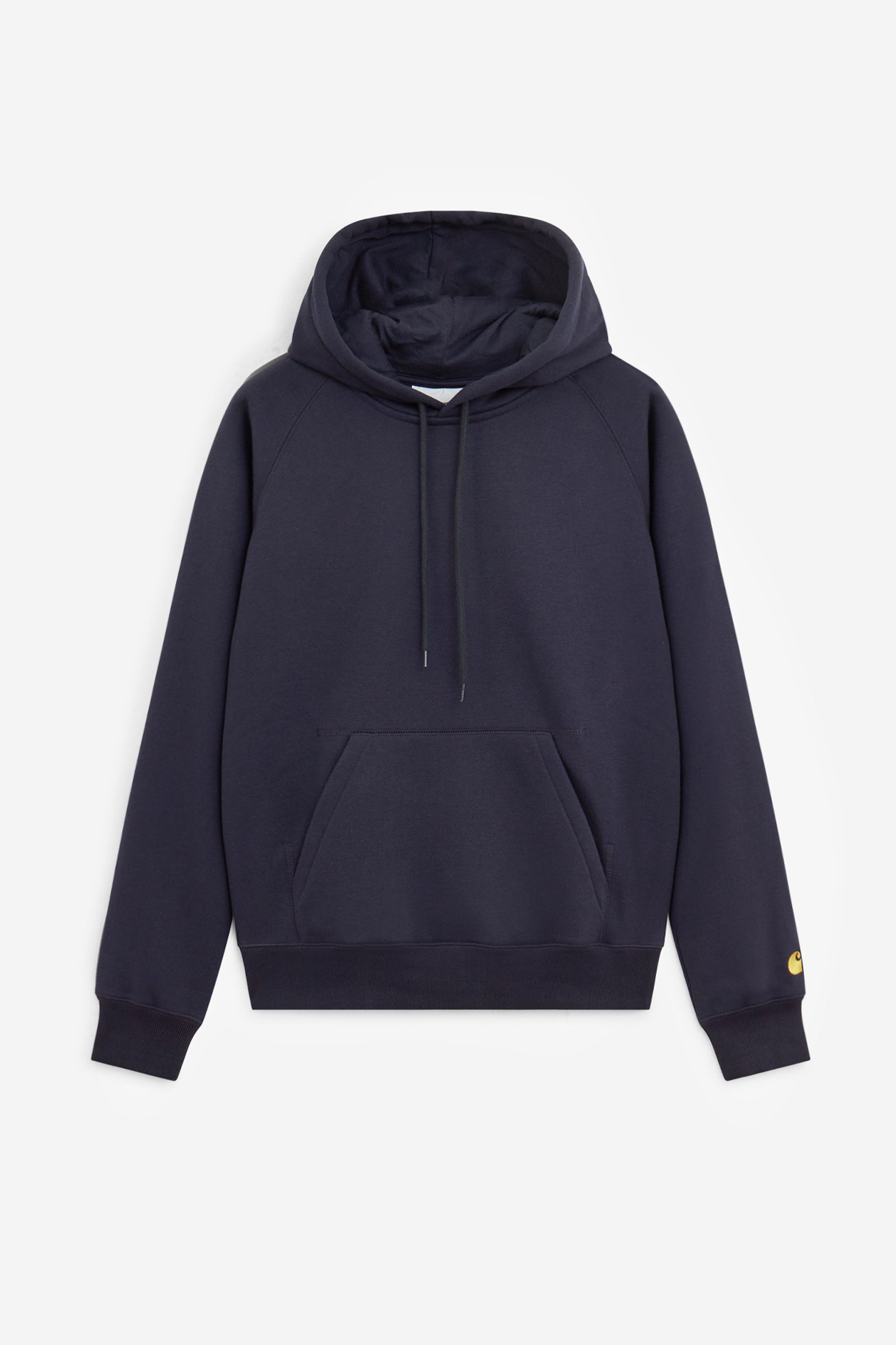 Felpa CHASE HOODED in Cotone Dark Navy, cappuccio regolabile, logo sulla manica, tasche frontali, orlo dritto