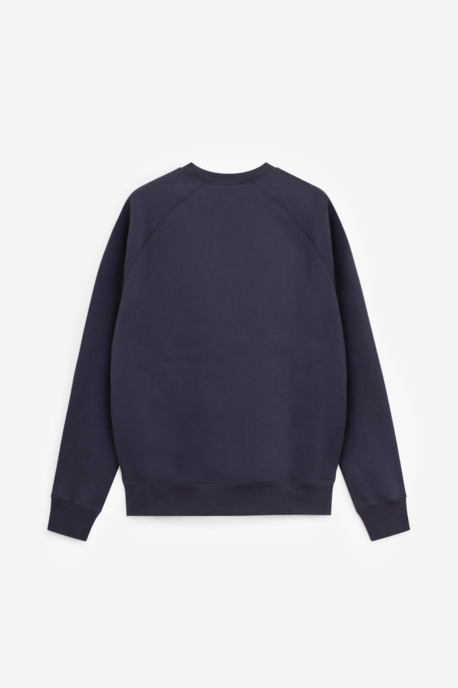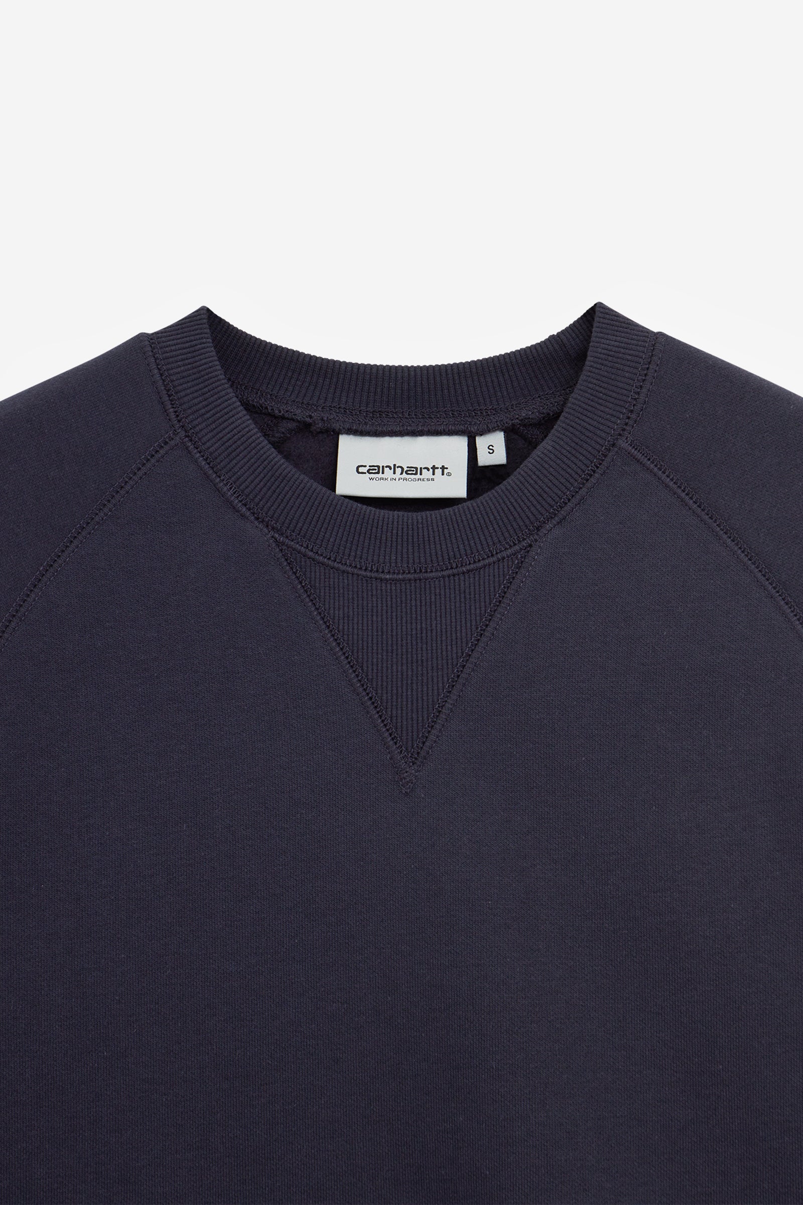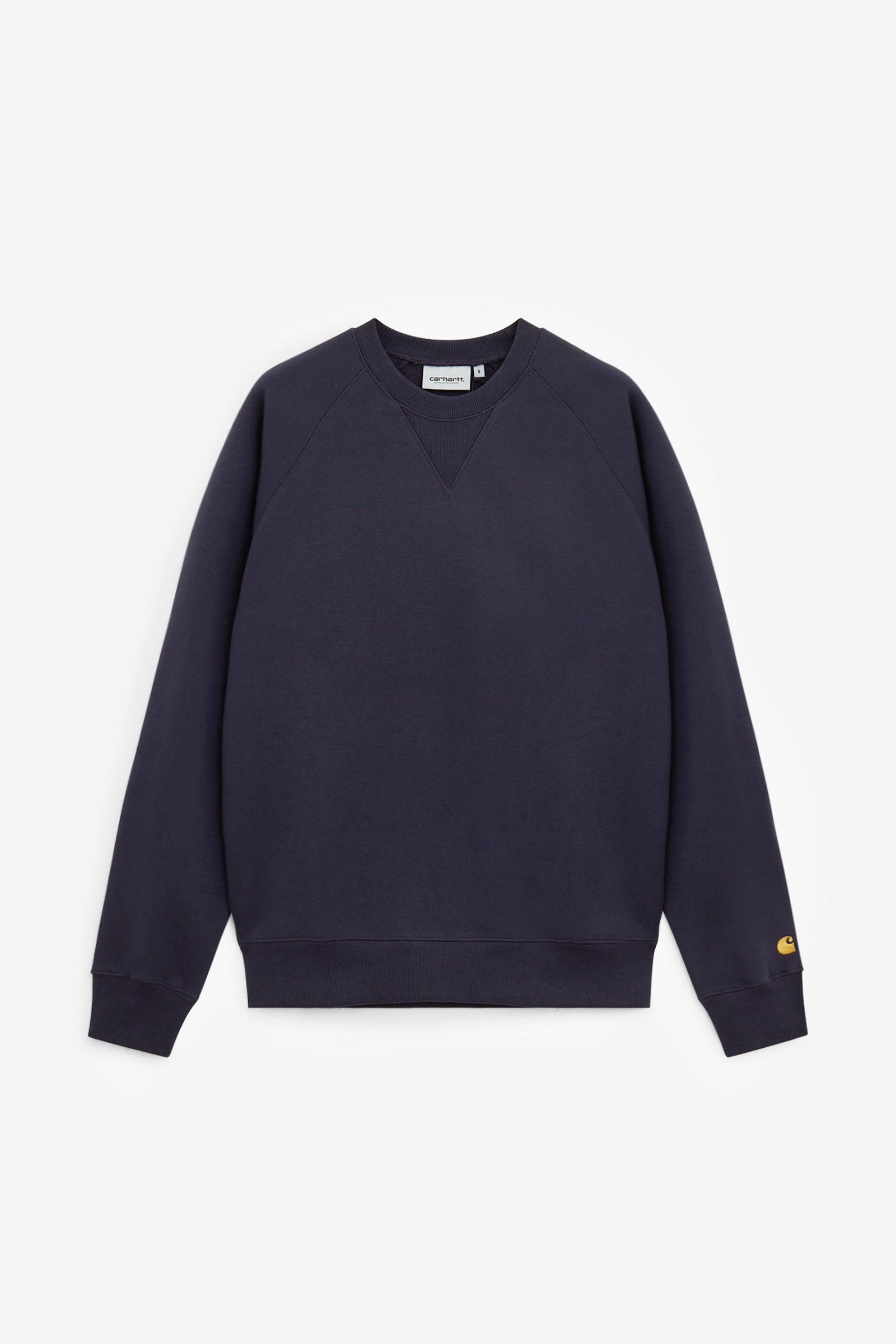 Felpa Girocollo CHASE in Cotone Dark Navy, maniche lunghe, orlo dritto, girocollo, logo sulla manica