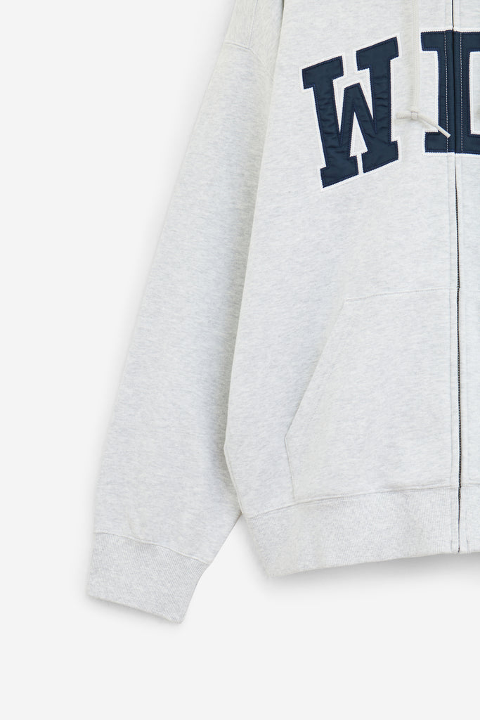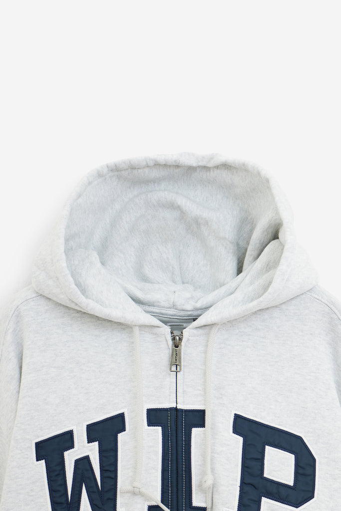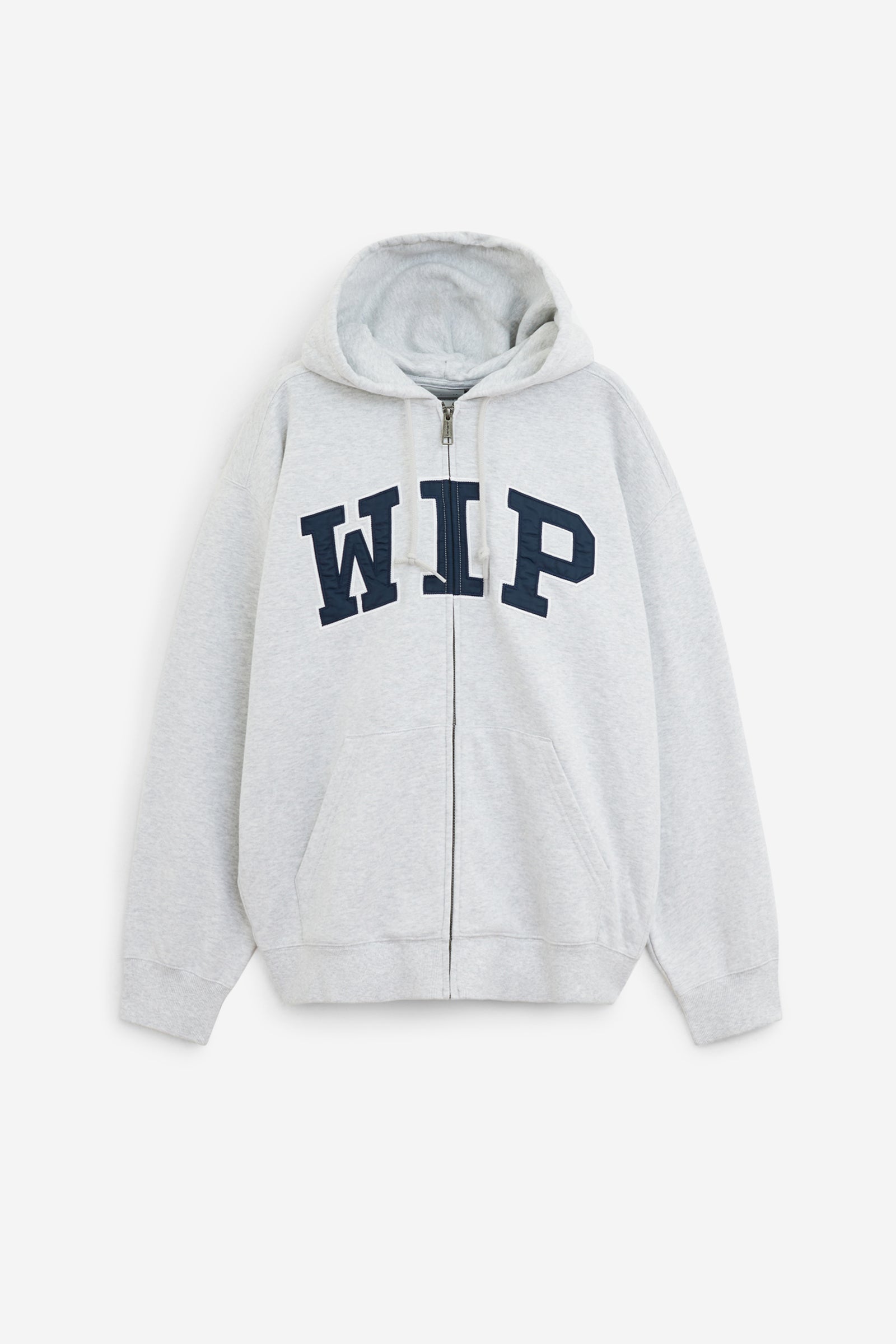 Felpa HOODED WIP SWEAT in Cotone Grigio, cappuccio regolabile, maniche lunghe, orlo dritto, logo sul retro, tasche frontali, chiusura con zip