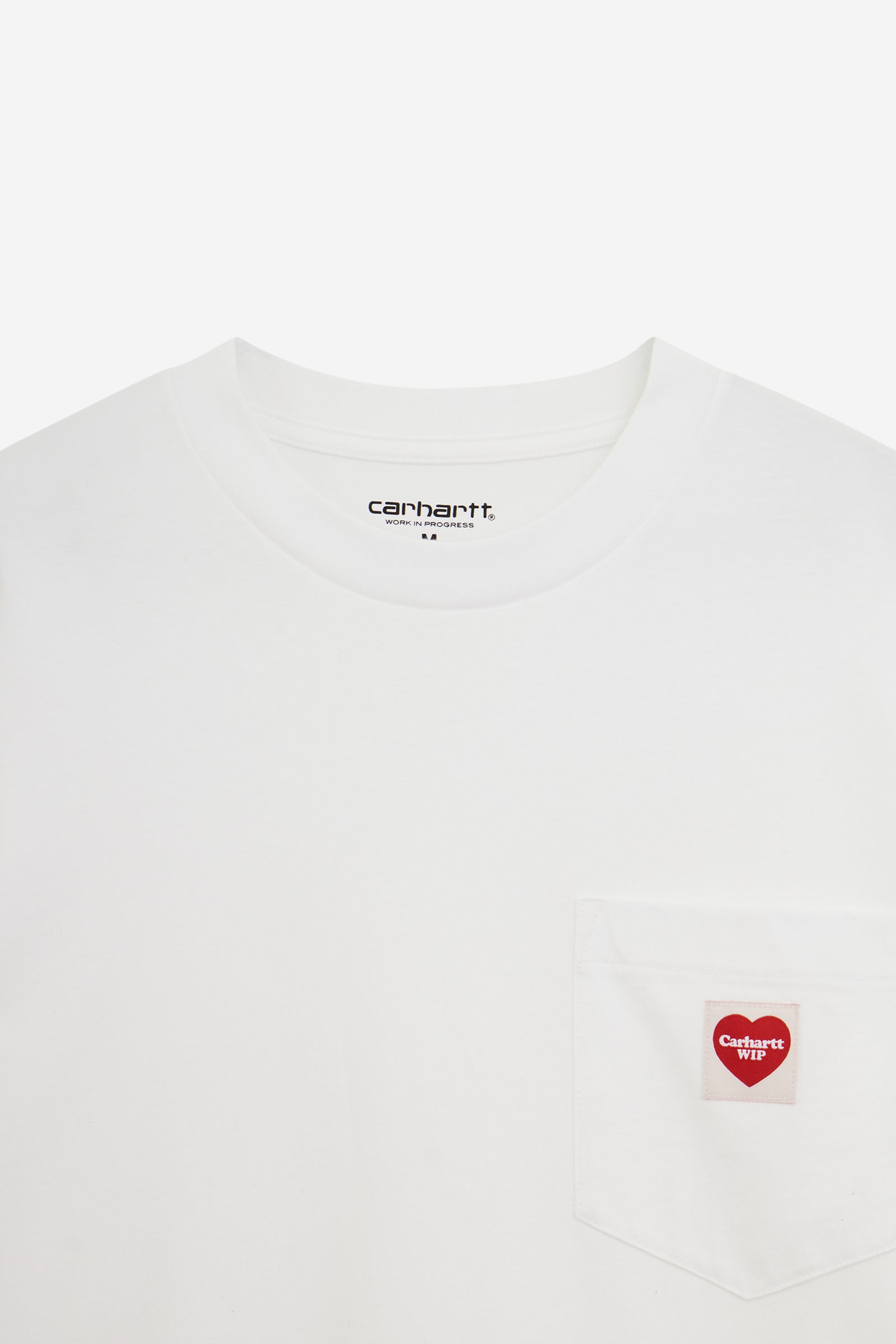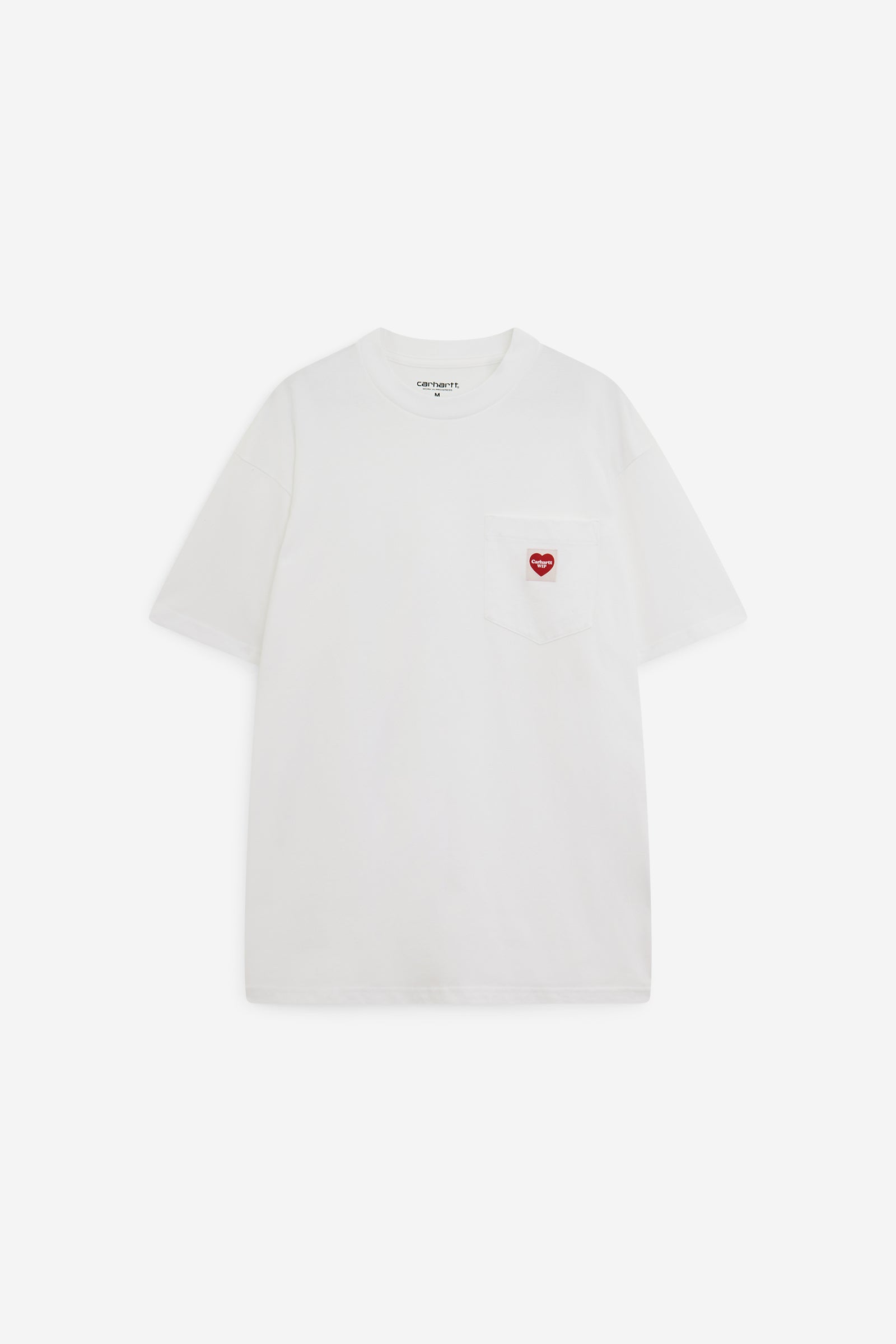 T-Shirt SS POCKET HEART in Cotone Bianco, orlo dritto, maniche corte, girocollo, logo sul davanti, taschino petto