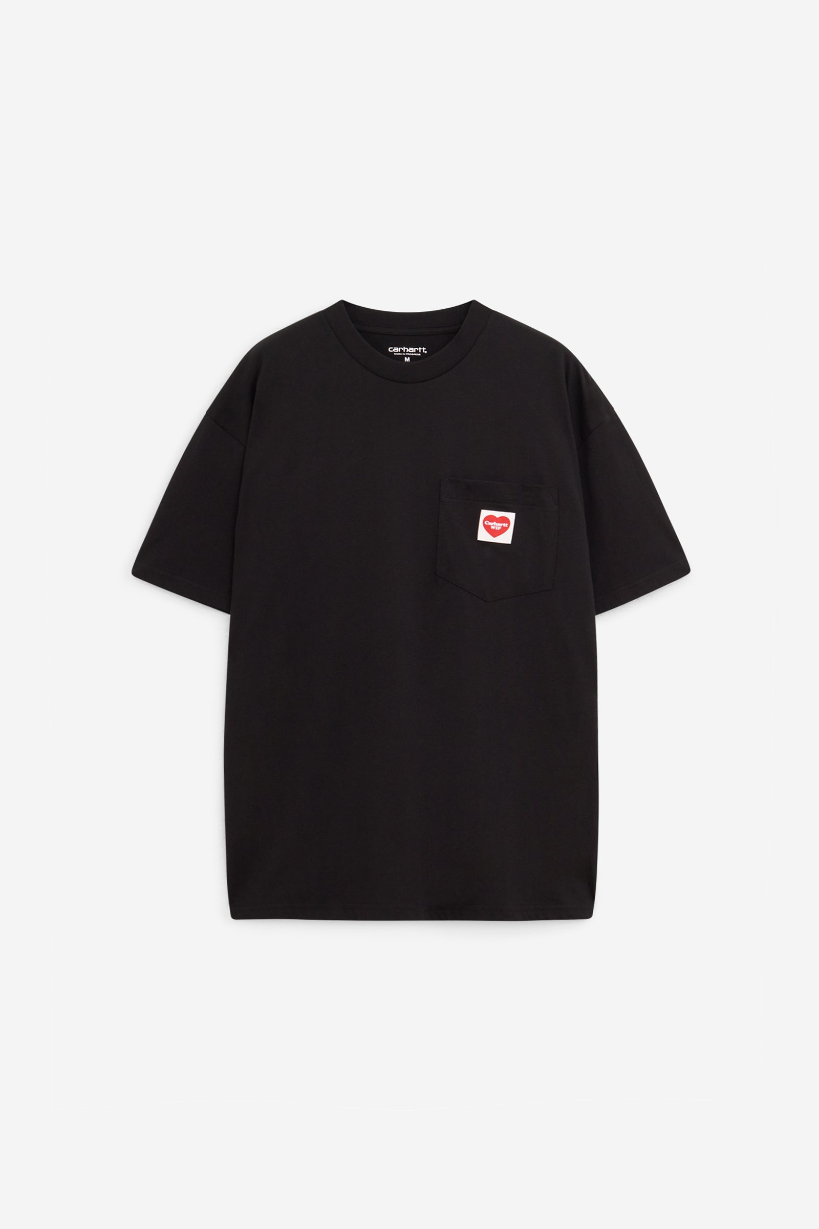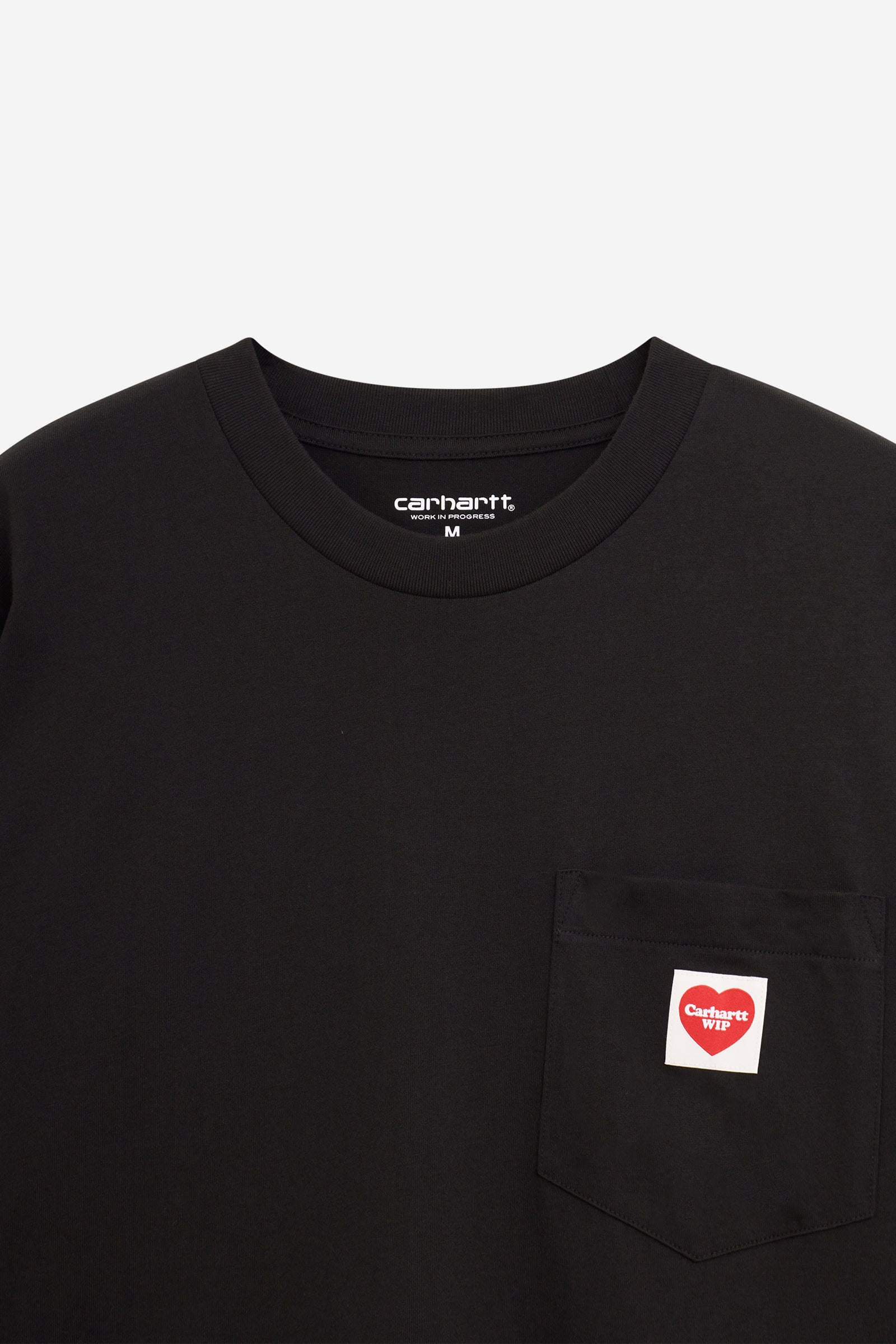 T-Shirt SS POCKET HEART in Cotone Nero, orlo dritto, maniche corte, girocollo, logo sul davanti, taschino petto