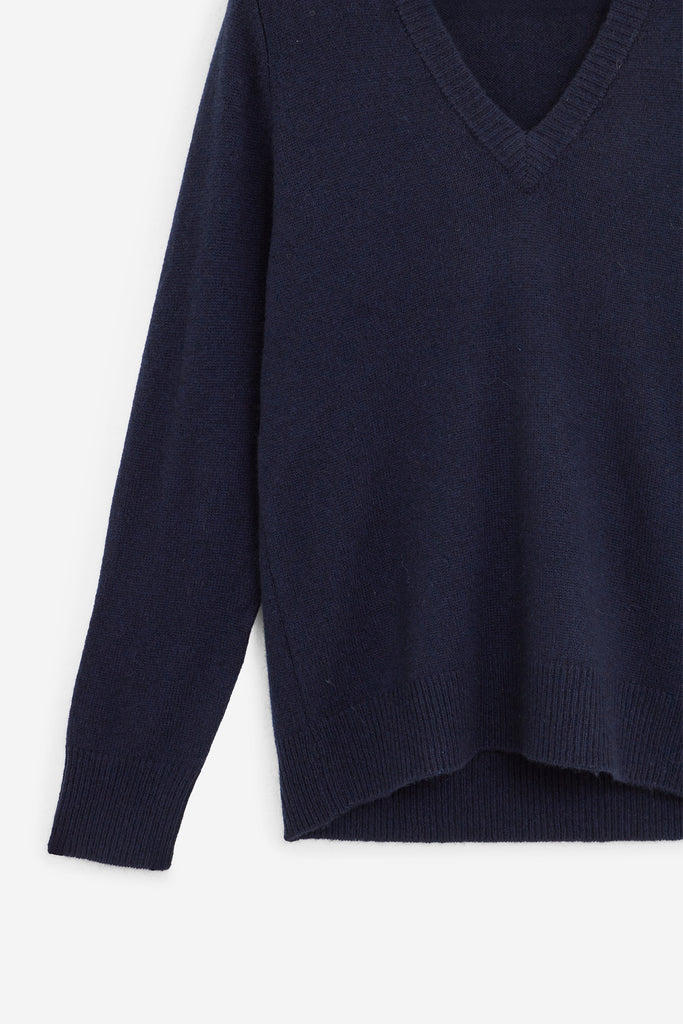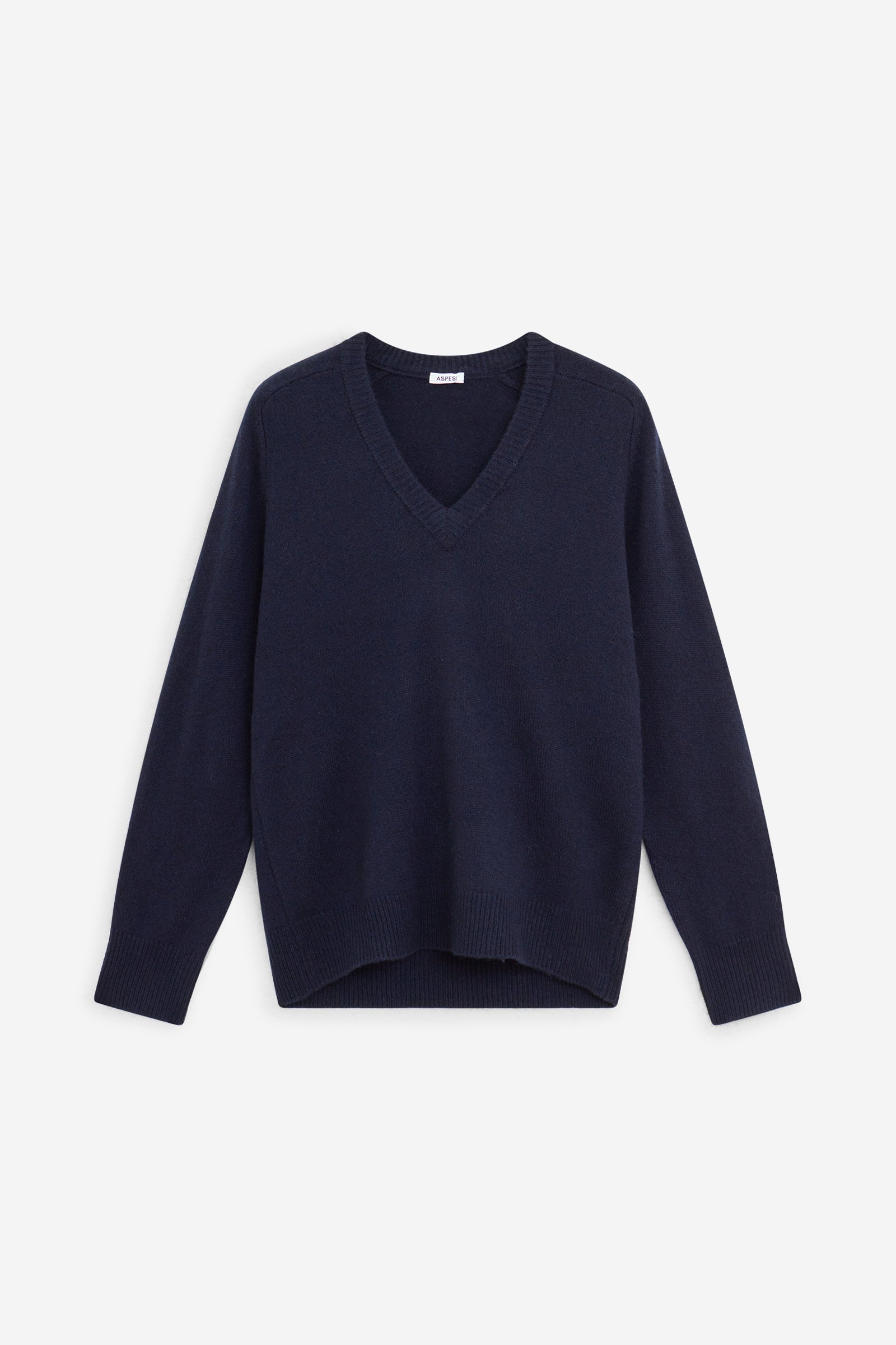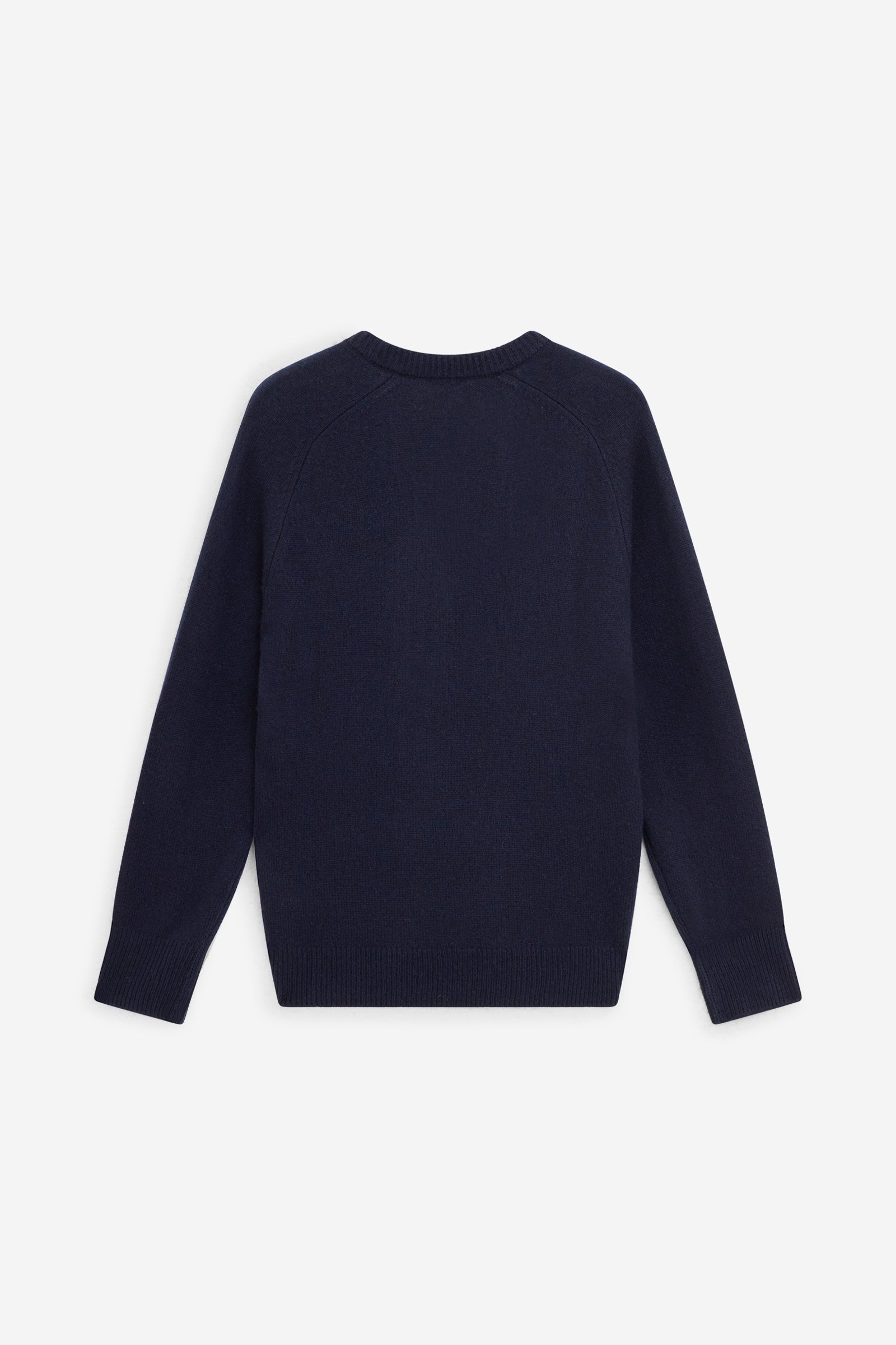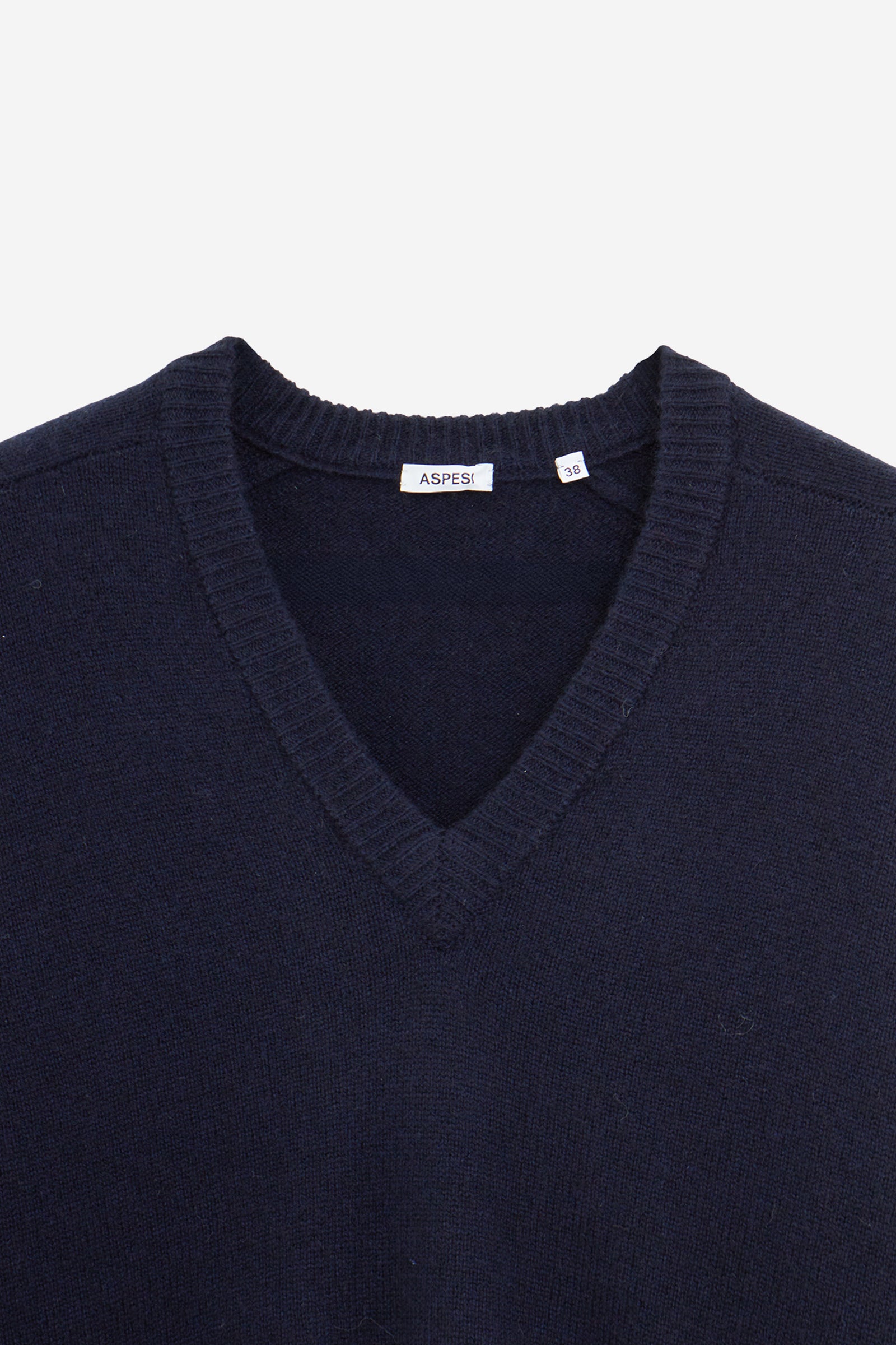 Maglia con scollo a V realizzata in un pregiato filato di misto lana, yak e cashmere. Il capo presenta una lavorazione a costine su scollo, polsini e fondo ed è caratterizzato da maniche lunghe raglan. Vestibilita regolare