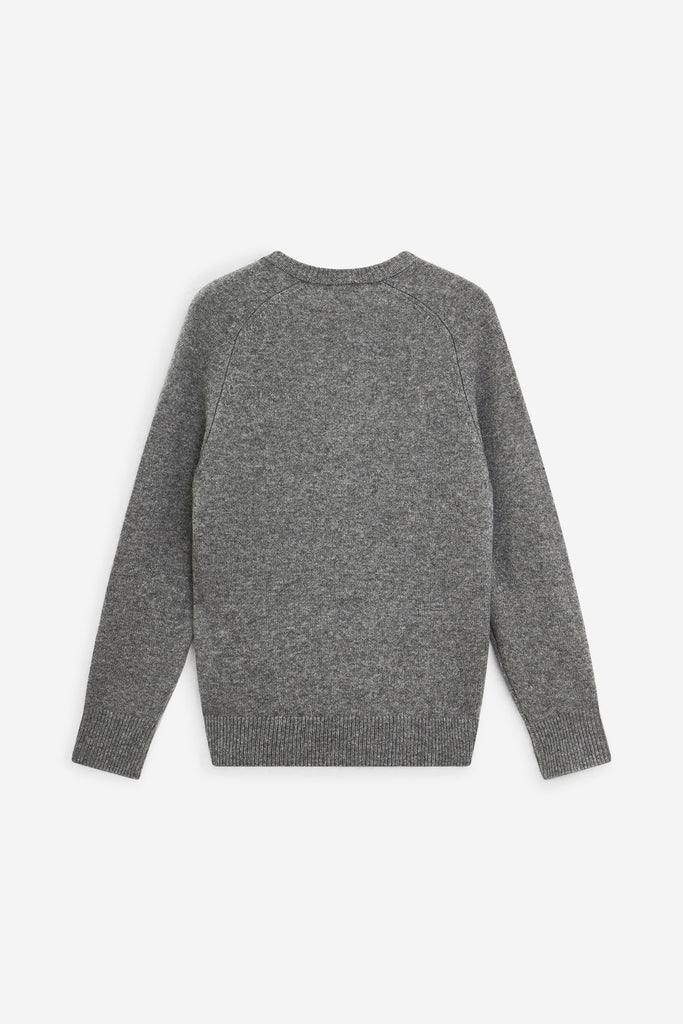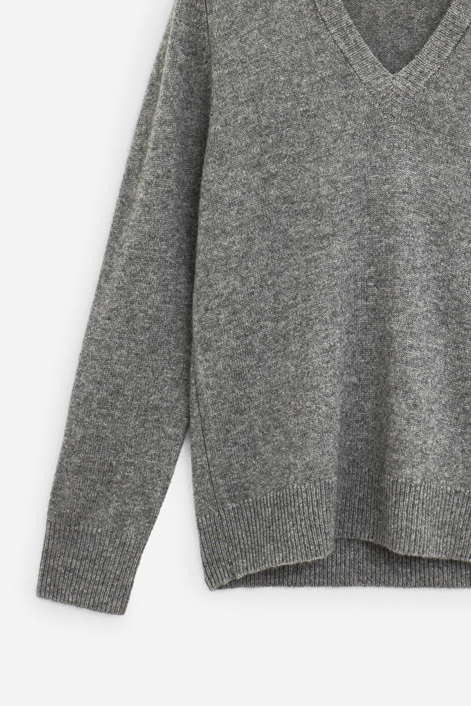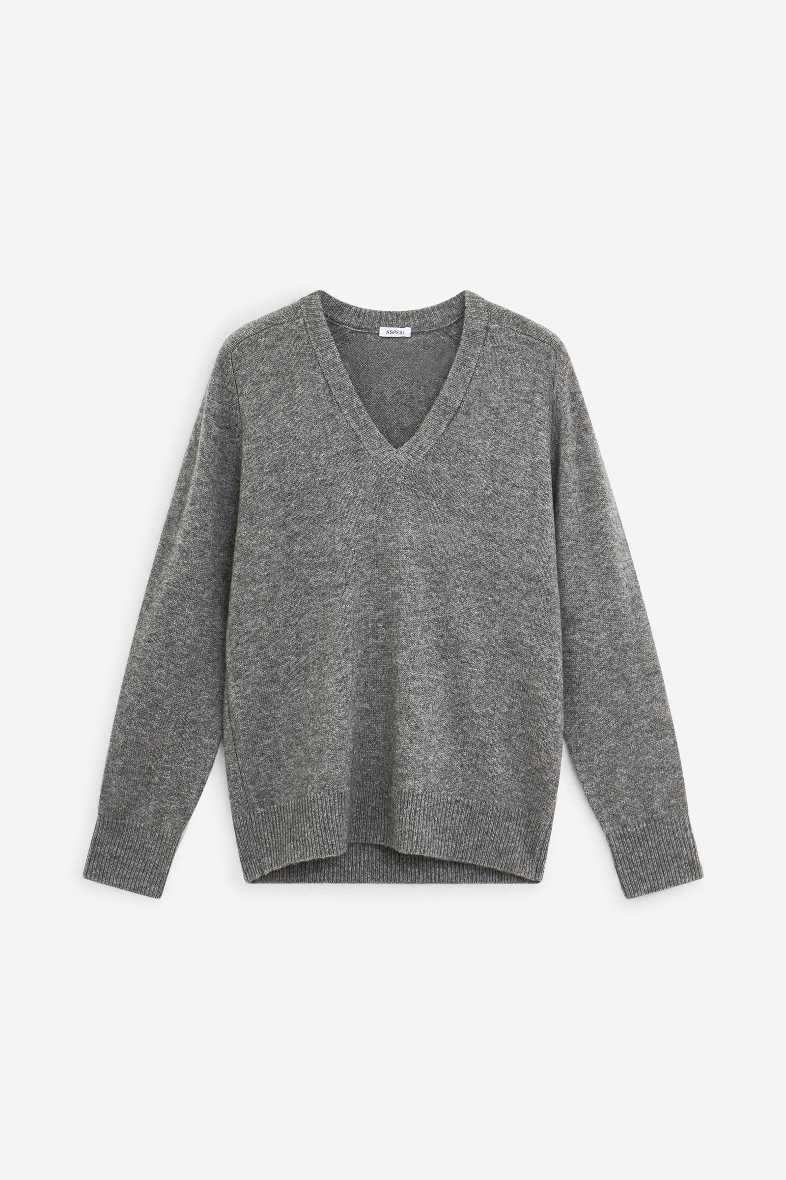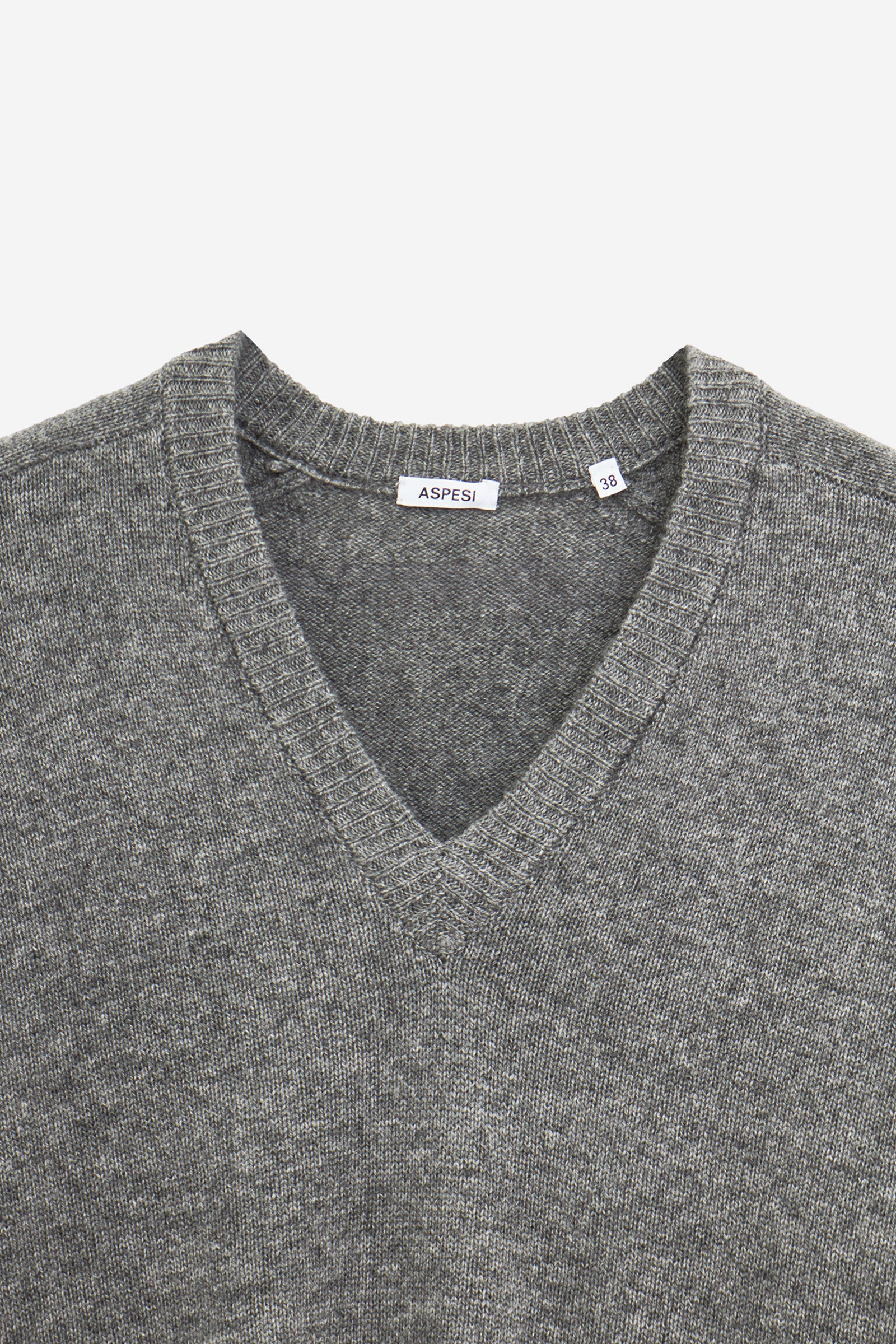 Maglia con scollo a V realizzata in un pregiato filato di misto lana, yak e cashmere. Il capo presenta una lavorazione a costine su scollo, polsini e fondo ed è caratterizzato da maniche lunghe raglan. Vestibilita regolare