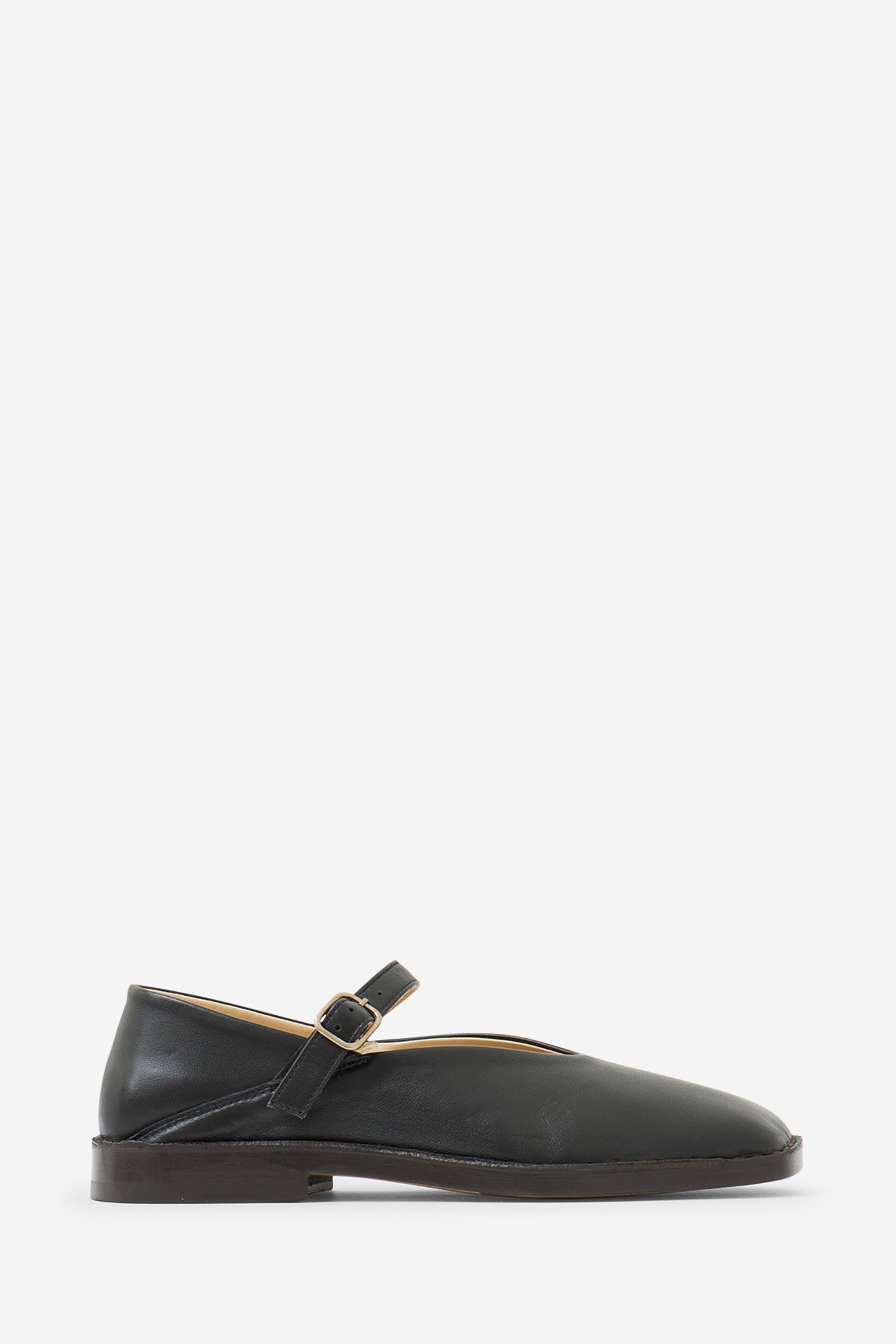 Ballerine BALLERINA in Pelle Nera, logo sulla suola, chiusura regolabile con fibbia