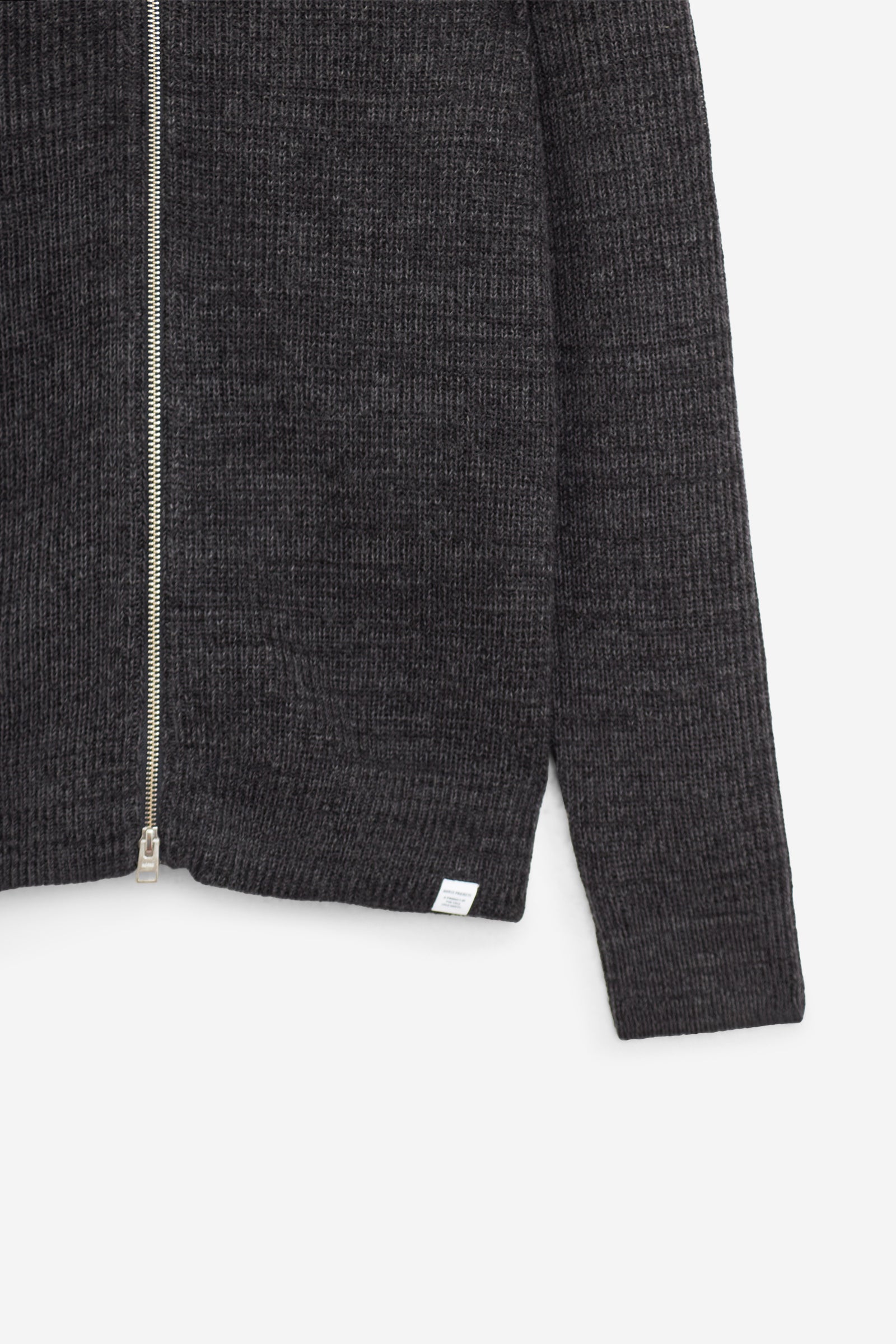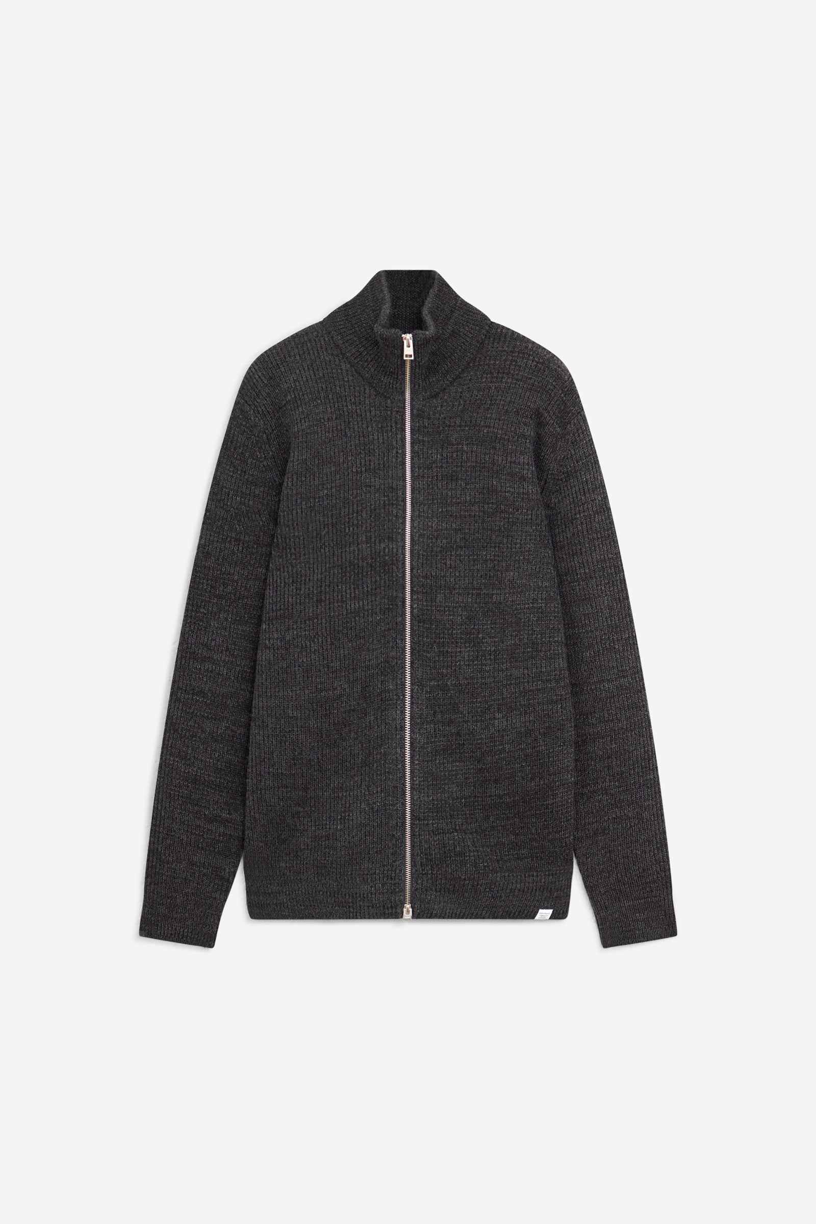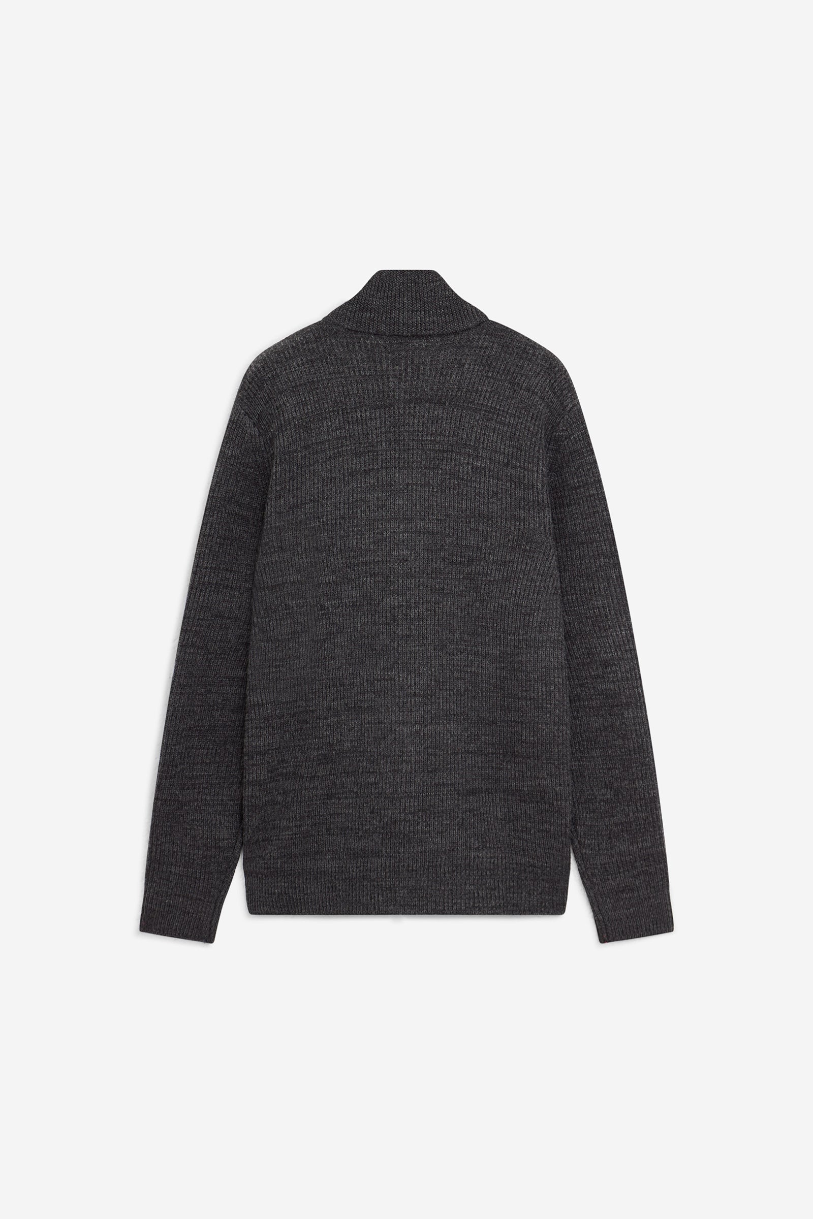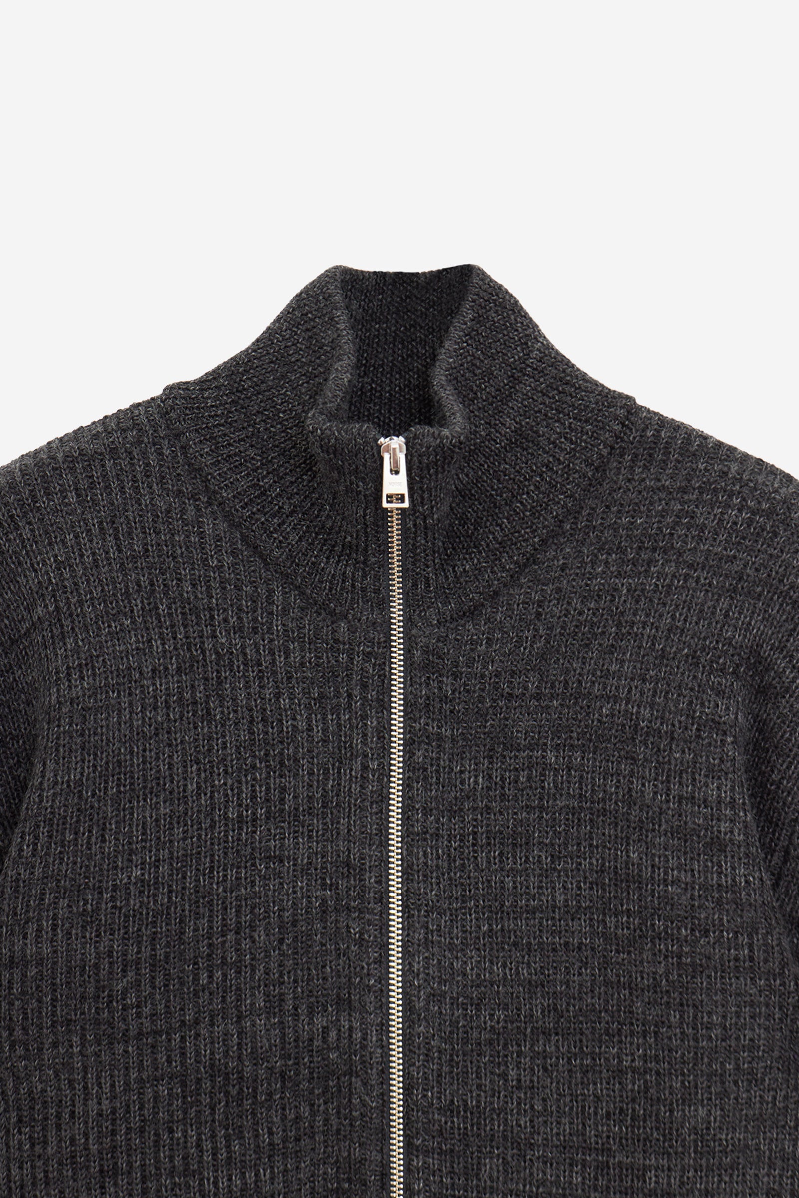Maglia realizzata in maglia con un mix di cotone pregiato e lana. Presenta maniche a giro, zip sul davanti e rifinito con collo, polsini e orlo a costine.